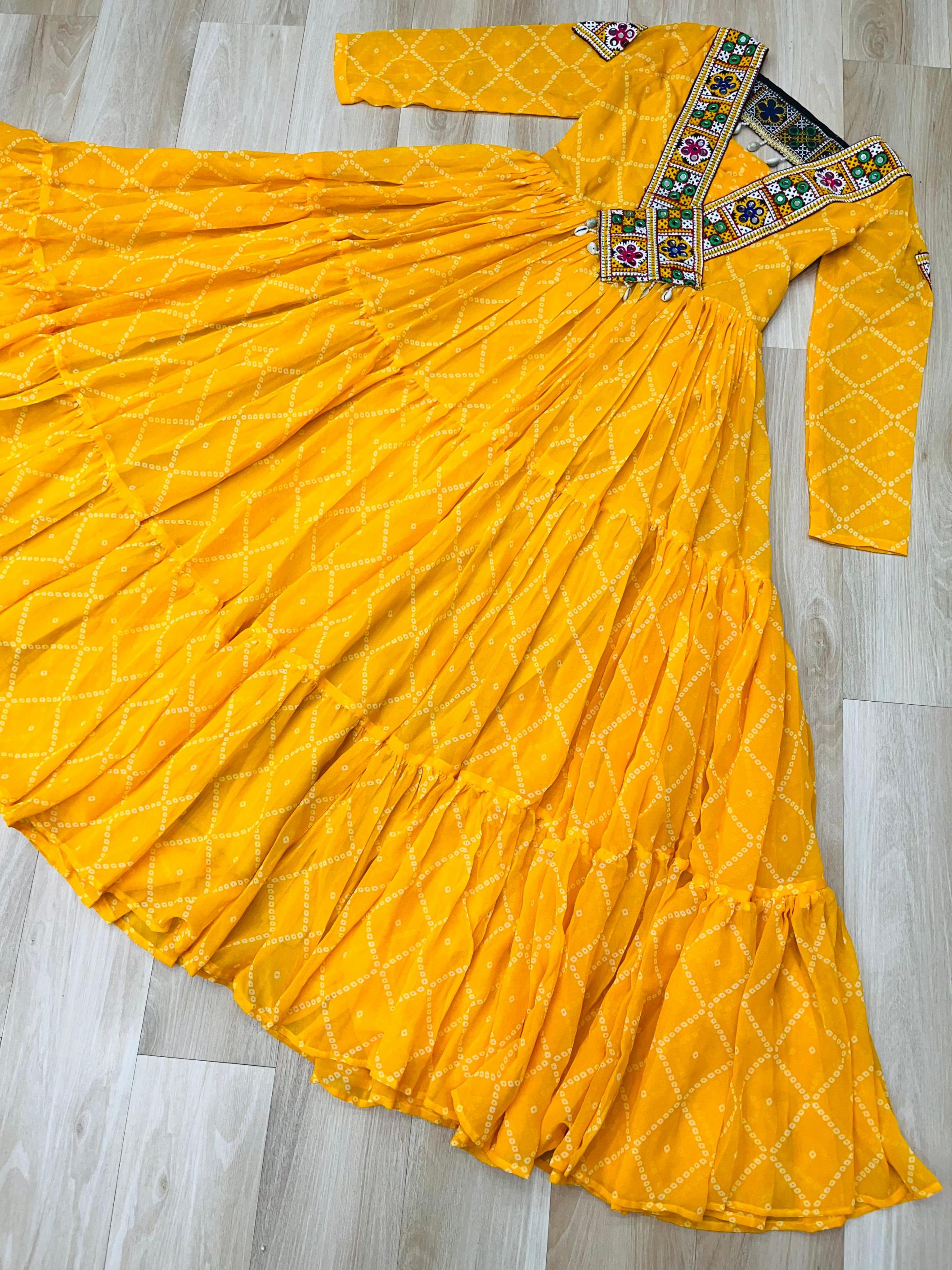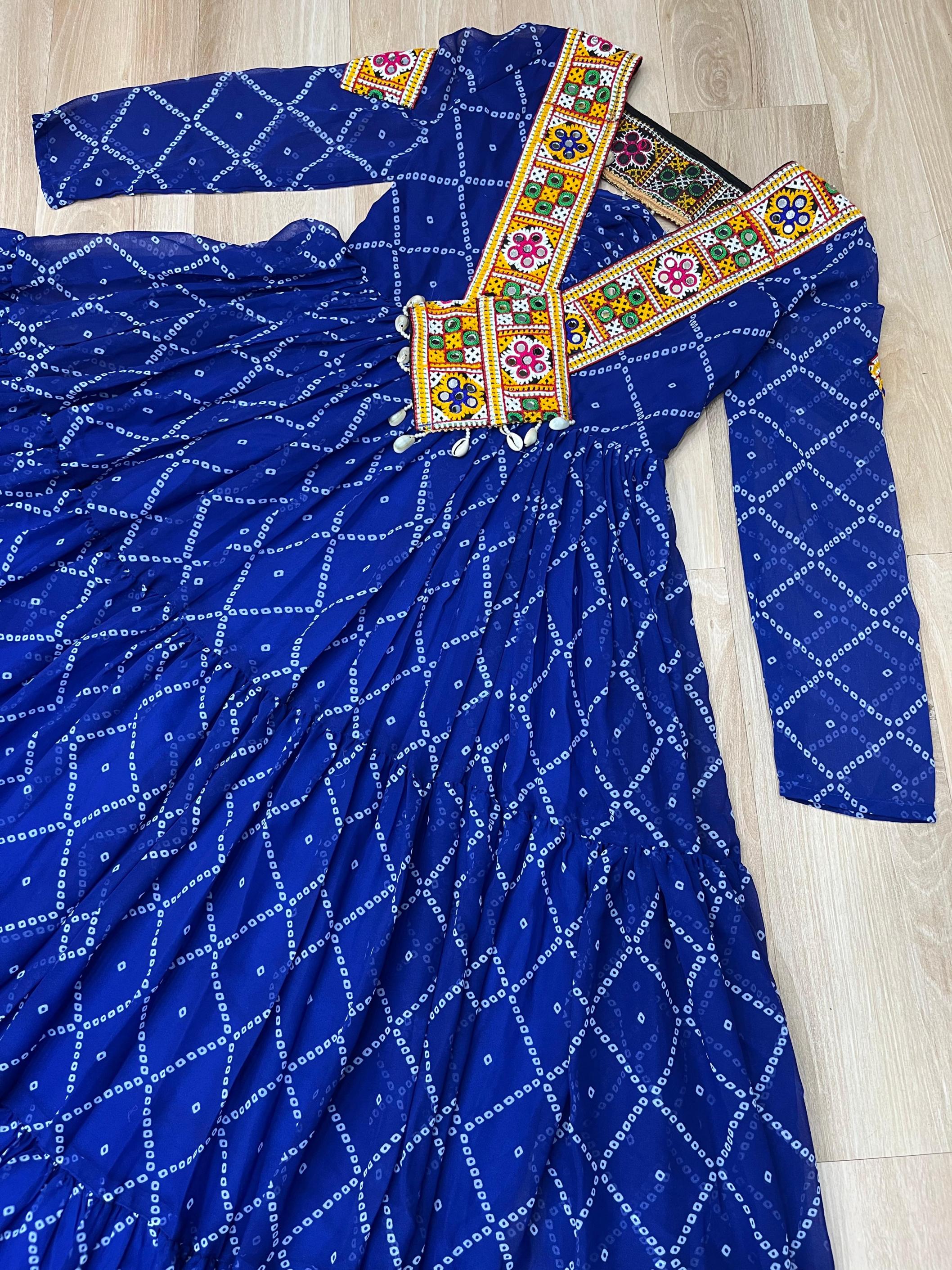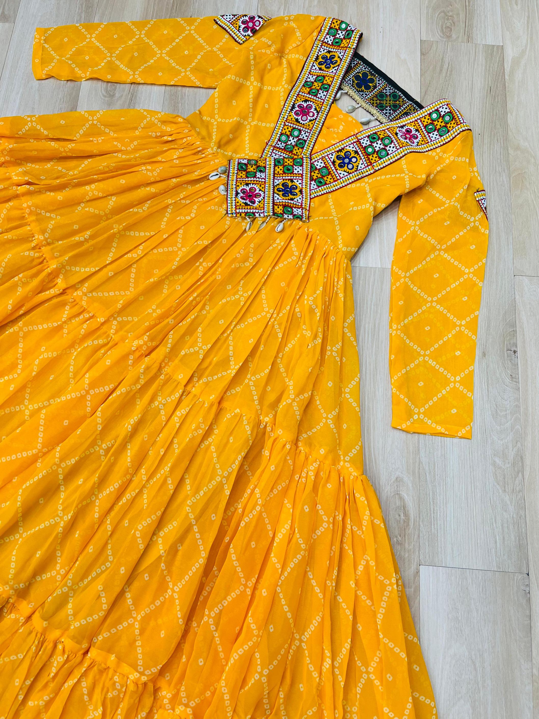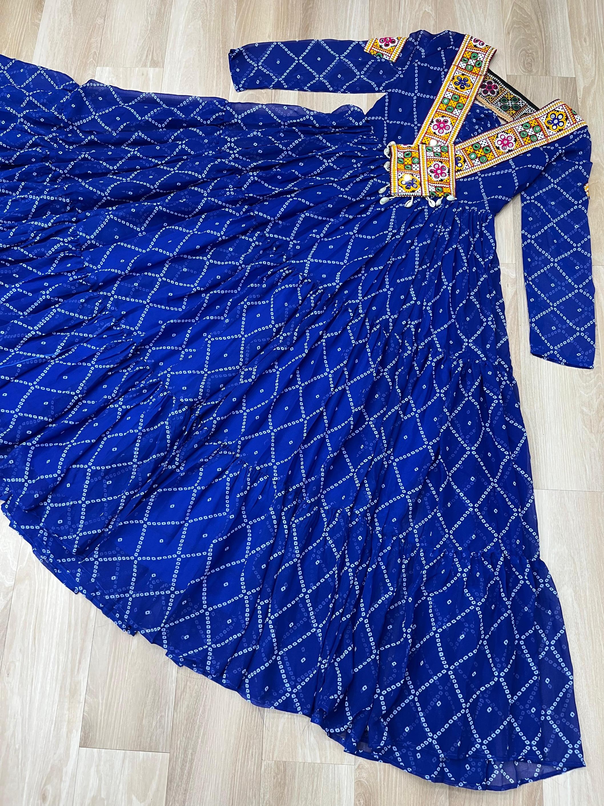 Looking for KA 1191 BANDHANI PRINT FULL STITCH UNIQUE NAVRATRI GOWNS Full Catalouge at Best Price? Buy Now KA 1191 BANDHANI PRINT FULL STITCH UNIQUE NAVRATRI GOWNS at Wholesale Rate of Rs 3060 with Total 3 Pcs from authroized dealer and supplier of P R Clothing Brand. Cost of Each piece is just only Rs 1020 which is very low and affordable price to resale the product in your retail store. rrgandhi is Surat based Wholesale Supplier & Dealer of P R Clothing Brand. Click on Brand name to Know more about Brand's products.