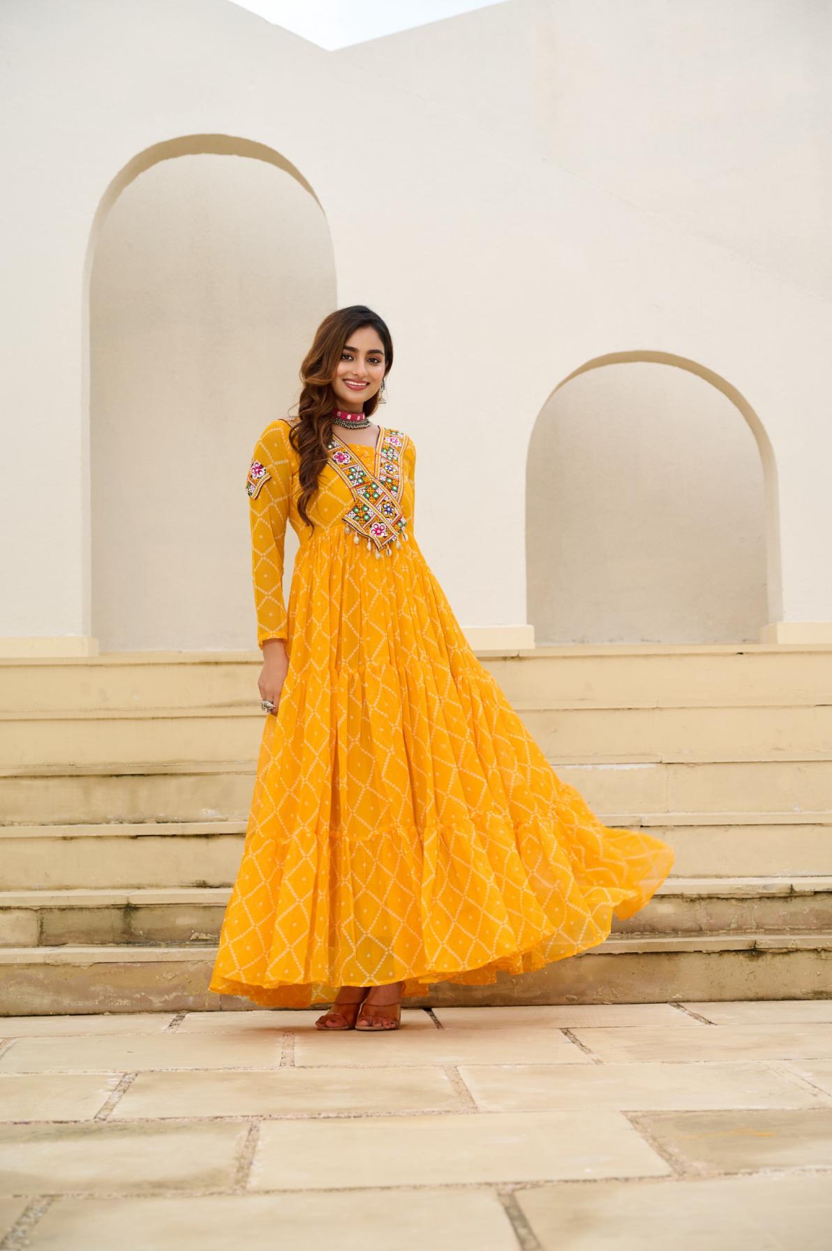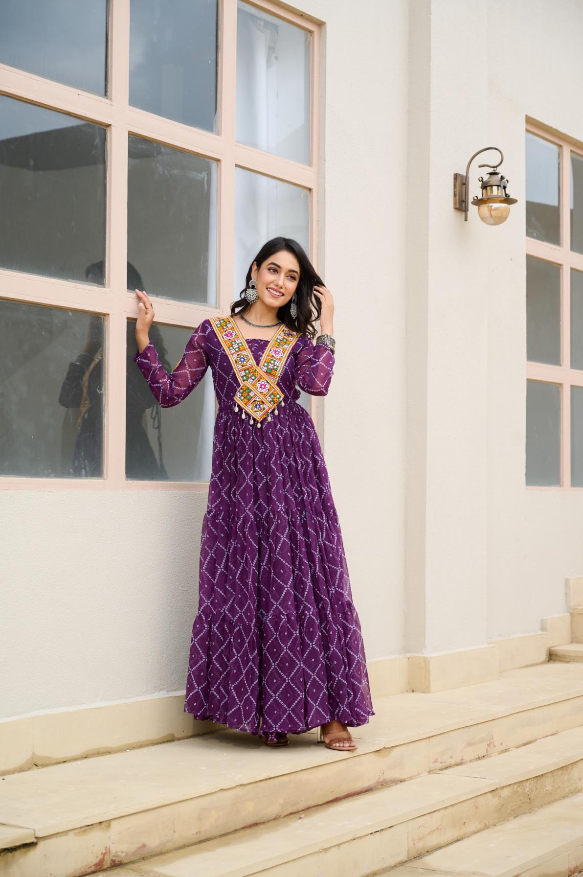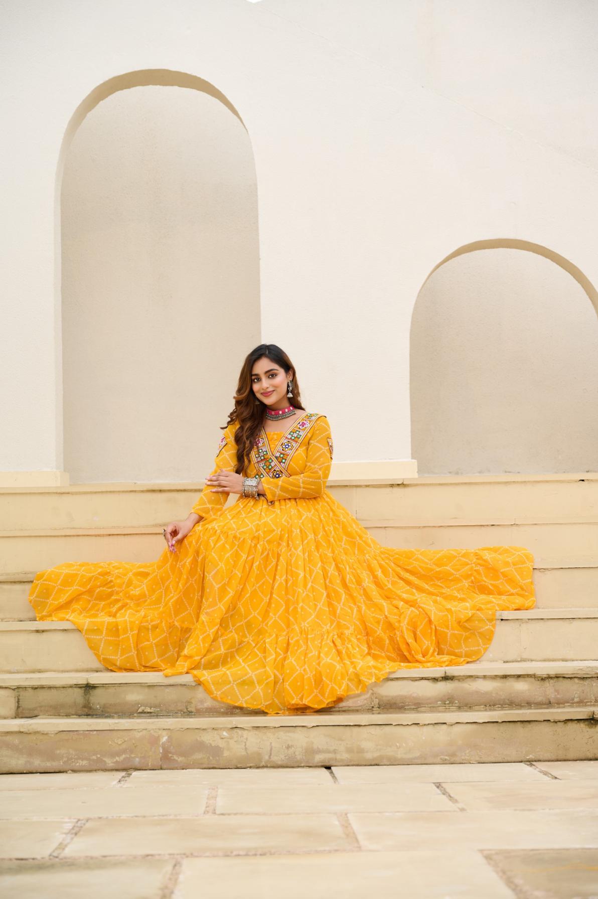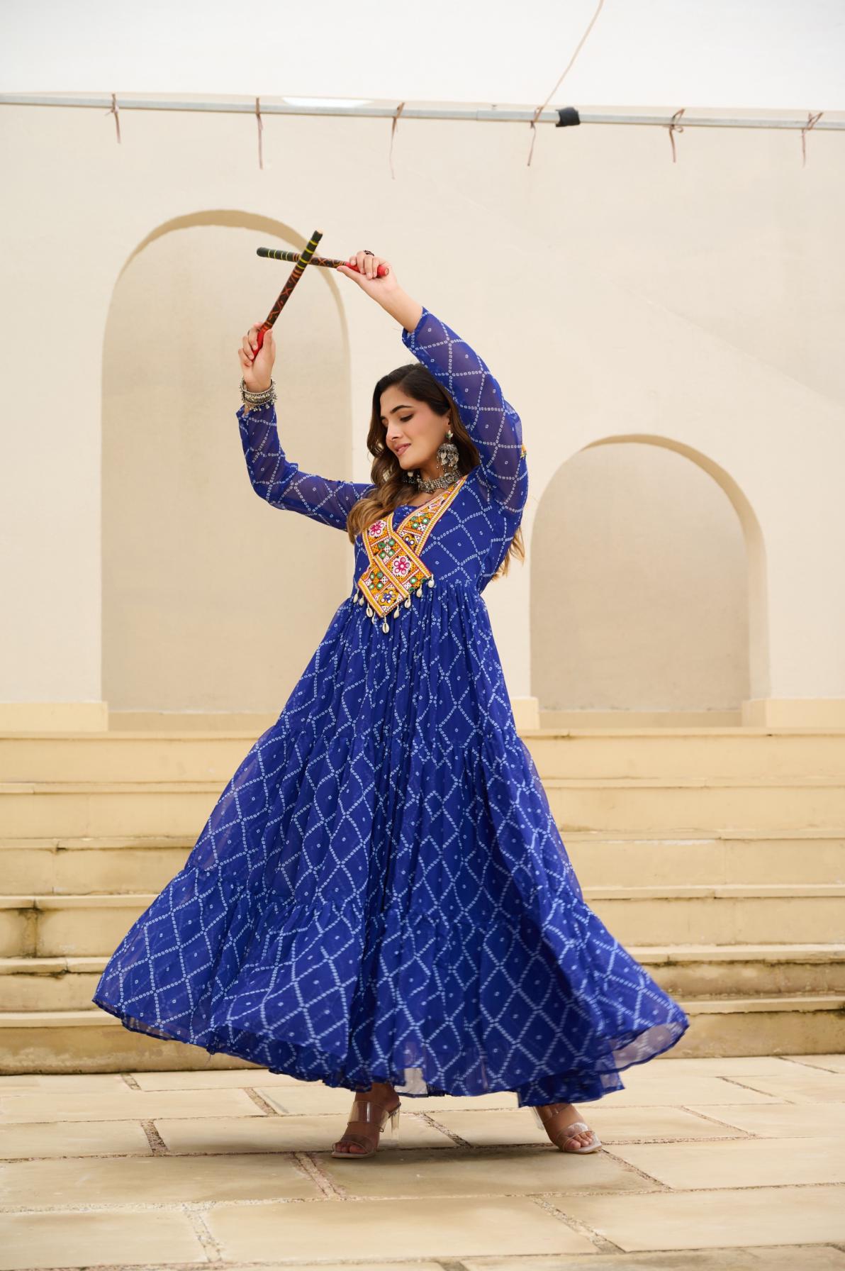 Looking for KA 1191 BANDHANI PRINT FULL STITCH UNIQUE NAVRATRI GOWNS Full Catalouge at Best Price? Buy Now KA 1191 BANDHANI PRINT FULL STITCH UNIQUE NAVRATRI GOWNS at Wholesale Rate of Rs 3060 with Total 3 Pcs from authroized dealer and supplier of P R Clothing Brand. Cost of Each piece is just only Rs 1020 which is very low and affordable price to resale the product in your retail store. rrgandhi is Surat based Wholesale Supplier & Dealer of P R Clothing Brand. Click on Brand name to Know more about Brand's products.