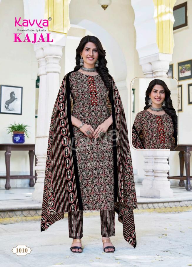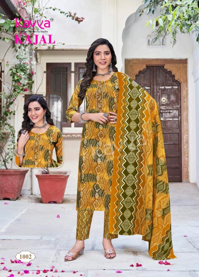 Looking for KAJAL VOL 1 BY KAVYA COTTON FULLY STITCH PRETTY 3PCS DRESS Full Catalouge at Best Price? Buy Now KAJAL VOL 1 BY KAVYA COTTON FULLY STITCH PRETTY 3PCS DRESS at Wholesale Rate of Rs 5400 with Total 10 Pcs from authroized dealer and supplier of Kavya by Kanika Brand. Cost of Each piece is just only Rs 540 which is very low and affordable price to resale the product in your retail store. rrgandhi is Surat based Wholesale Supplier & Dealer of Kavya by Kanika Brand. Click on Brand name to Know more about Brand's products.