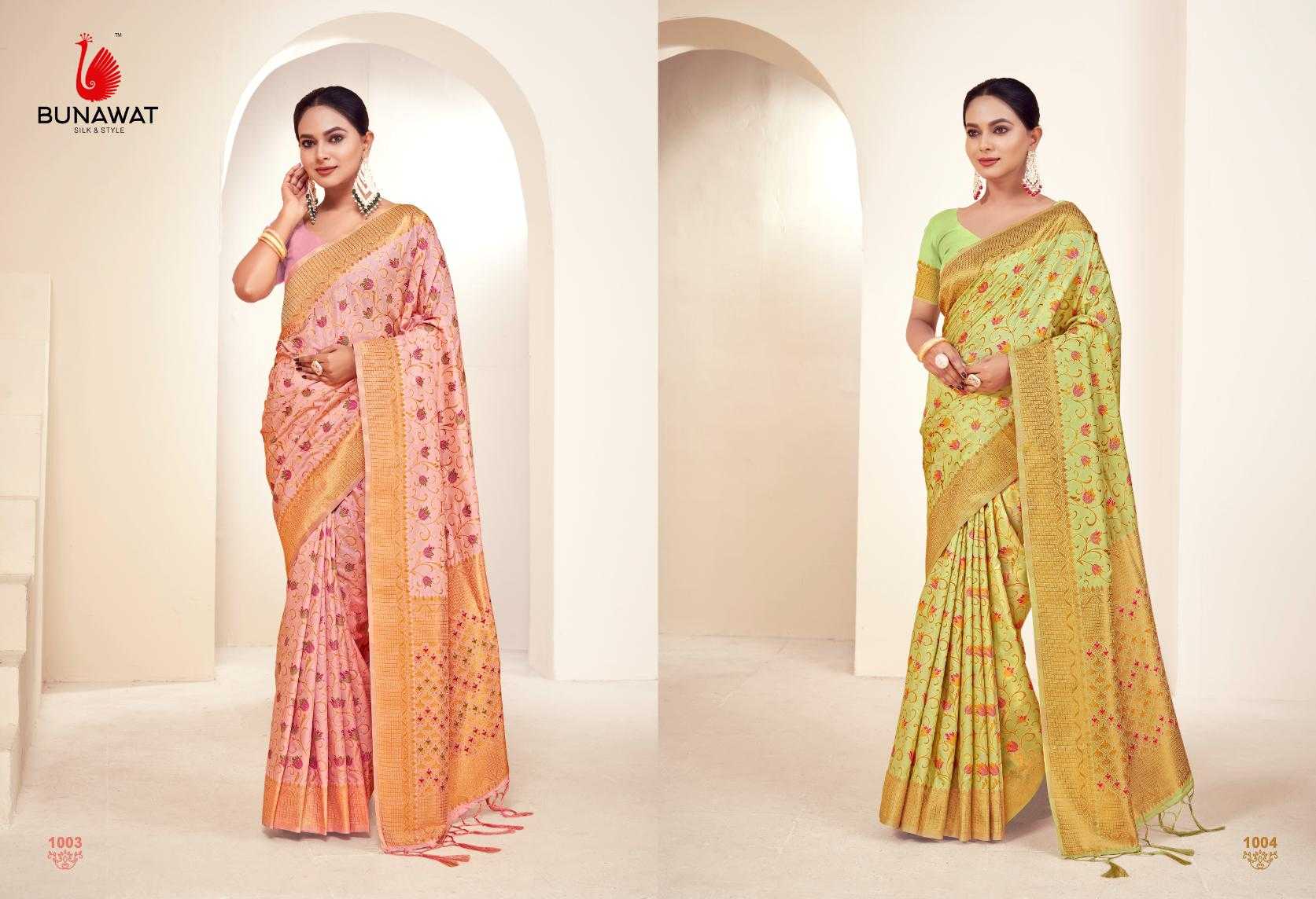 Looking for KALAKRITI BY BUNAWAT ZARI WEAVING BANARASI SILK SARIS WHOLSALER Full Catalouge at Best Price? Buy Now KALAKRITI BY BUNAWAT ZARI WEAVING BANARASI SILK SARIS WHOLSALER at Wholesale Rate of Rs 7794 with Total 6 Pcs from authroized dealer and supplier of Bunawat Brand. Cost of Each piece is just only Rs 1299 which is very low and affordable price to resale the product in your retail store. rrgandhi is Surat based Wholesale Supplier & Dealer of Bunawat Brand. Click on Brand name to Know more about Brand's products.