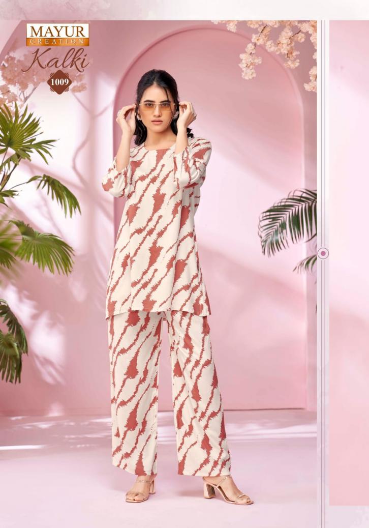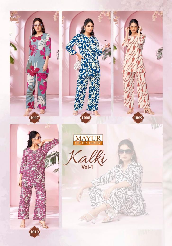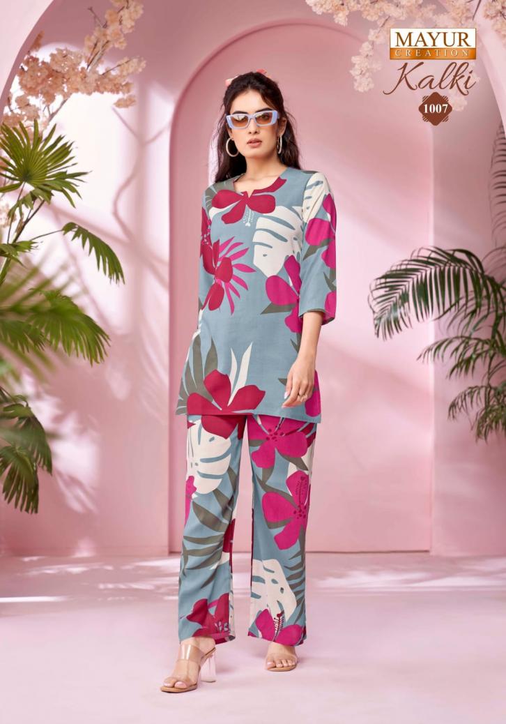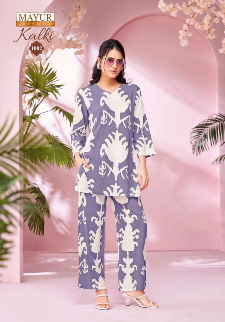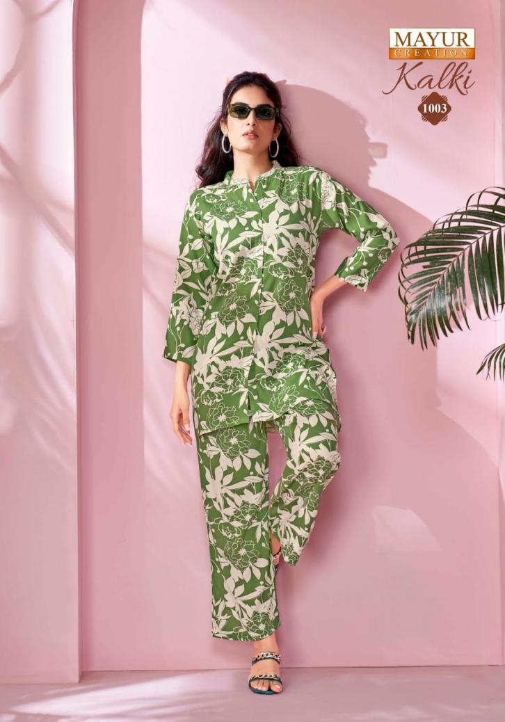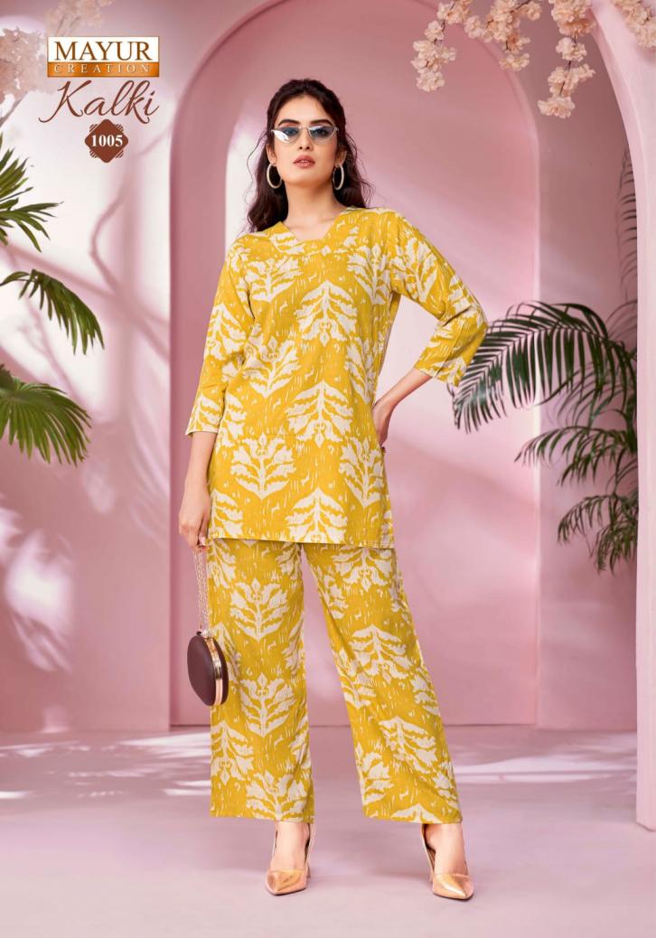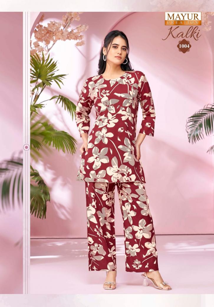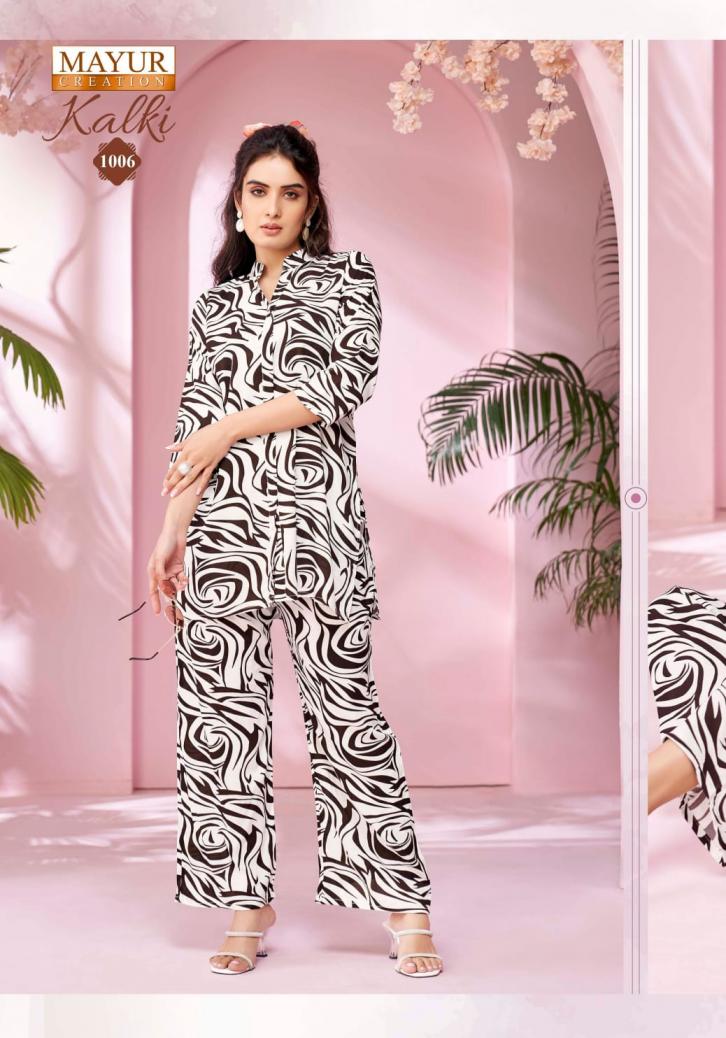 Looking for kalki vol 1 by mayur creation amazing rayon fully stitch co-ord sets Full Catalouge at Best Price? Buy Now kalki vol 1 by mayur creation amazing rayon fully stitch co-ord sets at Wholesale Rate of Rs 3990 with Total 10 Pcs from authroized dealer and supplier of Mayur Creation Brand. Cost of Each piece is just only Rs 399 which is very low and affordable price to resale the product in your retail store. rrgandhi is Surat based Wholesale Supplier & Dealer of Mayur Creation Brand. Click on Brand name to Know more about Brand's products.
