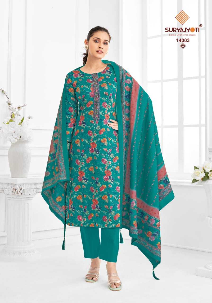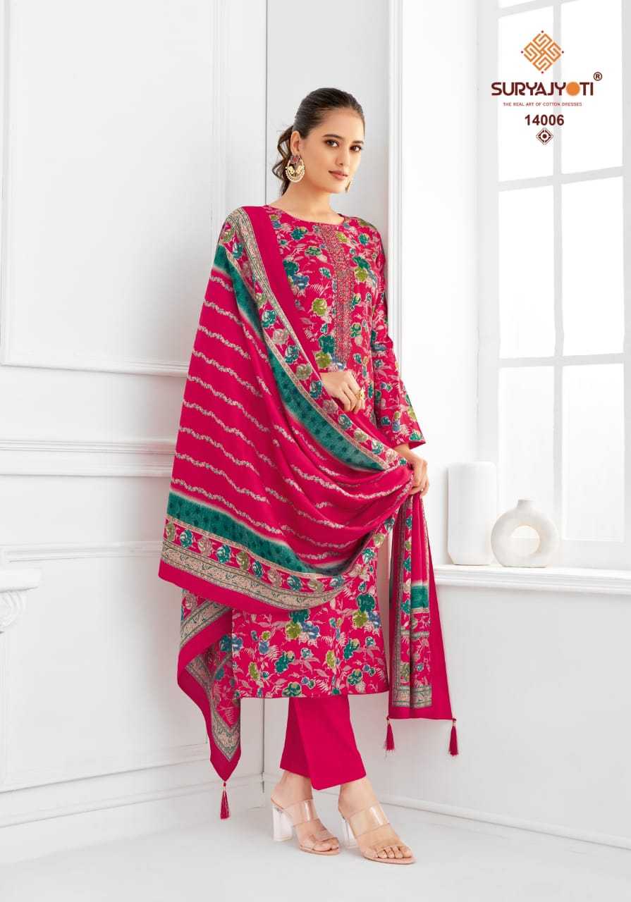 Looking for kalki vol 14 by suryajyoti jam satin unique printed salwar suits Full Catalouge at Best Price? Buy Now kalki vol 14 by suryajyoti jam satin unique printed salwar suits at Wholesale Rate of Rs 6120 with Total 8 Pcs from authroized dealer and supplier of Brand. Cost of Each piece is just only Rs 765 which is very low and affordable price to resale the product in your retail store. rrgandhi is Surat based Wholesale Supplier & Dealer of Brand. Click on Brand name to Know more about Brand's products.