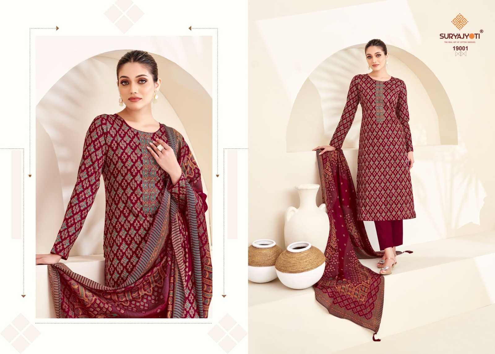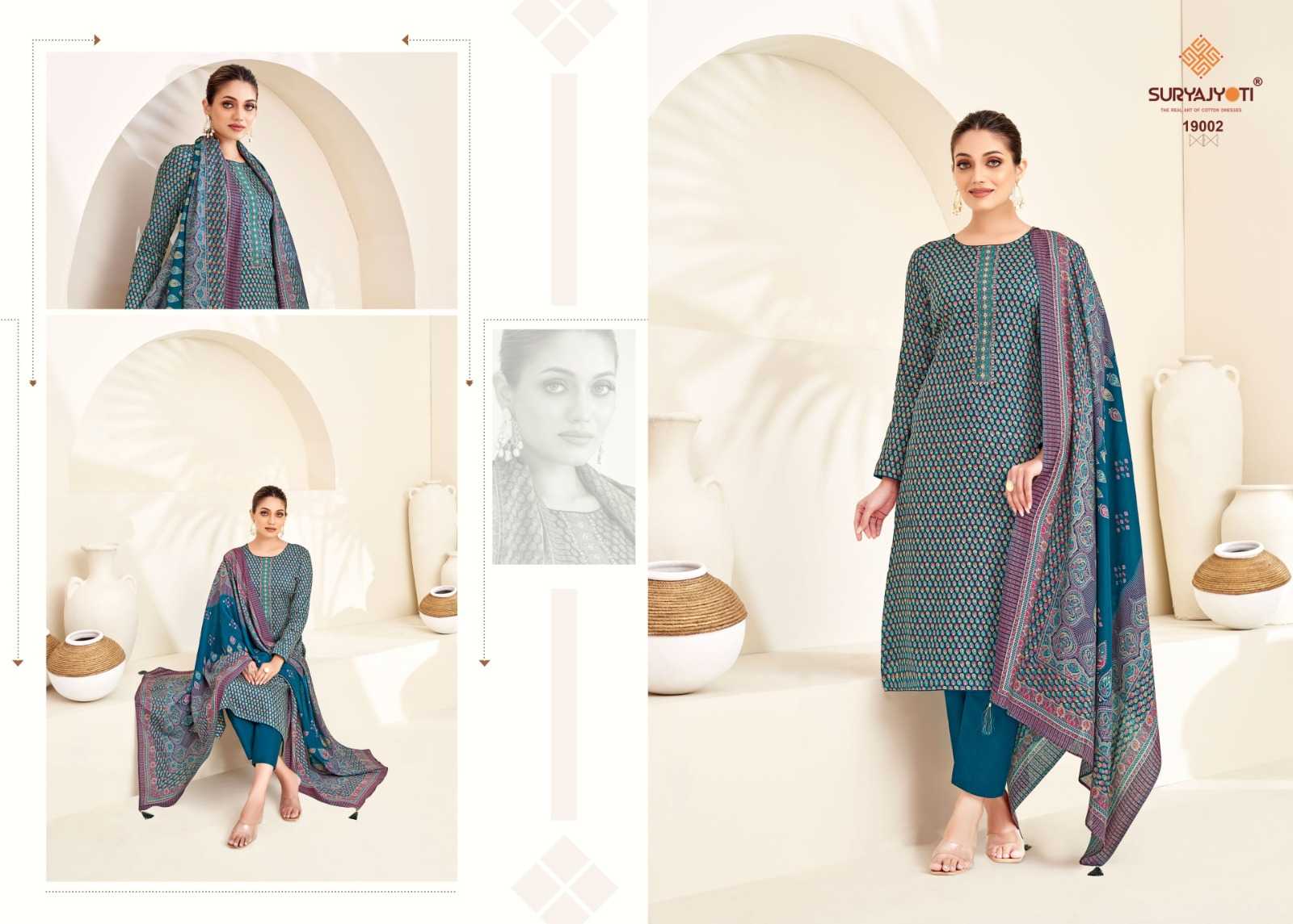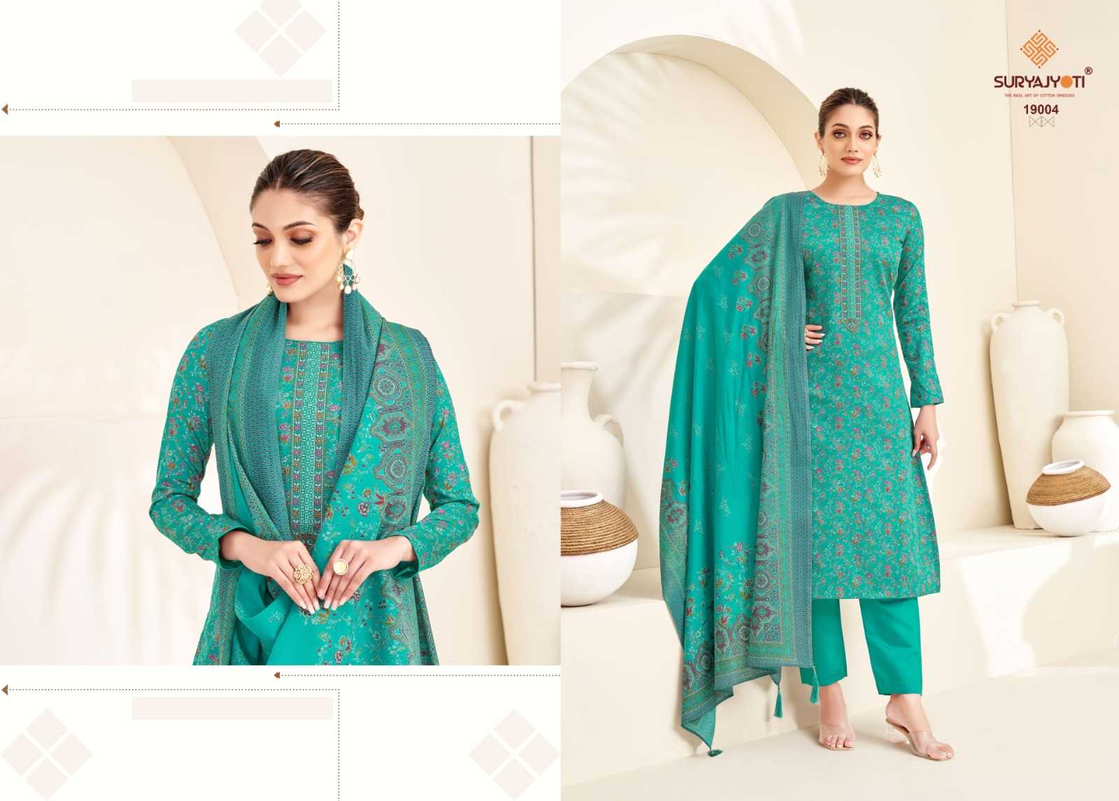Looking for kalki vol 19 by suryajyoti jam satin unique print emboidery suits Full Catalouge at Best Price? Buy Now kalki vol 19 by suryajyoti jam satin unique print emboidery suits at Wholesale Rate of Rs 6120 with Total 8 Pcs from authroized dealer and supplier of Suryajyoti Cotton Brand. Cost of Each piece is just only Rs 765 which is very low and affordable price to resale the product in your retail store. rrgandhi is Surat based Wholesale Supplier & Dealer of Suryajyoti Cotton Brand. Click on Brand name to Know more about Brand's products.