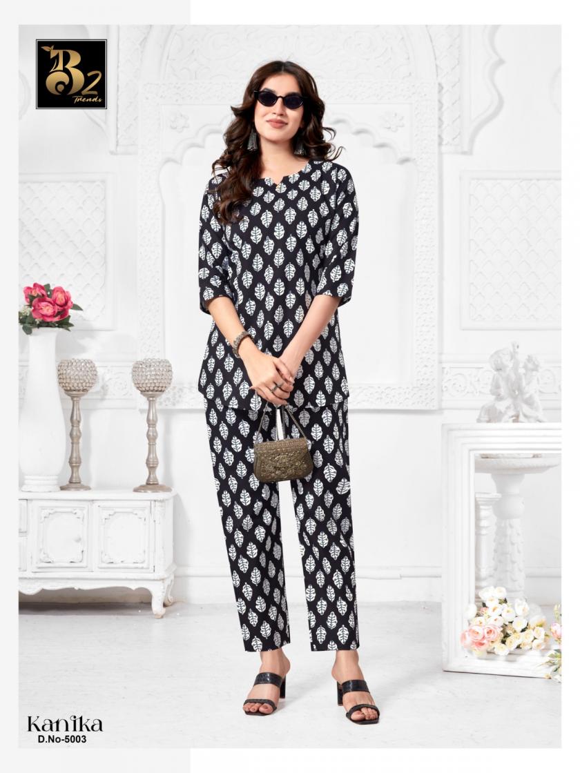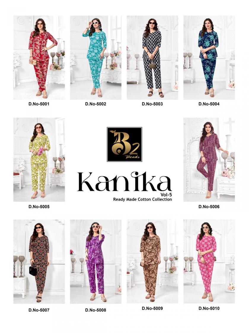 Looking for KANIKA VOL 5 BY B2 TRENDS READYMADE COTTON ELEGANCE CO-ORD SET Full Catalouge at Best Price? Buy Now KANIKA VOL 5 BY B2 TRENDS READYMADE COTTON ELEGANCE CO-ORD SET at Wholesale Rate of Rs 4150 with Total 10 Pcs from authroized dealer and supplier of B2 Trends Brand. Cost of Each piece is just only Rs 415 which is very low and affordable price to resale the product in your retail store. rrgandhi is Surat based Wholesale Supplier & Dealer of B2 Trends Brand. Click on Brand name to Know more about Brand's products.