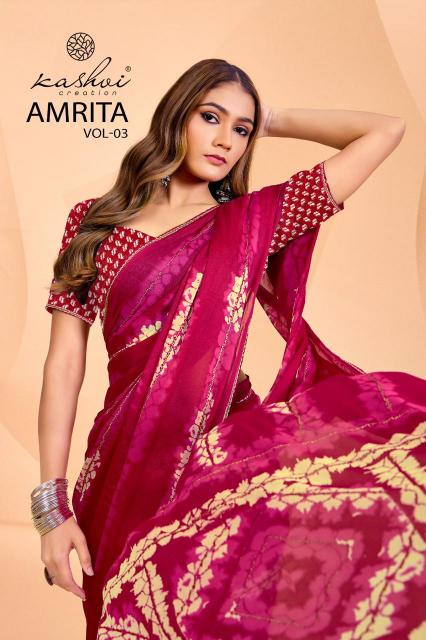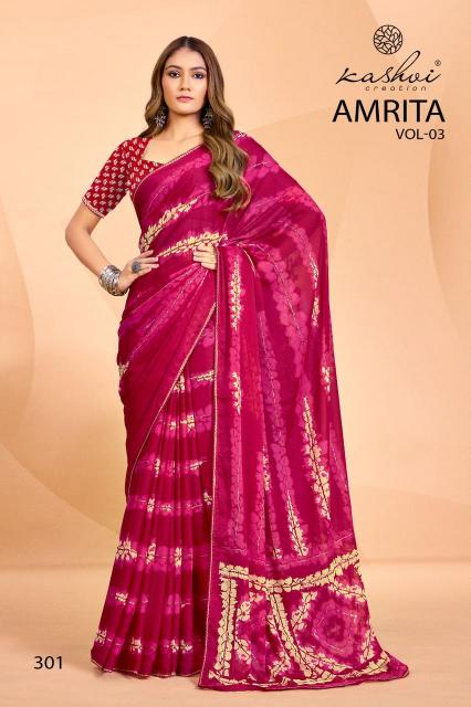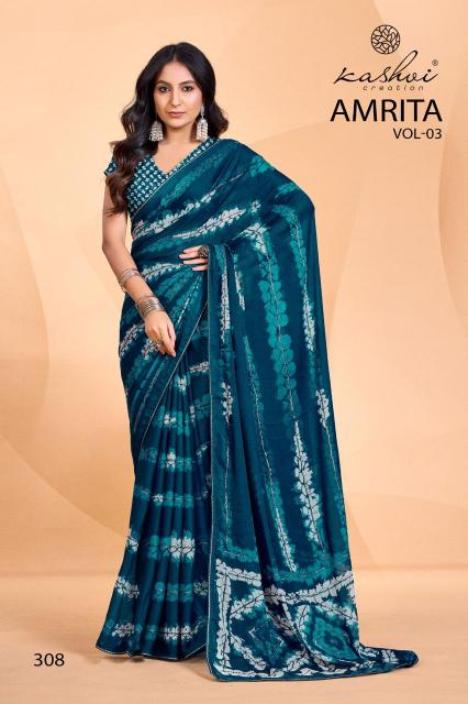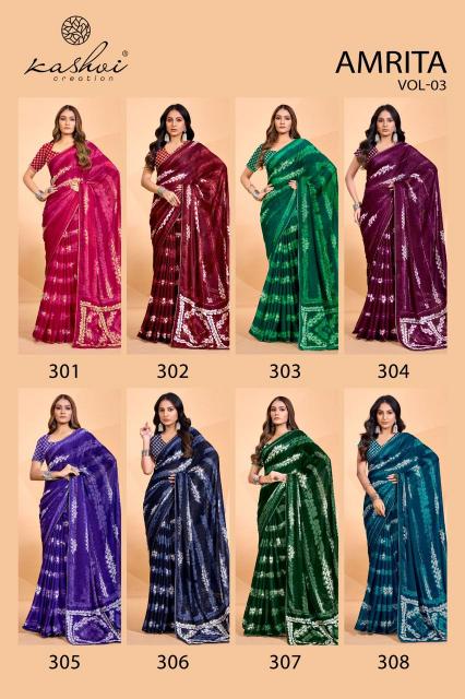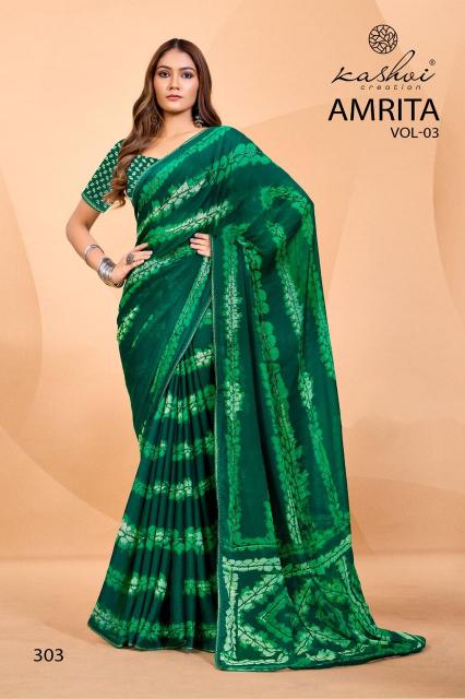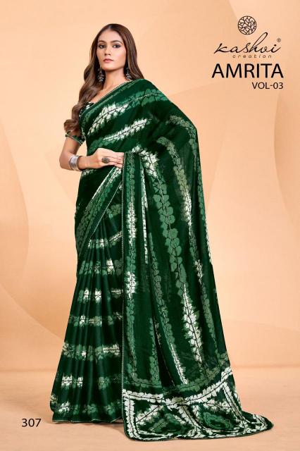 Looking for kashvi amrita vol 3 beautiful dull moss unique style saree Full Catalouge at Best Price? Buy Now kashvi amrita vol 3 beautiful dull moss unique style saree at Wholesale Rate of Rs 5480 with Total 8 Pcs from authroized dealer and supplier of Kashvi Creation Brand. Cost of Each piece is just only Rs 685 which is very low and affordable price to resale the product in your retail store. rrgandhi is Surat based Wholesale Supplier & Dealer of Kashvi Creation Brand. Click on Brand name to Know more about Brand's products.