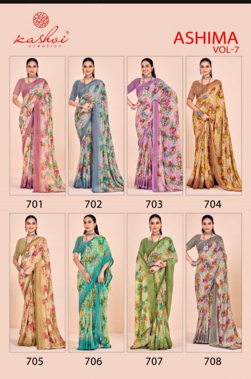 Looking for kashvi creation ashima vol 7 unique weightless saree collection Full Catalouge at Best Price? Buy Now kashvi creation ashima vol 7 unique weightless saree collection at Wholesale Rate of Rs 4520 with Total 8 Pcs from authroized dealer and supplier of Kashvi Creation Brand. Cost of Each piece is just only Rs 565 which is very low and affordable price to resale the product in your retail store. rrgandhi is Surat based Wholesale Supplier & Dealer of Kashvi Creation Brand. Click on Brand name to Know more about Brand's products.