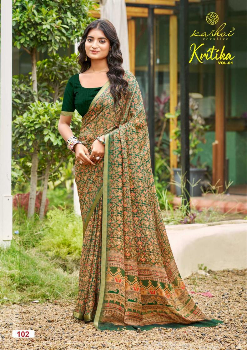 Looking for KASHVI CREATION KRITIKA DULL MOSS KASAB BEST SAREES Full Catalouge at Best Price? Buy Now KASHVI CREATION KRITIKA DULL MOSS KASAB BEST SAREES at Wholesale Rate of Rs 6360 with Total 8 Pcs from authroized dealer and supplier of Kashvi Creation Brand. Cost of Each piece is just only Rs 795 which is very low and affordable price to resale the product in your retail store. rrgandhi is Surat based Wholesale Supplier & Dealer of Kashvi Creation Brand. Click on Brand name to Know more about Brand's products.