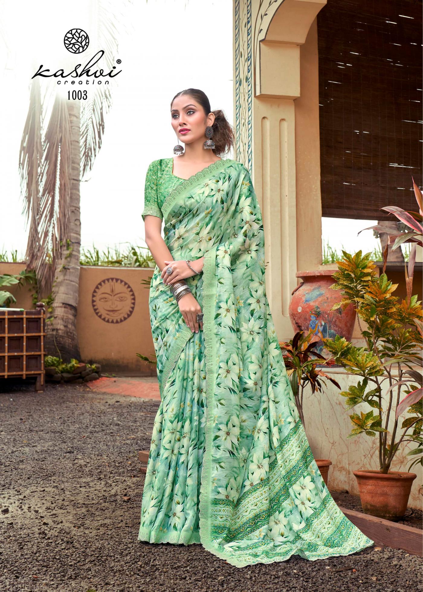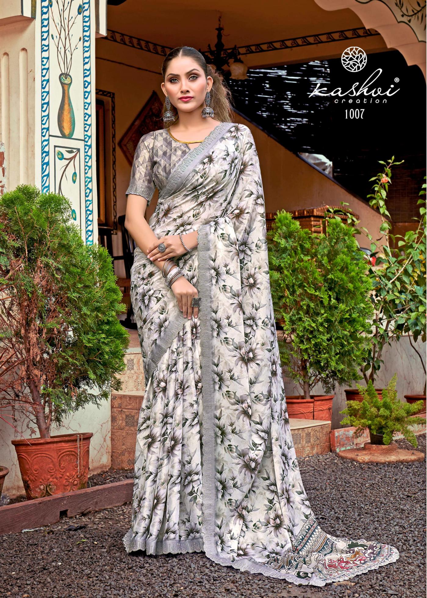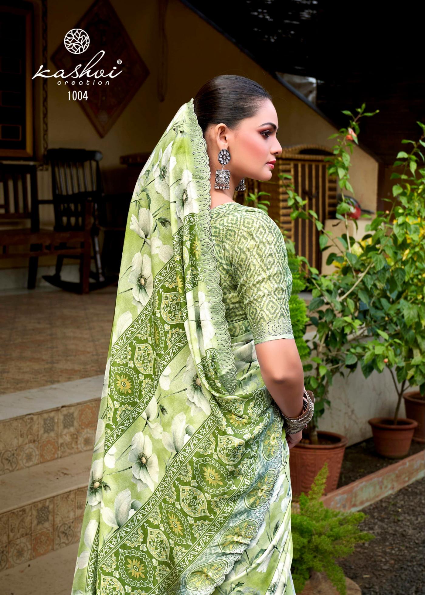 Looking for KASHVI CREATION KRIVA HIT DESIGN BRASSO SAREE WHOLESALER Full Catalouge at Best Price? Buy Now KASHVI CREATION KRIVA HIT DESIGN BRASSO SAREE WHOLESALER at Wholesale Rate of Rs 7320 with Total 8 Pcs from authroized dealer and supplier of Kashvi Creation Brand. Cost of Each piece is just only Rs 915 which is very low and affordable price to resale the product in your retail store. rrgandhi is Surat based Wholesale Supplier & Dealer of Kashvi Creation Brand. Click on Brand name to Know more about Brand's products.