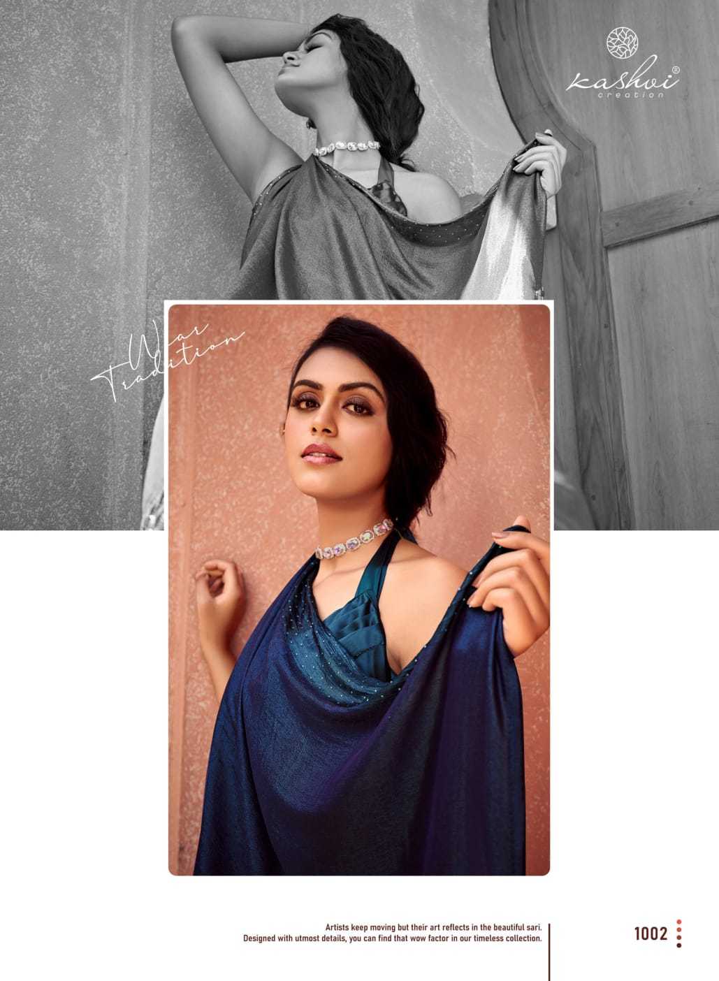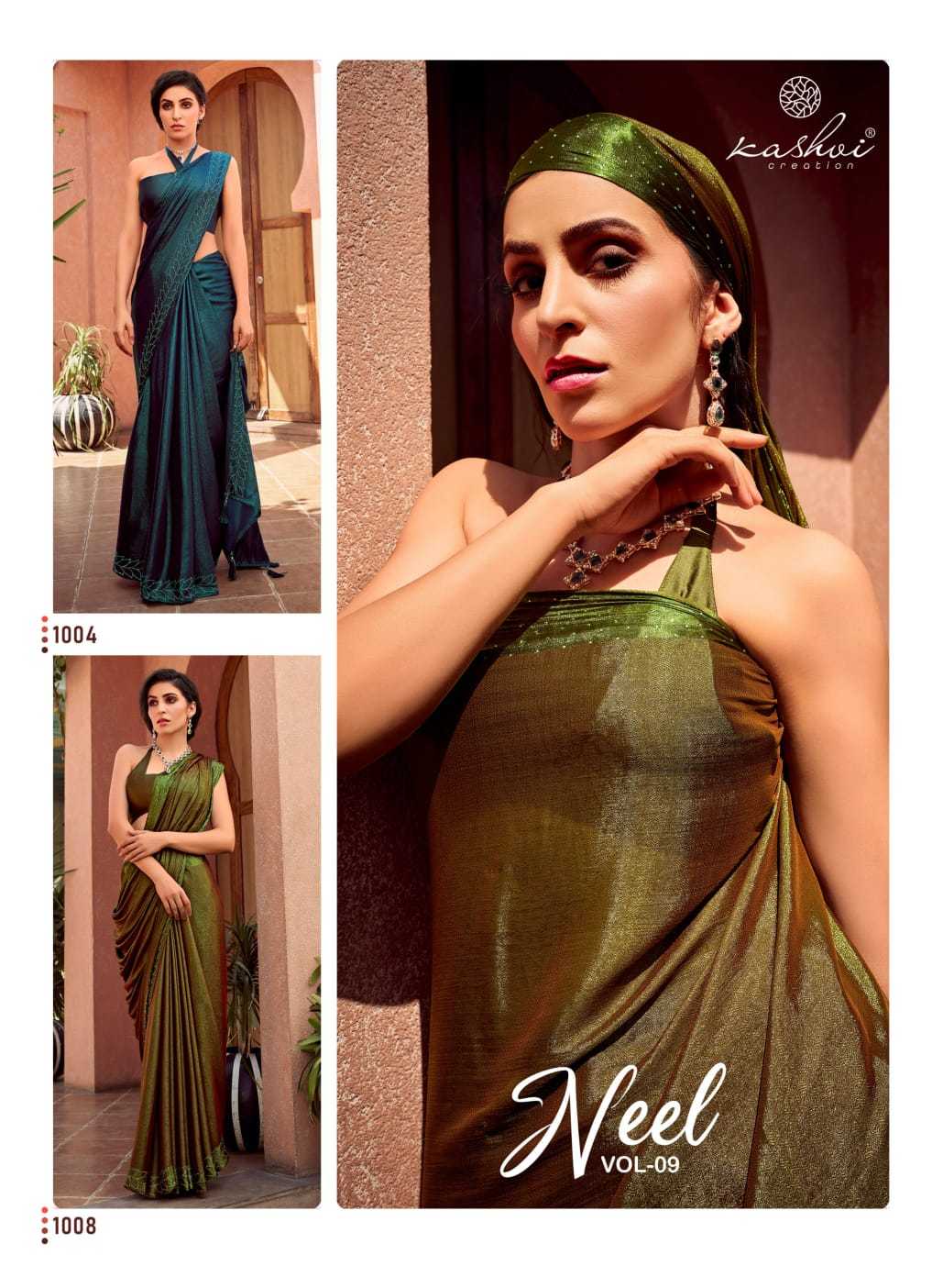Looking for kashvi creation neel 9 new trending hit ethnic style mono satin with swarovski work saree supplier Full Catalouge at Best Price? Buy Now kashvi creation neel 9 new trending hit ethnic style mono satin with swarovski work saree supplier at Wholesale Rate of Rs 6360 with Total 8 Pcs from authroized dealer and supplier of Kashvi Creation Brand. Cost of Each piece is just only Rs 795 which is very low and affordable price to resale the product in your retail store. rrgandhi is Surat based Wholesale Supplier & Dealer of Kashvi Creation Brand. Click on Brand name to Know more about Brand's products.
