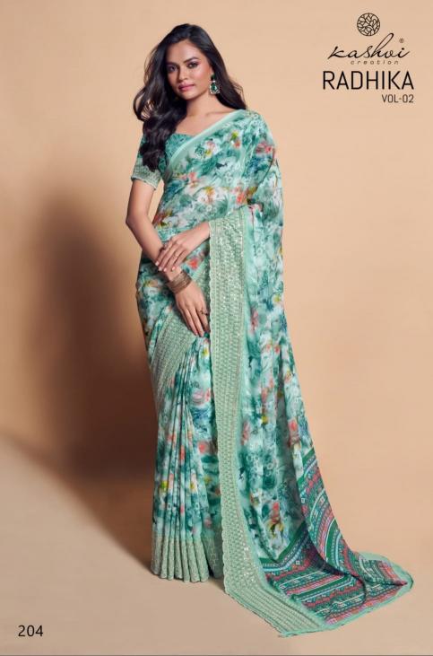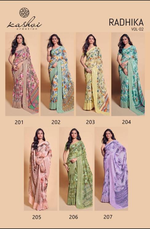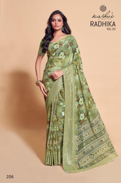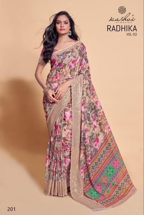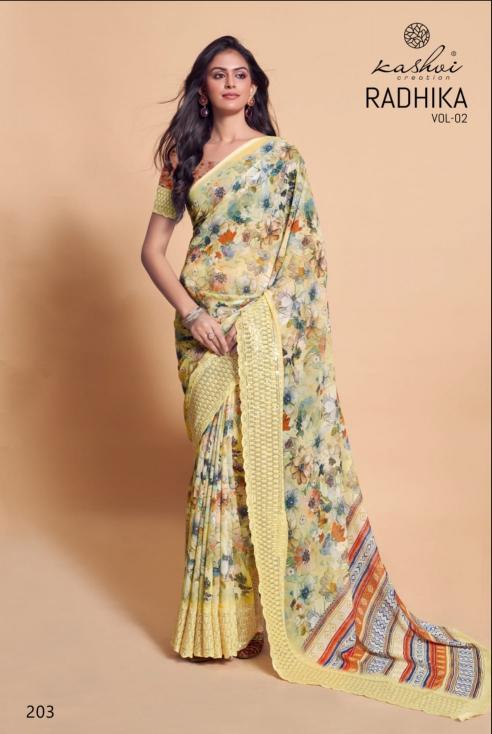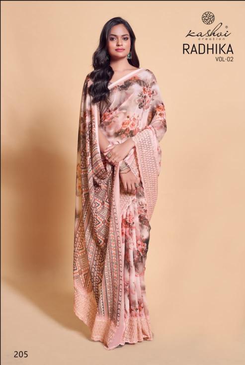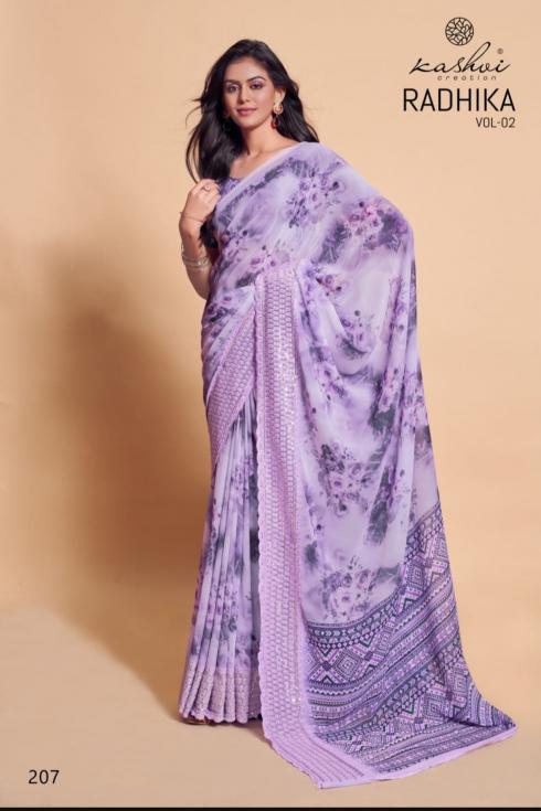 Looking for kashvi creation radhika vol 2 new trendy weightless saree Full Catalouge at Best Price? Buy Now kashvi creation radhika vol 2 new trendy weightless saree at Wholesale Rate of Rs 6360 with Total 8 Pcs from authroized dealer and supplier of Kashvi Creation Brand. Cost of Each piece is just only Rs 795 which is very low and affordable price to resale the product in your retail store. rrgandhi is Surat based Wholesale Supplier & Dealer of Kashvi Creation Brand. Click on Brand name to Know more about Brand's products.
