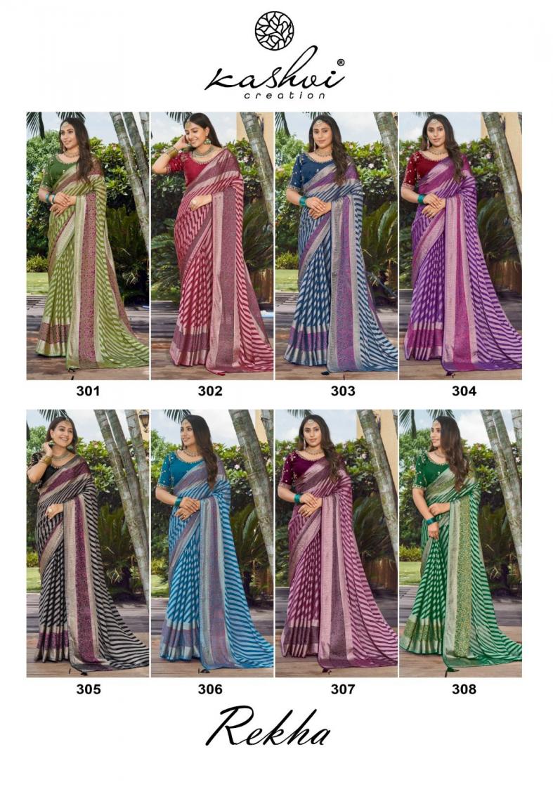 Looking for KASHVI CREATION REKHA MOSS BRASSO FANCY SAREES Full Catalouge at Best Price? Buy Now KASHVI CREATION REKHA MOSS BRASSO FANCY SAREES at Wholesale Rate of Rs 8200 with Total 8 Pcs from authroized dealer and supplier of Kashvi Creation Brand. Cost of Each piece is just only Rs 1025 which is very low and affordable price to resale the product in your retail store. rrgandhi is Surat based Wholesale Supplier & Dealer of Kashvi Creation Brand. Click on Brand name to Know more about Brand's products.