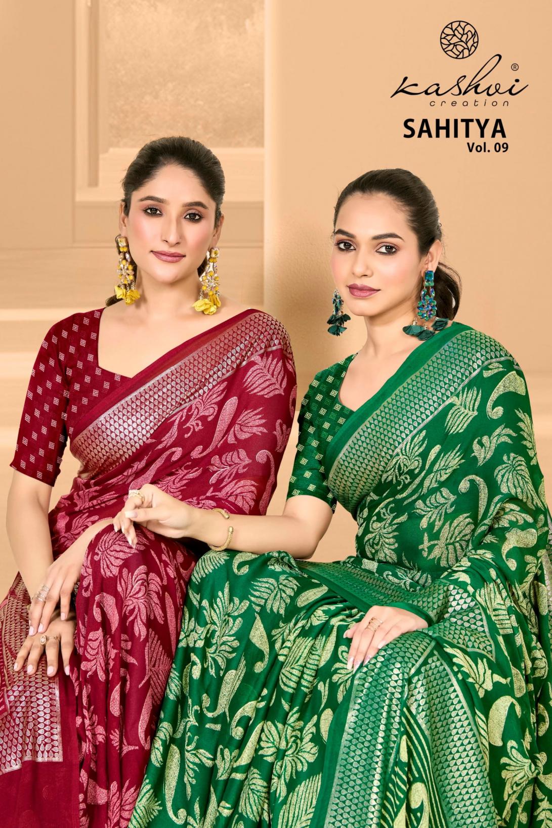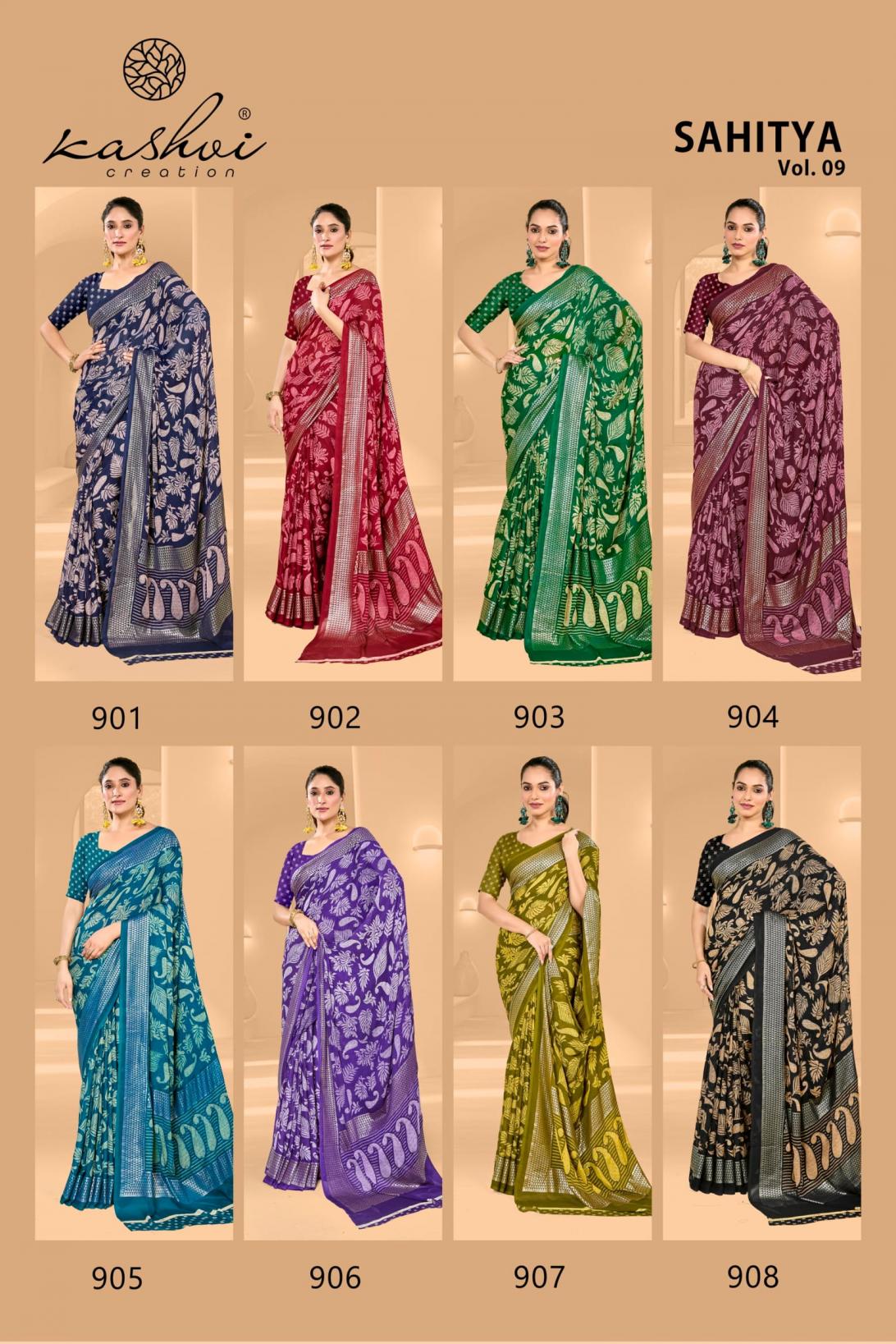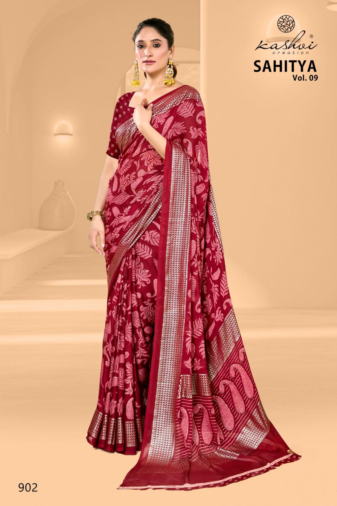 Looking for KASHVI CREATION SAHITYA VOL 9 DULL MOSS FANCY SAREE FOR WOMENS Full Catalouge at Best Price? Buy Now KASHVI CREATION SAHITYA VOL 9 DULL MOSS FANCY SAREE FOR WOMENS at Wholesale Rate of Rs 6360 with Total 8 Pcs from authroized dealer and supplier of Kashvi Creation Brand. Cost of Each piece is just only Rs 795 which is very low and affordable price to resale the product in your retail store. rrgandhi is Surat based Wholesale Supplier & Dealer of Kashvi Creation Brand. Click on Brand name to Know more about Brand's products.