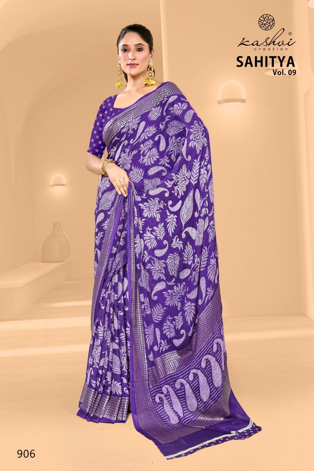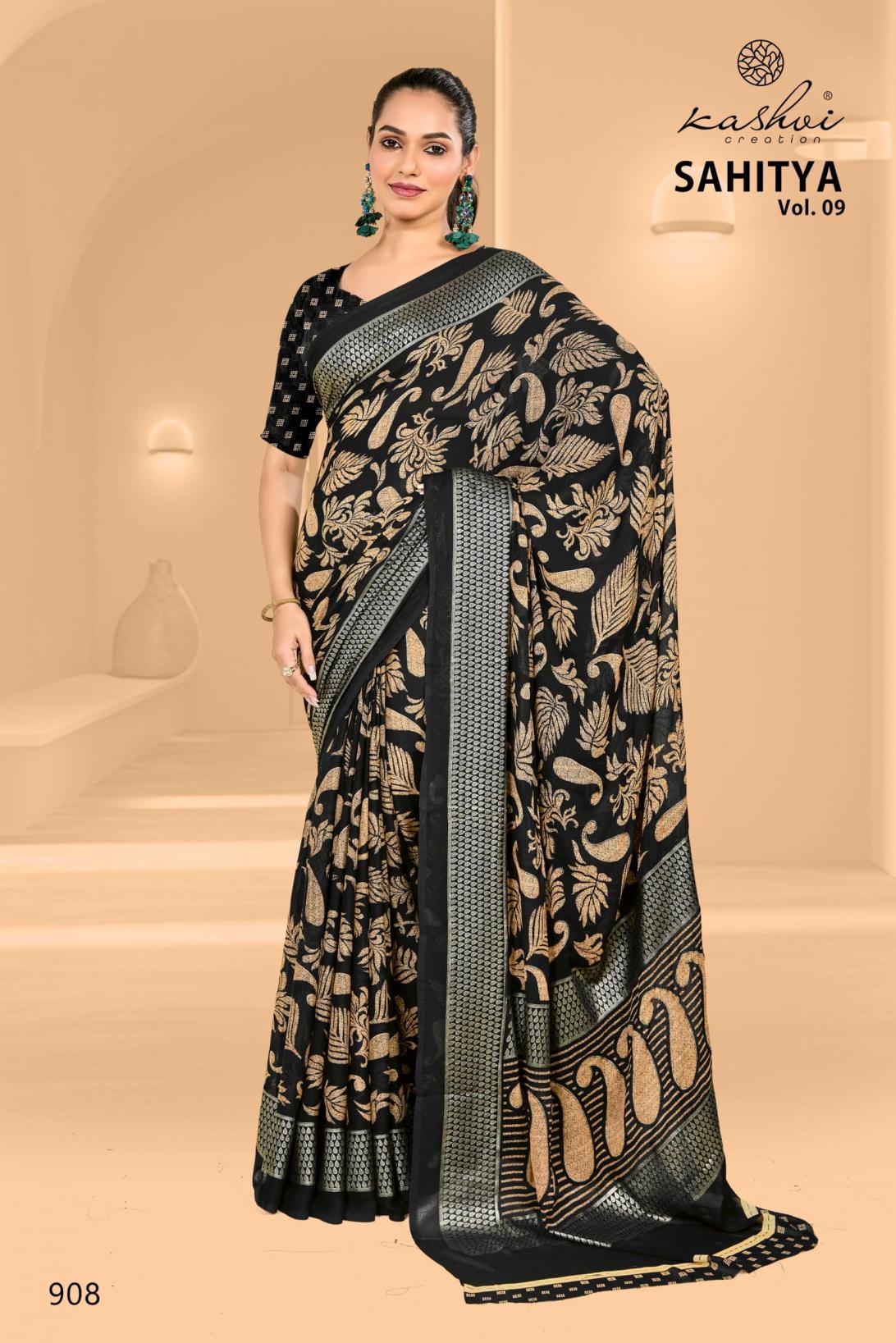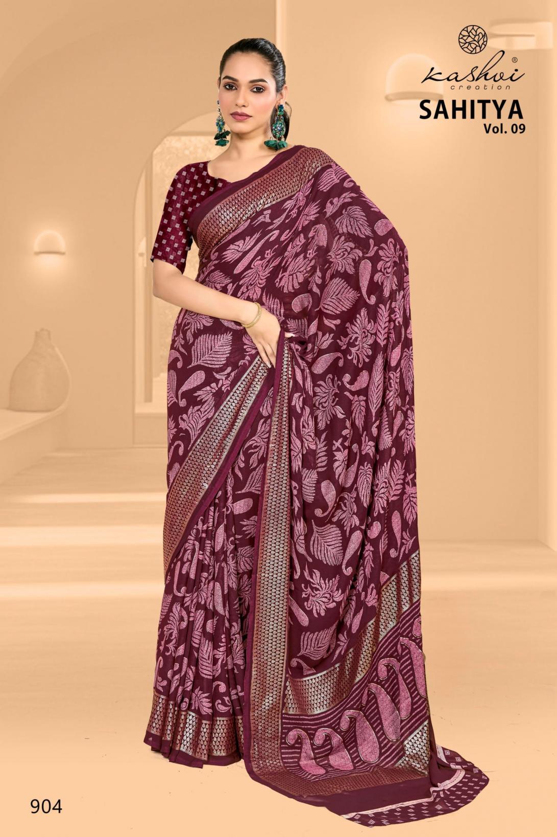 Looking for KASHVI CREATION SAHITYA VOL 9 DULL MOSS FANCY SAREE FOR WOMENS Full Catalouge at Best Price? Buy Now KASHVI CREATION SAHITYA VOL 9 DULL MOSS FANCY SAREE FOR WOMENS at Wholesale Rate of Rs 6360 with Total 8 Pcs from authroized dealer and supplier of Kashvi Creation Brand. Cost of Each piece is just only Rs 795 which is very low and affordable price to resale the product in your retail store. rrgandhi is Surat based Wholesale Supplier & Dealer of Kashvi Creation Brand. Click on Brand name to Know more about Brand's products.