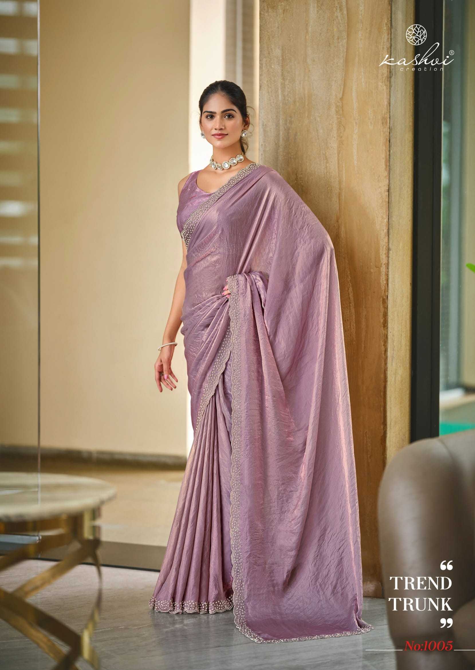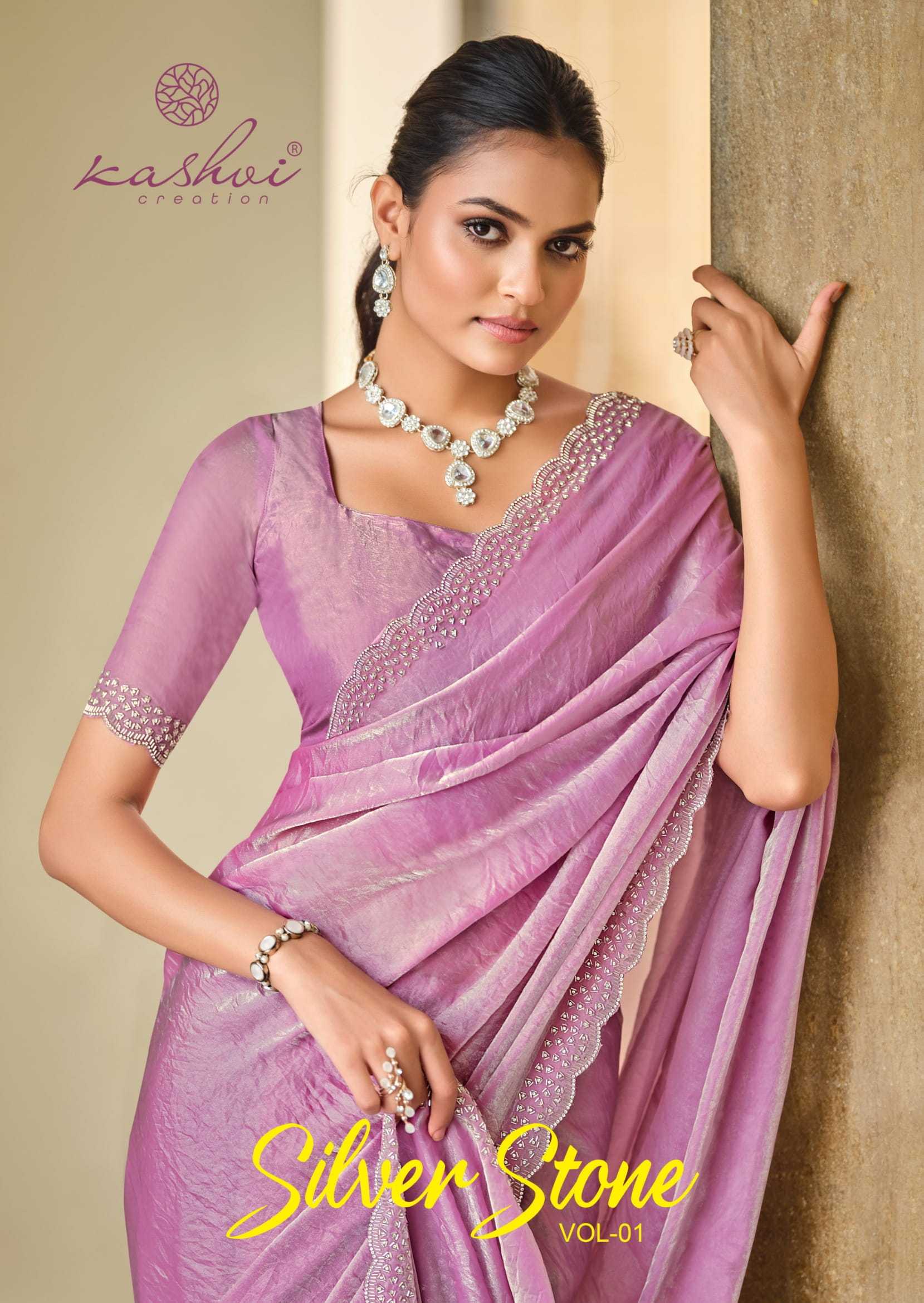Looking for kashvi creation silver stone vol 1 unique fashionable saree with blouse Full Catalouge at Best Price? Buy Now kashvi creation silver stone vol 1 unique fashionable saree with blouse at Wholesale Rate of Rs 9160 with Total 8 Pcs from authroized dealer and supplier of Kashvi Creation Brand. Cost of Each piece is just only Rs 1145 which is very low and affordable price to resale the product in your retail store. rrgandhi is Surat based Wholesale Supplier & Dealer of Kashvi Creation Brand. Click on Brand name to Know more about Brand's products.