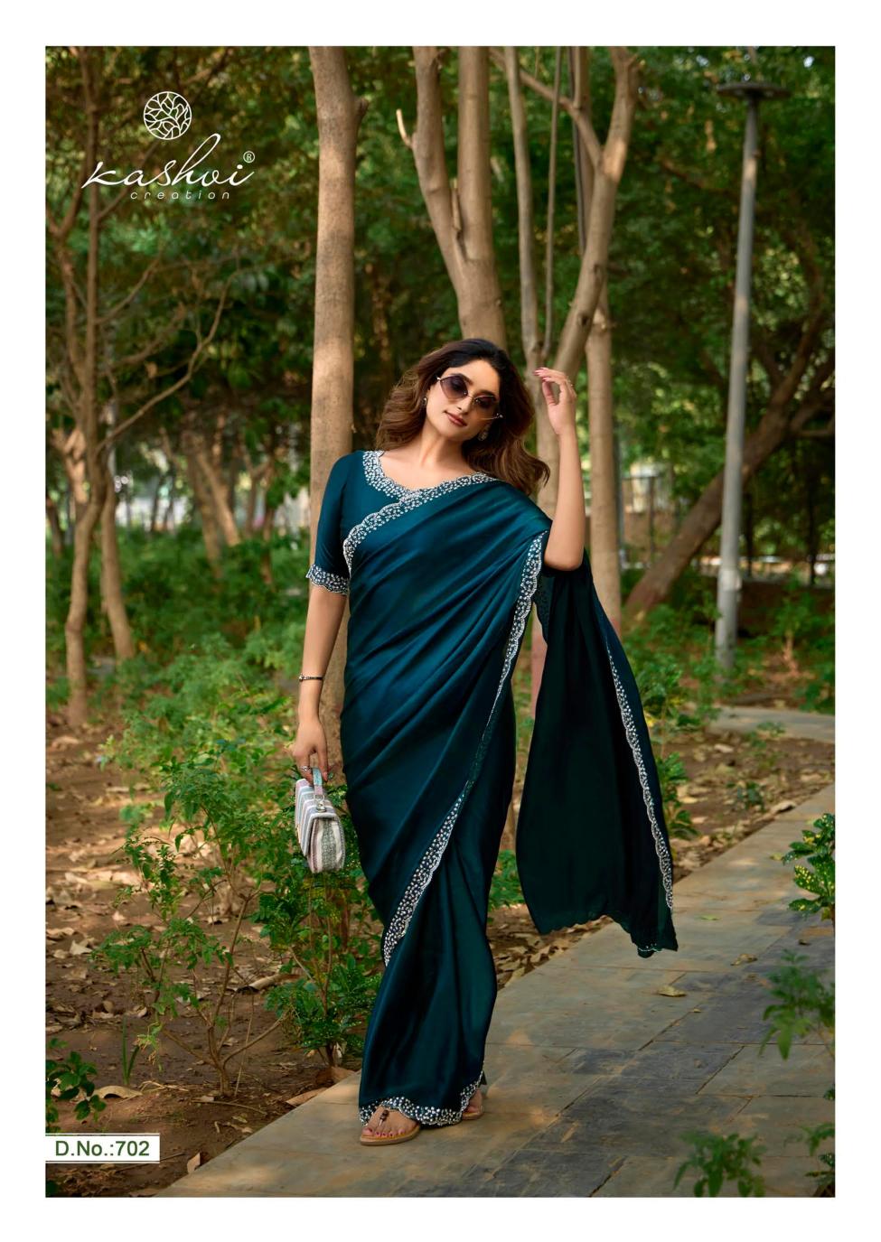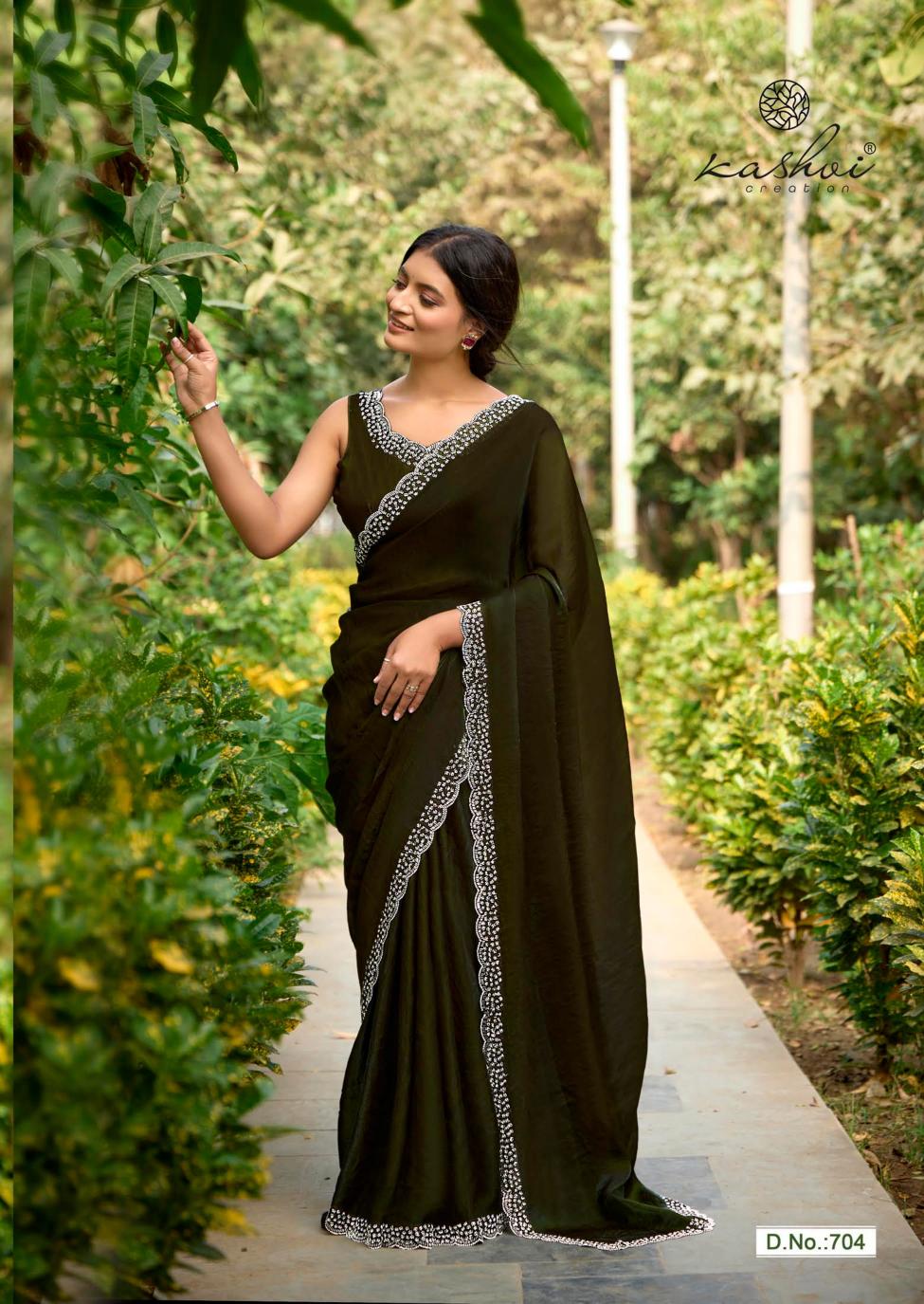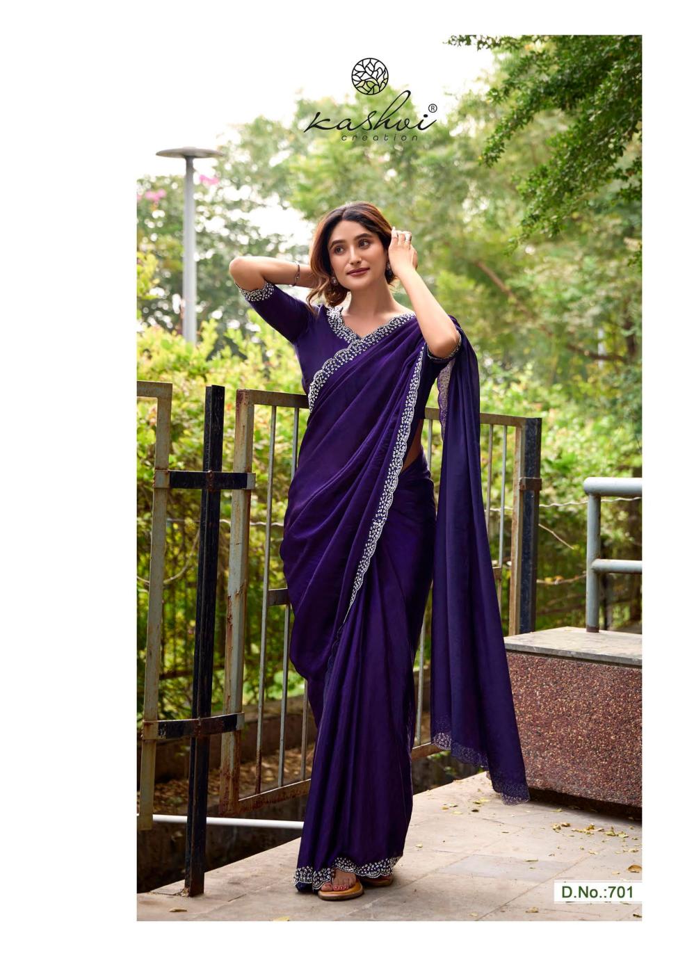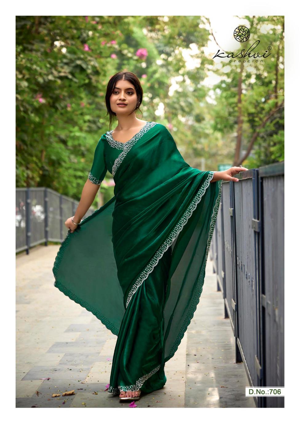 Looking for kashvi creation silver stone vol 7 fancy jharkan work latest saree design 2025 Full Catalouge at Best Price? Buy Now kashvi creation silver stone vol 7 fancy jharkan work latest saree design 2025 at Wholesale Rate of Rs 6870 with Total 6 Pcs from authroized dealer and supplier of Kashvi Creation Brand. Cost of Each piece is just only Rs 1145 which is very low and affordable price to resale the product in your retail store. rrgandhi is Surat based Wholesale Supplier & Dealer of Kashvi Creation Brand. Click on Brand name to Know more about Brand's products.