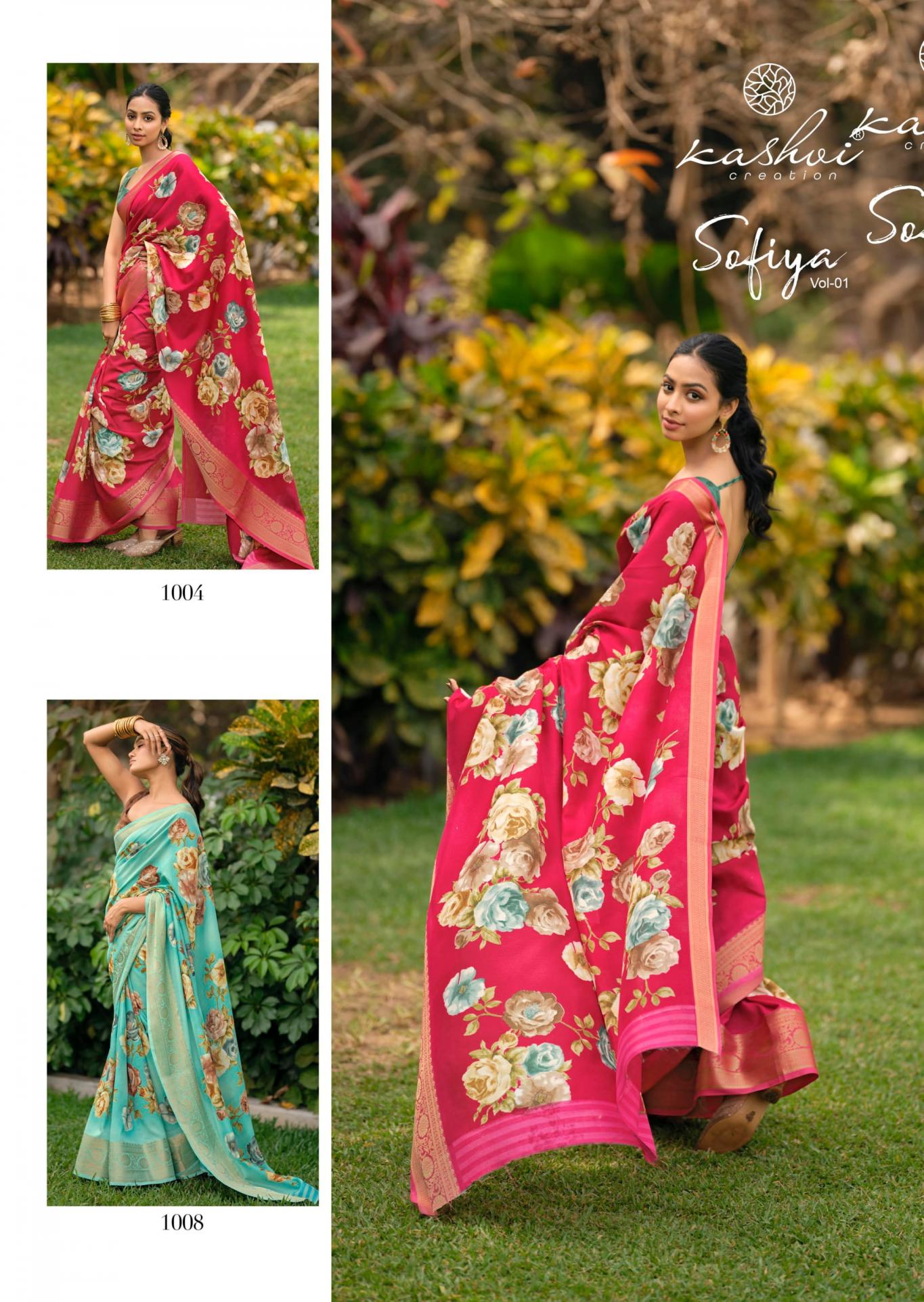 Looking for KASHVI CREATION SOFIYA VOL 1 DULL MOSS CASUAL SAREES ONLINE Full Catalouge at Best Price? Buy Now KASHVI CREATION SOFIYA VOL 1 DULL MOSS CASUAL SAREES ONLINE at Wholesale Rate of Rs 6360 with Total 8 Pcs from authroized dealer and supplier of Kashvi Creation Brand. Cost of Each piece is just only Rs 795 which is very low and affordable price to resale the product in your retail store. rrgandhi is Surat based Wholesale Supplier & Dealer of Kashvi Creation Brand. Click on Brand name to Know more about Brand's products.
