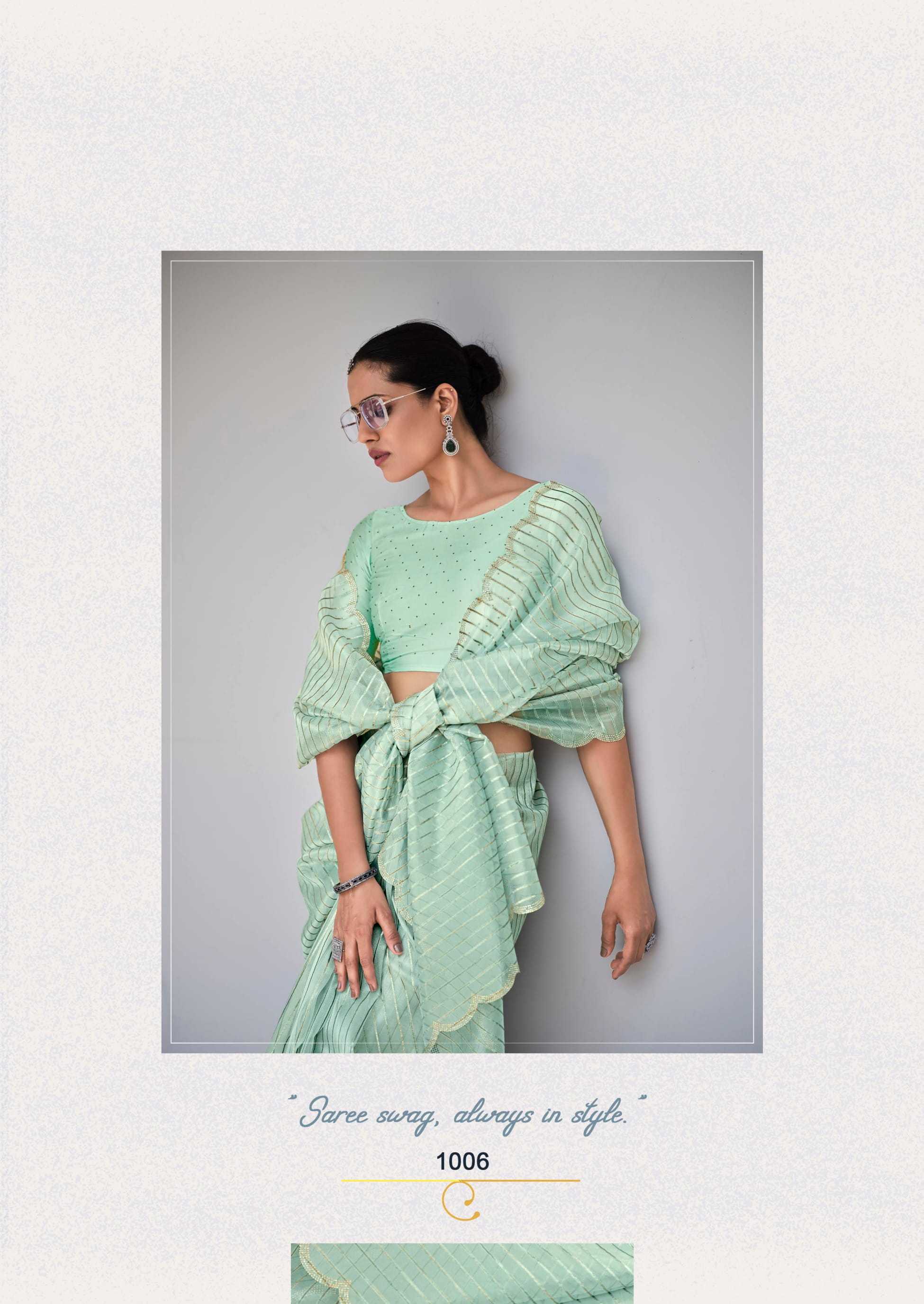 Looking for kashvi creation solitaire vol 5 stylish organza silk amazing work saree exports Full Catalouge at Best Price? Buy Now kashvi creation solitaire vol 5 stylish organza silk amazing work saree exports at Wholesale Rate of Rs 6965 with Total 7 Pcs from authroized dealer and supplier of Kashvi Creation Brand. Cost of Each piece is just only Rs 995 which is very low and affordable price to resale the product in your retail store. rrgandhi is Surat based Wholesale Supplier & Dealer of Kashvi Creation Brand. Click on Brand name to Know more about Brand's products.