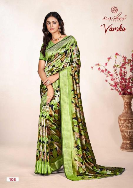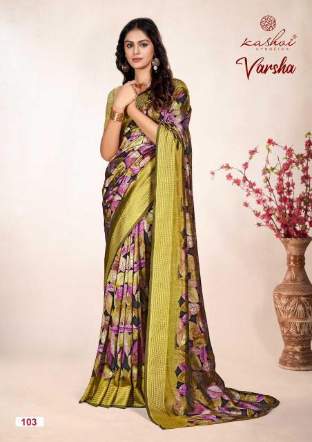 Looking for kashvi creation varsha vol 1 vichitra dobby hit design saree with blouse Full Catalouge at Best Price? Buy Now kashvi creation varsha vol 1 vichitra dobby hit design saree with blouse at Wholesale Rate of Rs 4200 with Total 8 Pcs from authroized dealer and supplier of Kashvi Creation Brand. Cost of Each piece is just only Rs 525 which is very low and affordable price to resale the product in your retail store. rrgandhi is Surat based Wholesale Supplier & Dealer of Kashvi Creation Brand. Click on Brand name to Know more about Brand's products.