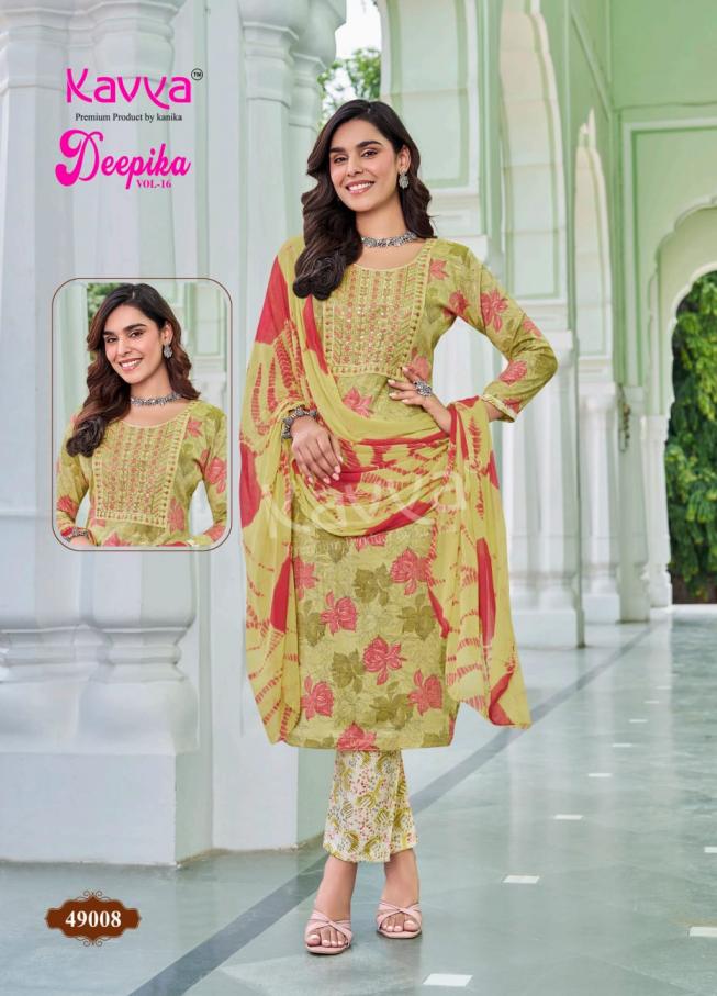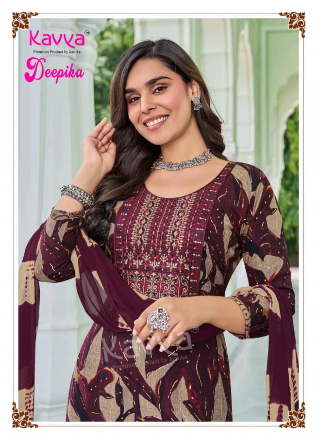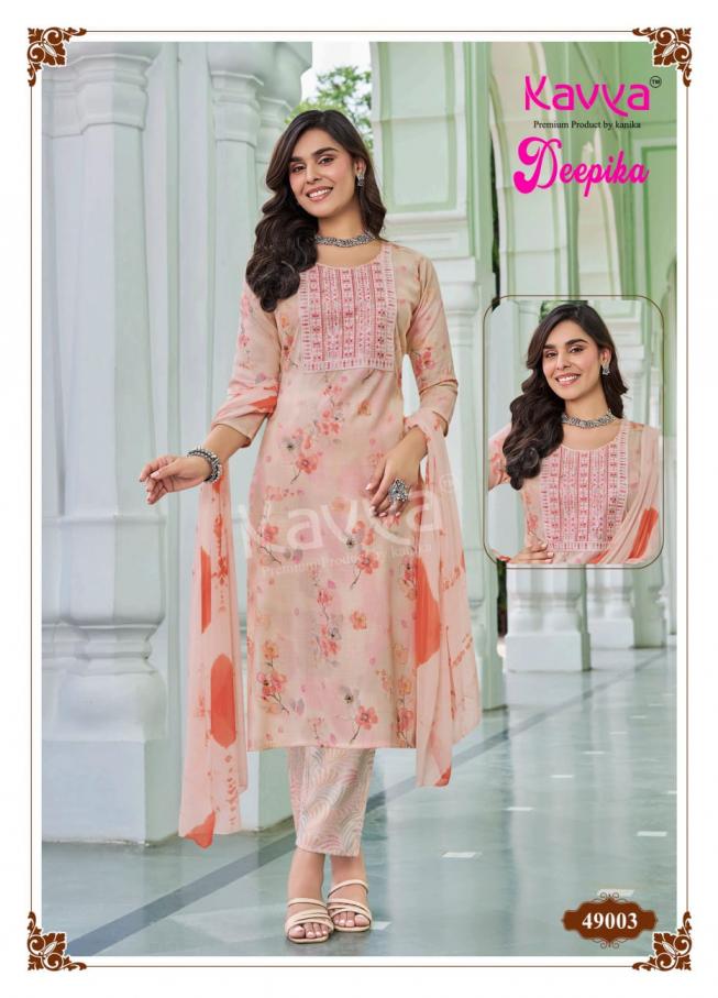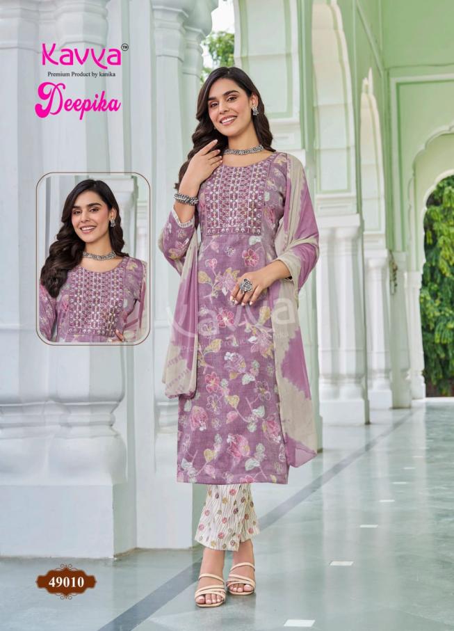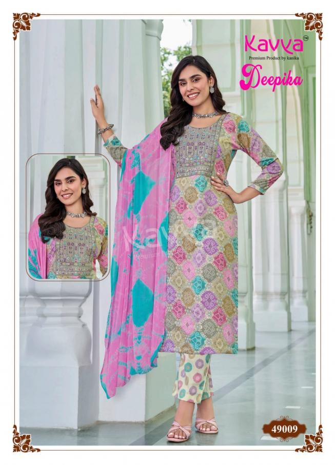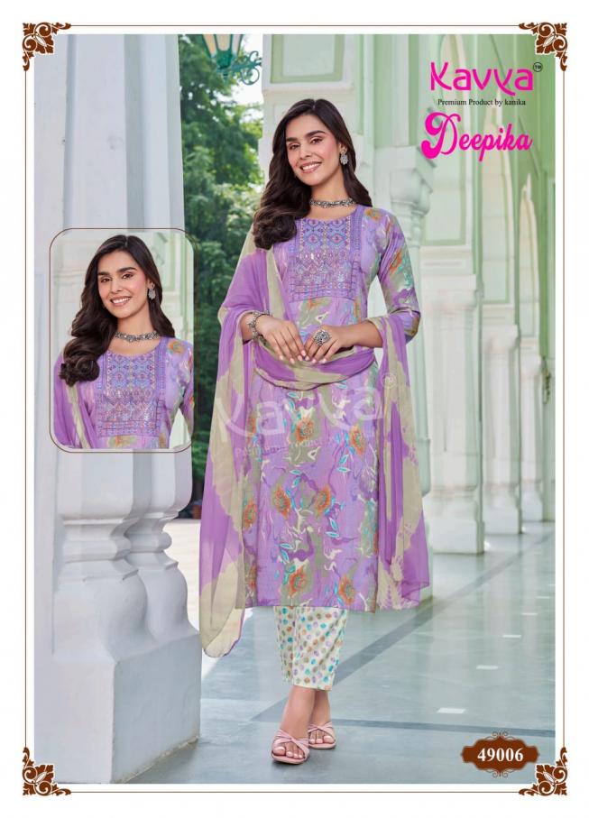 Looking for KAVYA DEEPIKA VOL 49 READYMADE STYLISH CAPSULE PRINT 3PCS DRESS Full Catalouge at Best Price? Buy Now KAVYA DEEPIKA VOL 49 READYMADE STYLISH CAPSULE PRINT 3PCS DRESS at Wholesale Rate of Rs 5000 with Total 10 Pcs from authroized dealer and supplier of Kavya by Kanika Brand. Cost of Each piece is just only Rs 500 which is very low and affordable price to resale the product in your retail store. rrgandhi is Surat based Wholesale Supplier & Dealer of Kavya by Kanika Brand. Click on Brand name to Know more about Brand's products.