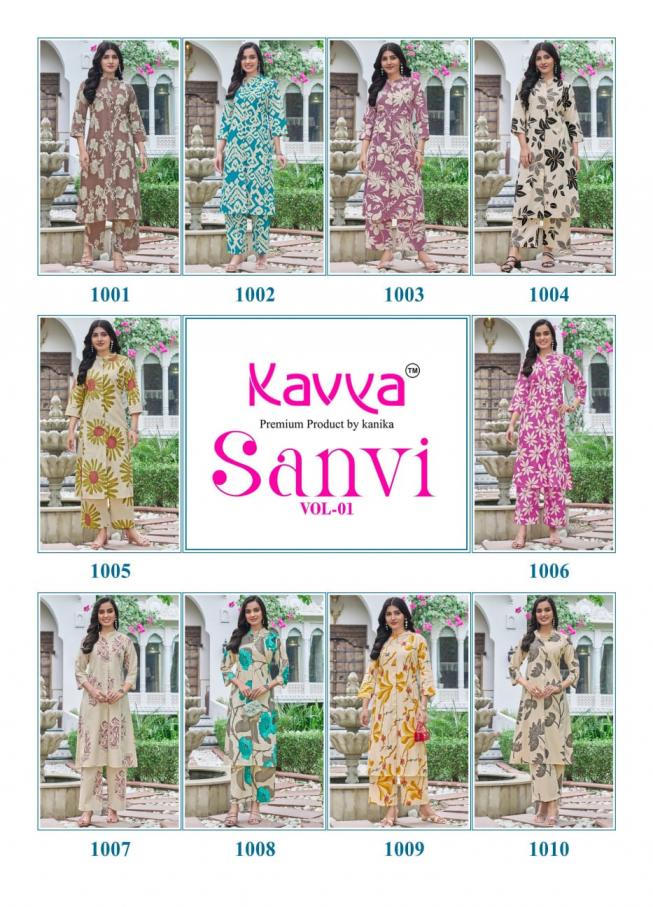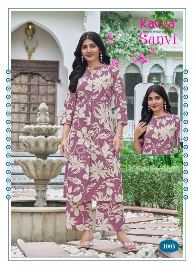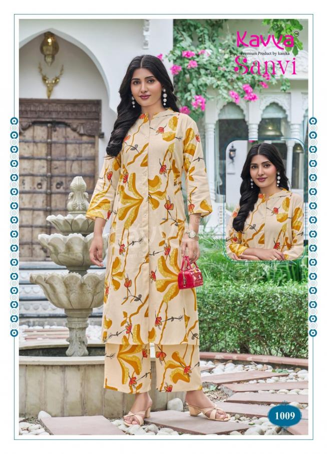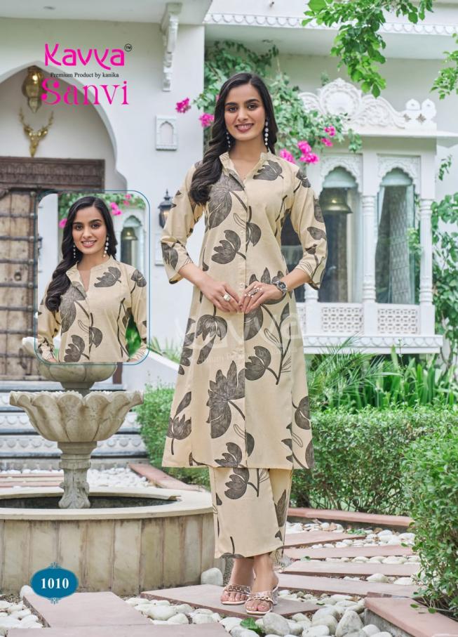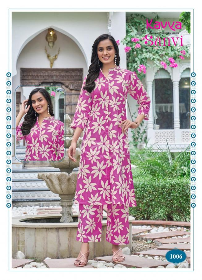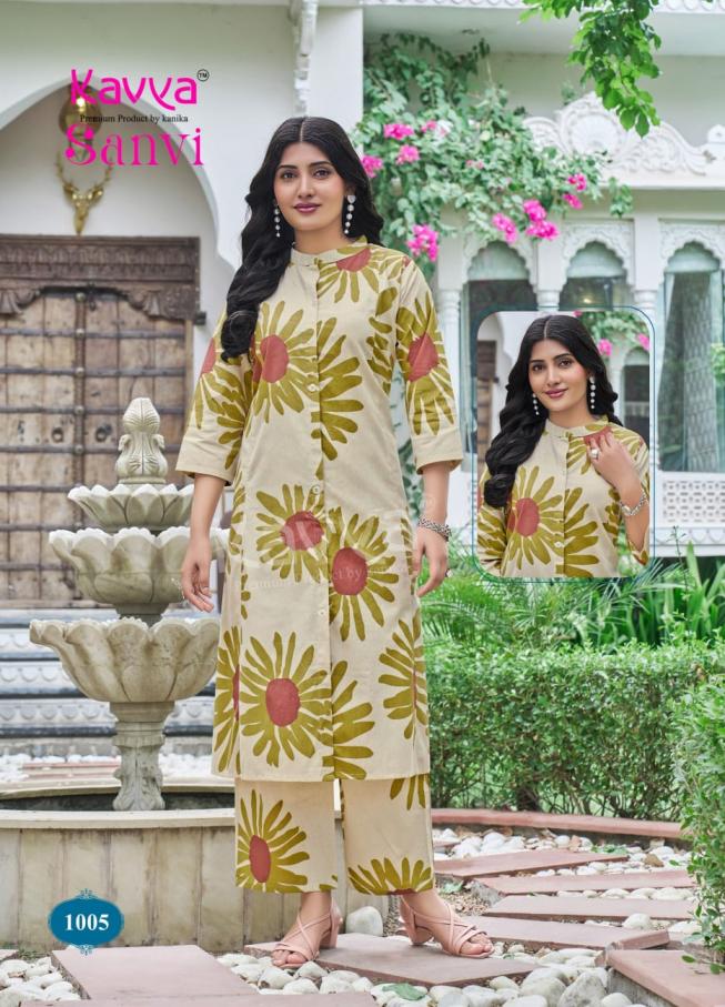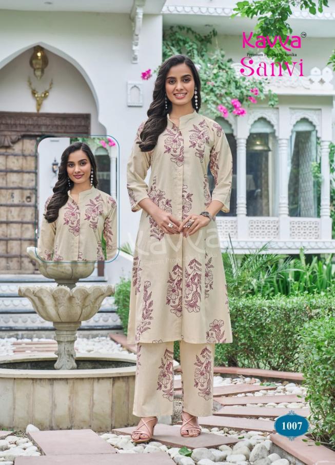 Looking for KAVYA SANVI VOL 1 FULLY STITCH COTTON FLEX CLASSIC CO-ORD FOR WOMENS Full Catalouge at Best Price? Buy Now KAVYA SANVI VOL 1 FULLY STITCH COTTON FLEX CLASSIC CO-ORD FOR WOMENS at Wholesale Rate of Rs 4300 with Total 10 Pcs from authroized dealer and supplier of Kavya by Kanika Brand. Cost of Each piece is just only Rs 430 which is very low and affordable price to resale the product in your retail store. rrgandhi is Surat based Wholesale Supplier & Dealer of Kavya by Kanika Brand. Click on Brand name to Know more about Brand's products.