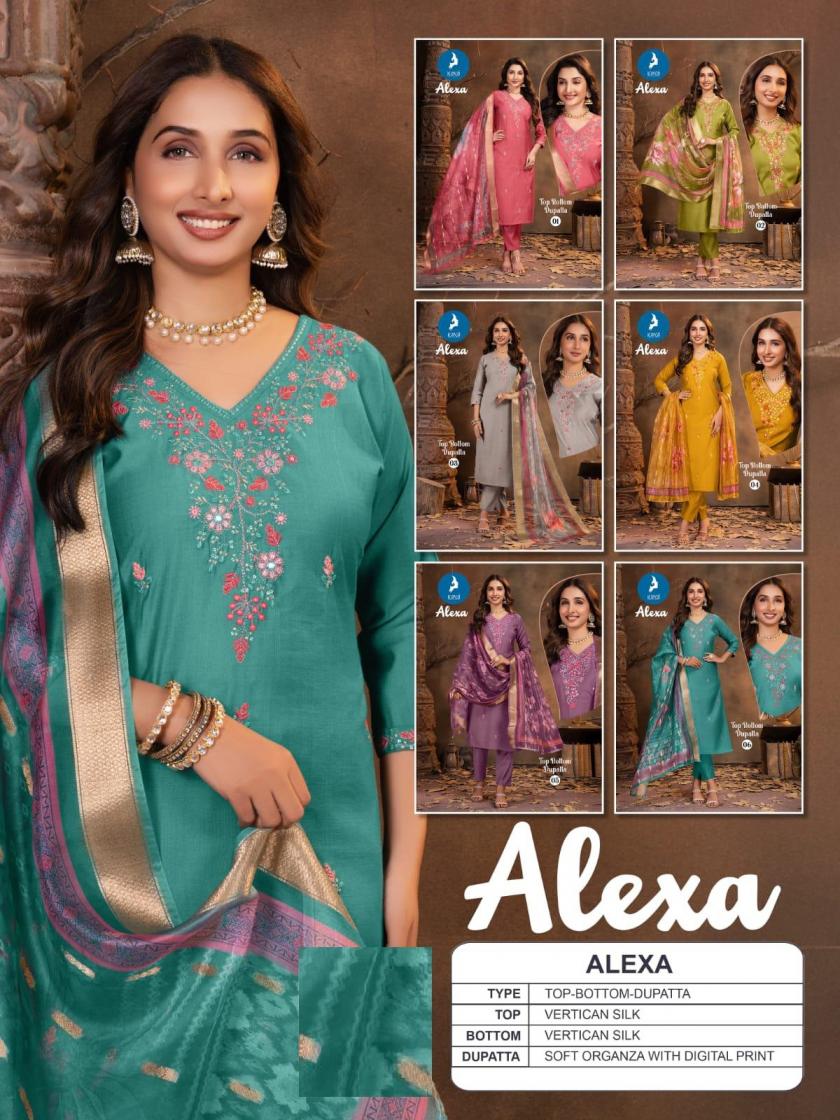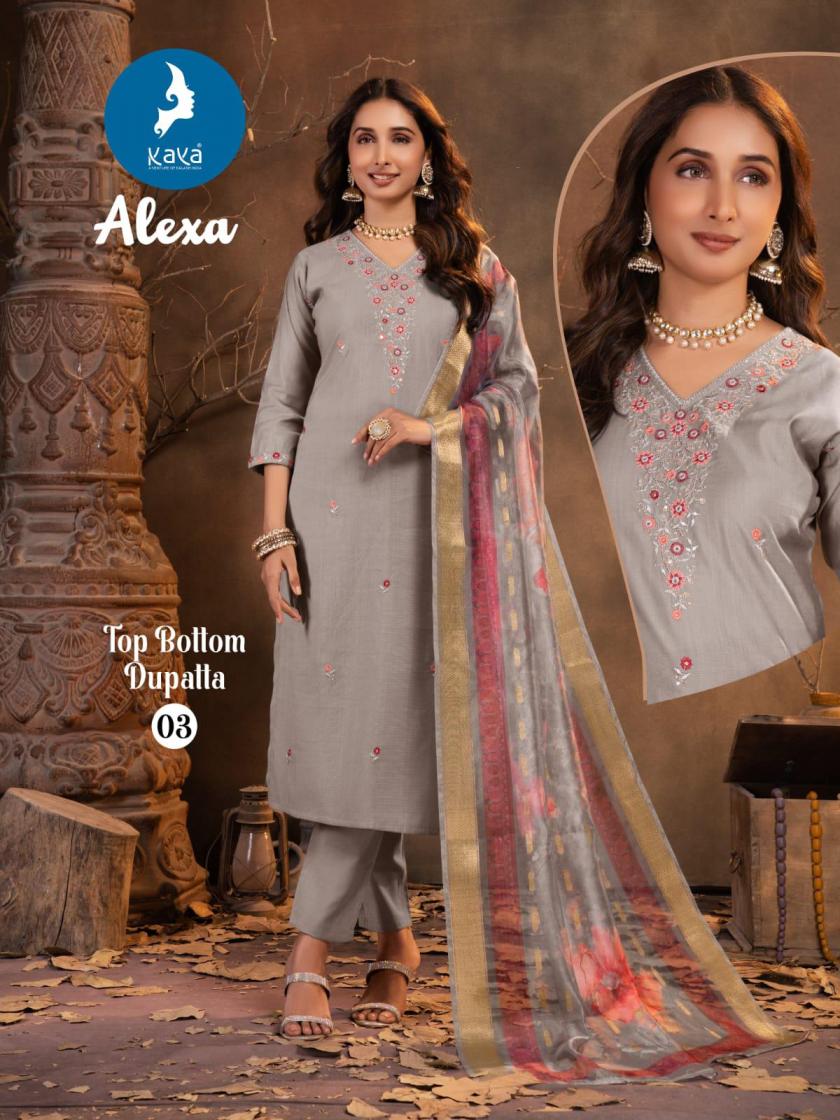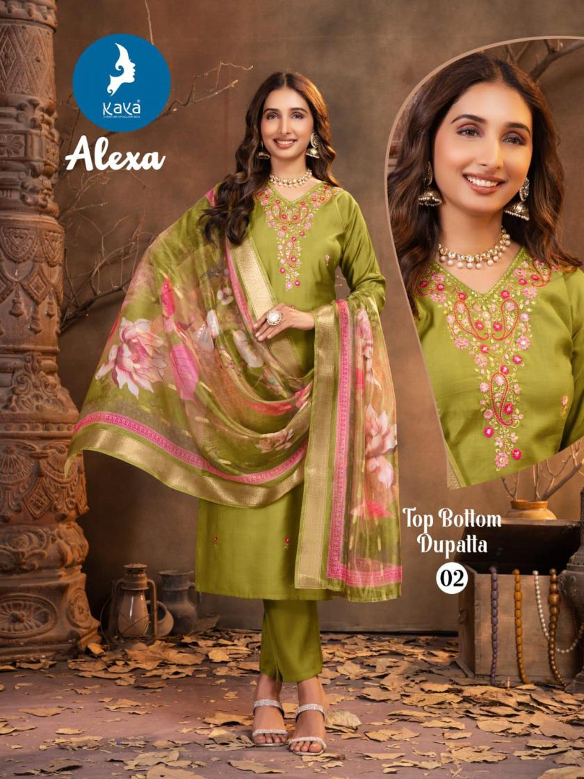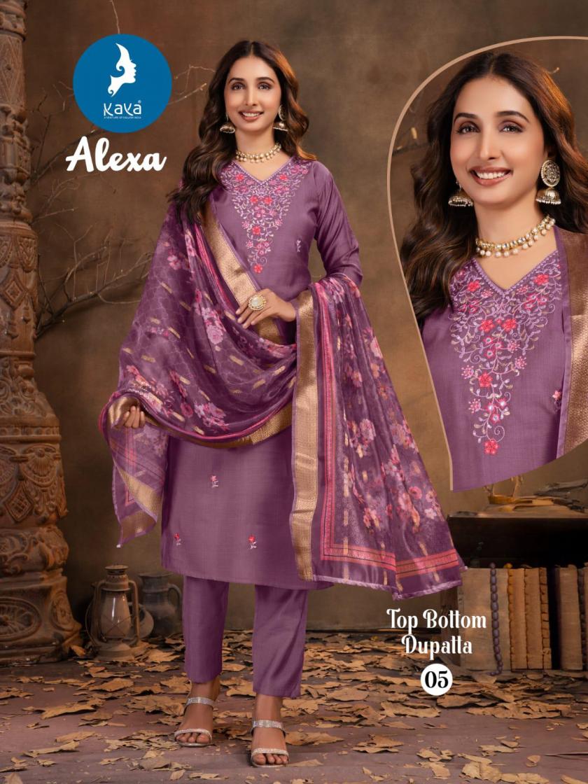 Looking for KAYA ALEXA READYMADE VERTICAN SILK CASUAL 3PCS DRESS Full Catalouge at Best Price? Buy Now KAYA ALEXA READYMADE VERTICAN SILK CASUAL 3PCS DRESS at Wholesale Rate of Rs 5190 with Total 6 Pcs from authroized dealer and supplier of Kaya Brand. Cost of Each piece is just only Rs 865 which is very low and affordable price to resale the product in your retail store. rrgandhi is Surat based Wholesale Supplier & Dealer of Kaya Brand. Click on Brand name to Know more about Brand's products.