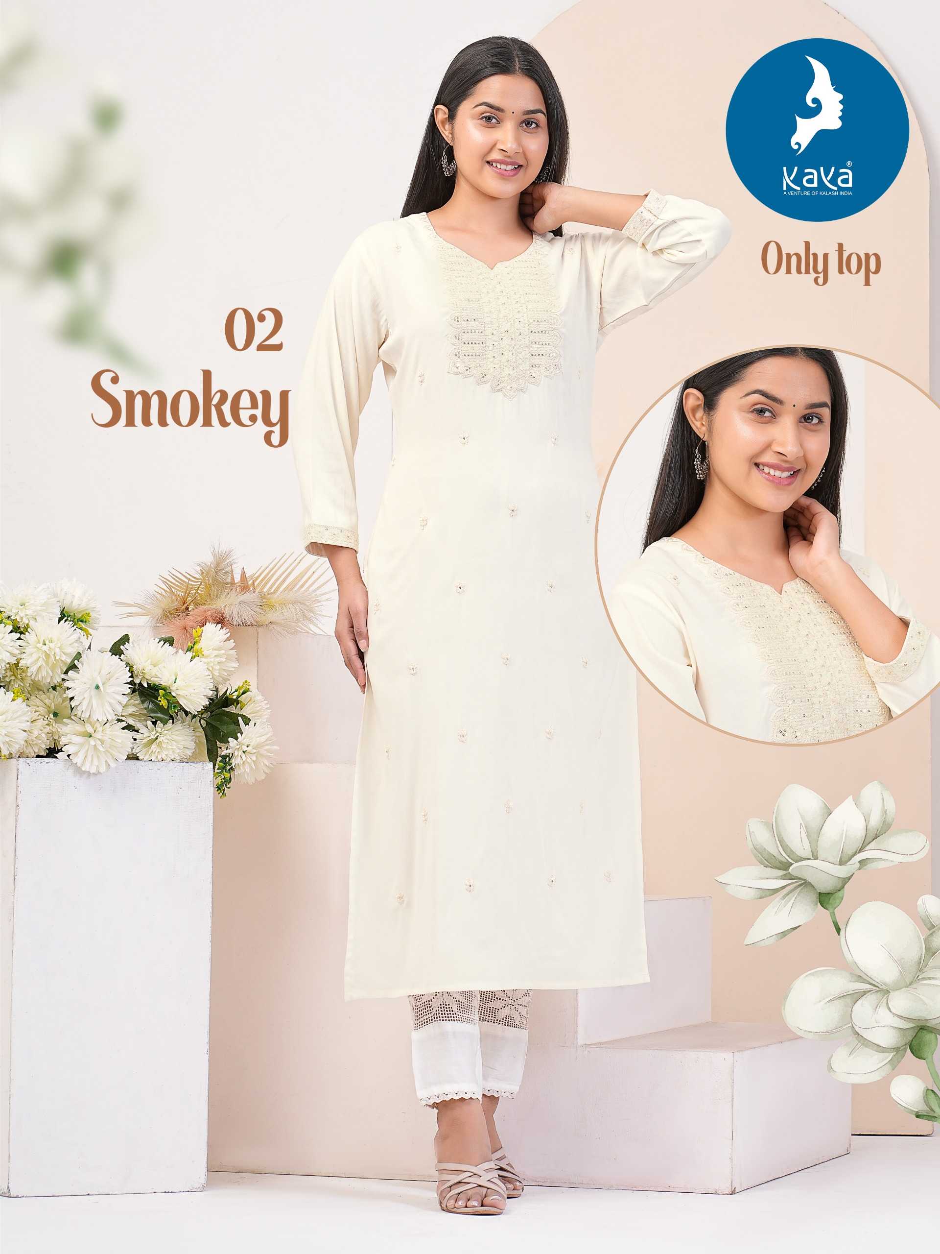 Looking for kaya smokey fancy wear readymade kurti Full Catalouge at Best Price? Buy Now kaya smokey fancy wear readymade kurti at Wholesale Rate of Rs 3160 with Total 8 Pcs from authroized dealer and supplier of Kaya Brand. Cost of Each piece is just only Rs 395 which is very low and affordable price to resale the product in your retail store. rrgandhi is Surat based Wholesale Supplier & Dealer of Kaya Brand. Click on Brand name to Know more about Brand's products.