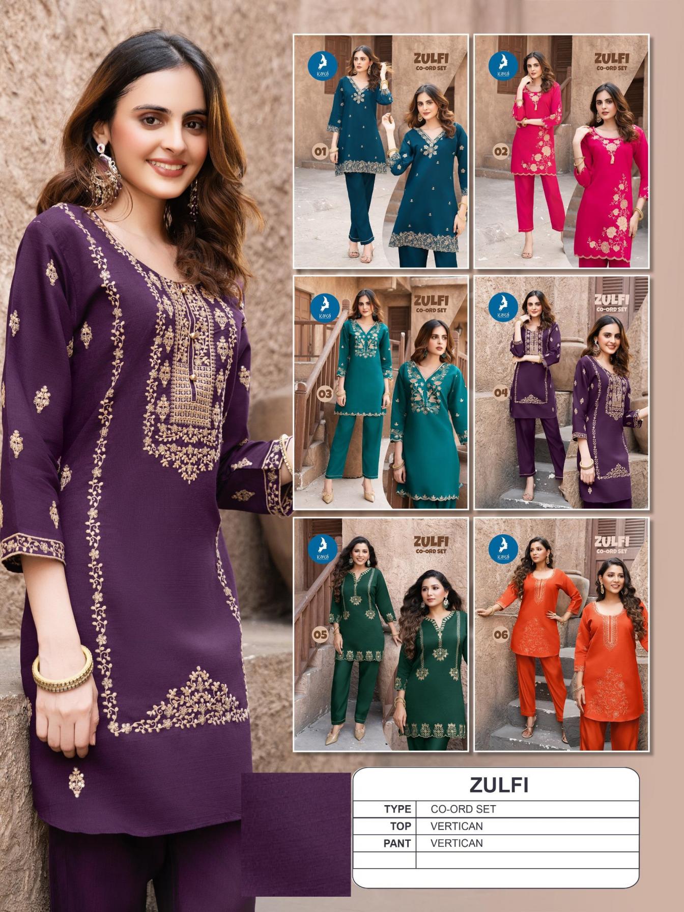 Looking for KAYA ZULFI VERTICAN ATTRACTIVE FULL STITCH CO-ORD SETS Full Catalouge at Best Price? Buy Now KAYA ZULFI VERTICAN ATTRACTIVE FULL STITCH CO-ORD SETS at Wholesale Rate of Rs 4020 with Total 6 Pcs from authroized dealer and supplier of Kaya Brand. Cost of Each piece is just only Rs 670 which is very low and affordable price to resale the product in your retail store. rrgandhi is Surat based Wholesale Supplier & Dealer of Kaya Brand. Click on Brand name to Know more about Brand's products.
