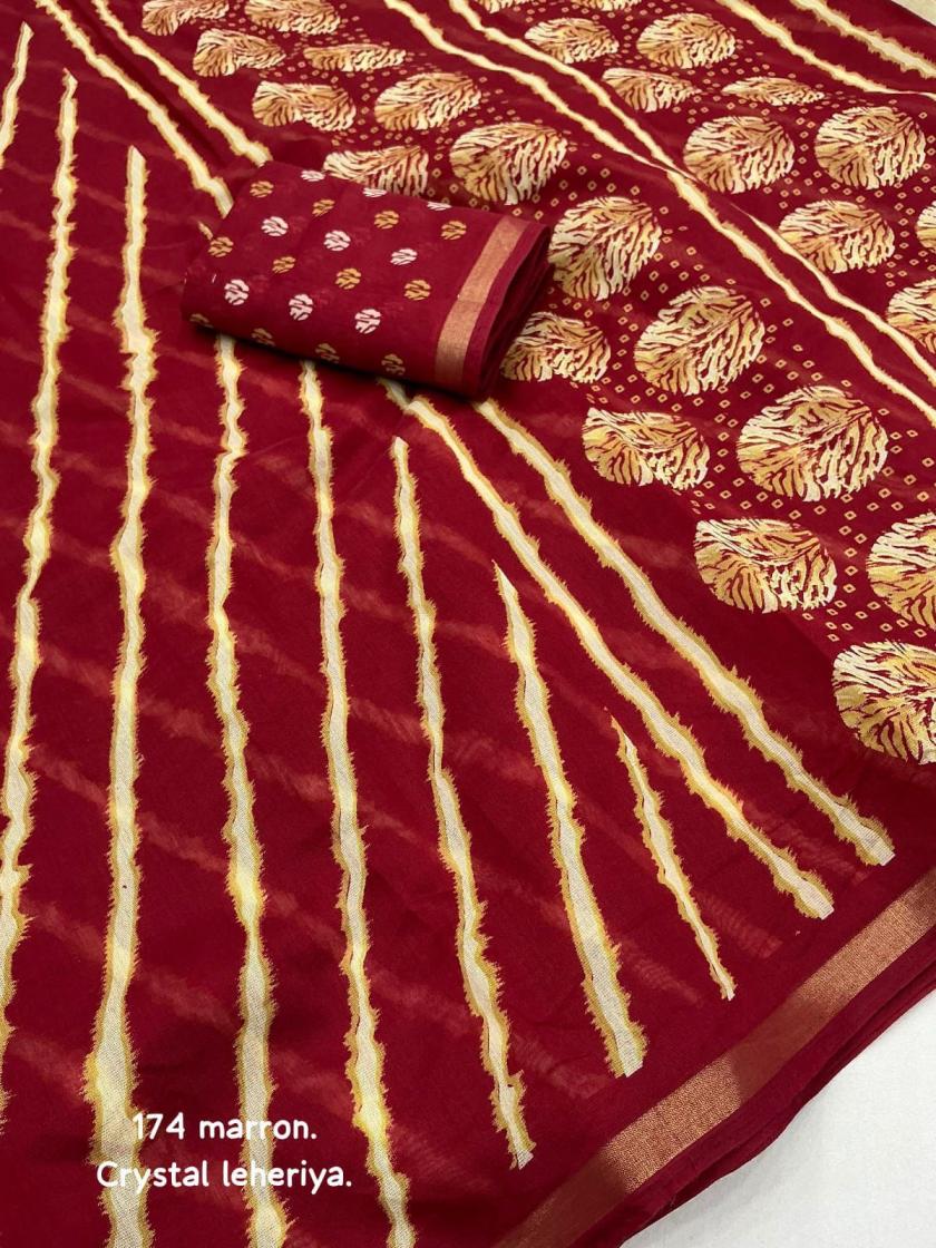 Looking for KC 173 HIT DESIGN CRYSTAL LEHERIYA FANCY SAREES Full Catalouge at Best Price? Buy Now KC 173 HIT DESIGN CRYSTAL LEHERIYA FANCY SAREES at Wholesale Rate of Rs 1800 with Total 4 Pcs from authroized dealer and supplier of P R Clothing Brand. Cost of Each piece is just only Rs 450 which is very low and affordable price to resale the product in your retail store. rrgandhi is Surat based Wholesale Supplier & Dealer of P R Clothing Brand. Click on Brand name to Know more about Brand's products.