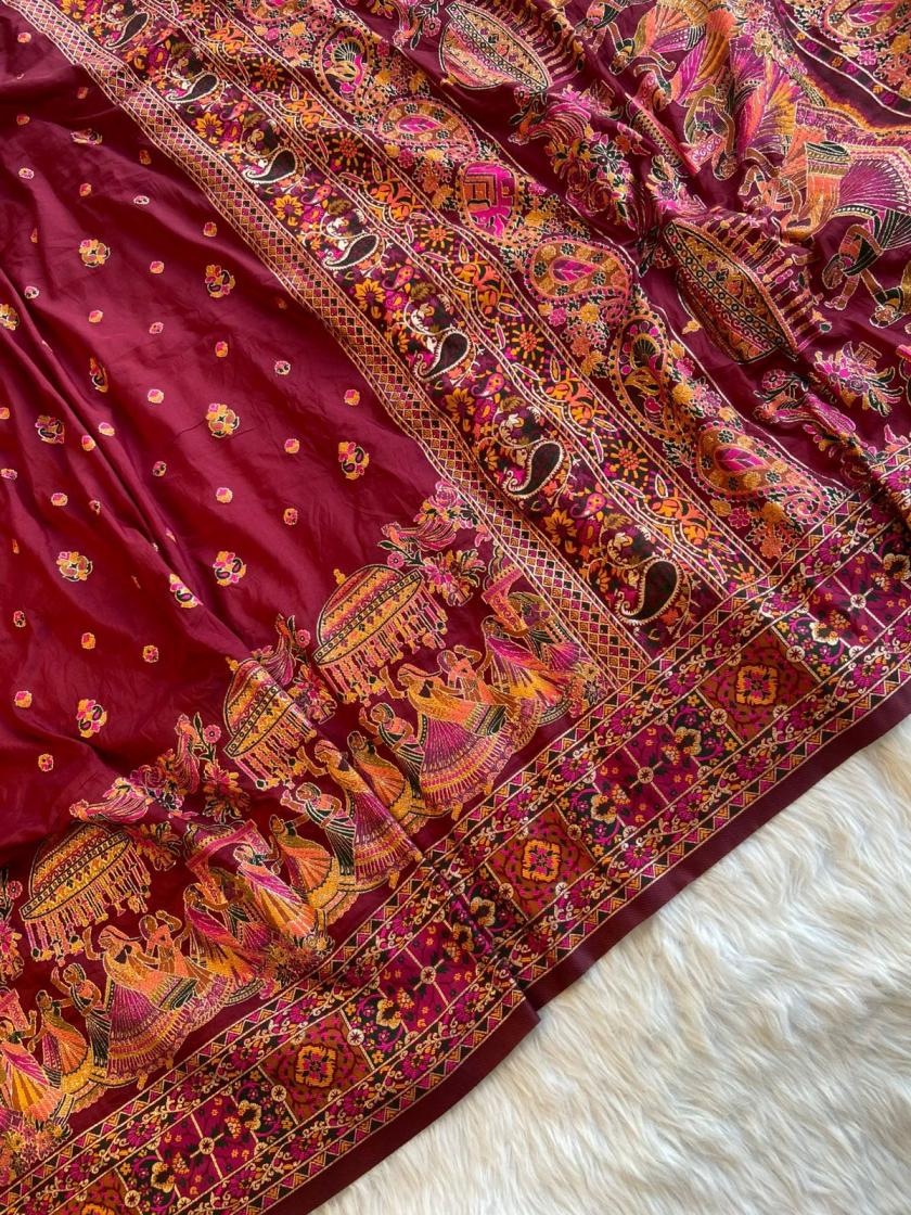 Looking for KC 320 PARTY WEAR SOFT RAJWADI PASHMINA SILK WEAVING SAREE Full Catalouge at Best Price? Buy Now KC 320 PARTY WEAR SOFT RAJWADI PASHMINA SILK WEAVING SAREE at Wholesale Rate of Rs 11094 with Total 6 Pcs from authroized dealer and supplier of P R Clothing Brand. Cost of Each piece is just only Rs 1849 which is very low and affordable price to resale the product in your retail store. rrgandhi is Surat based Wholesale Supplier & Dealer of P R Clothing Brand. Click on Brand name to Know more about Brand's products.