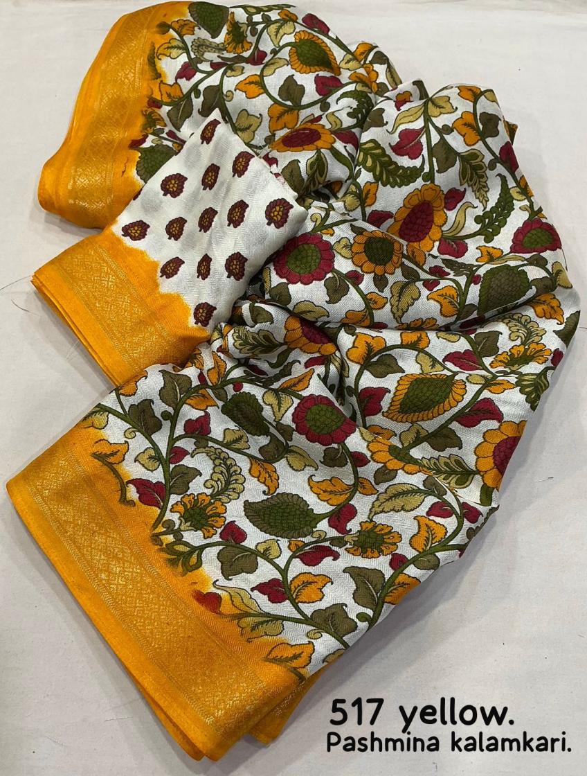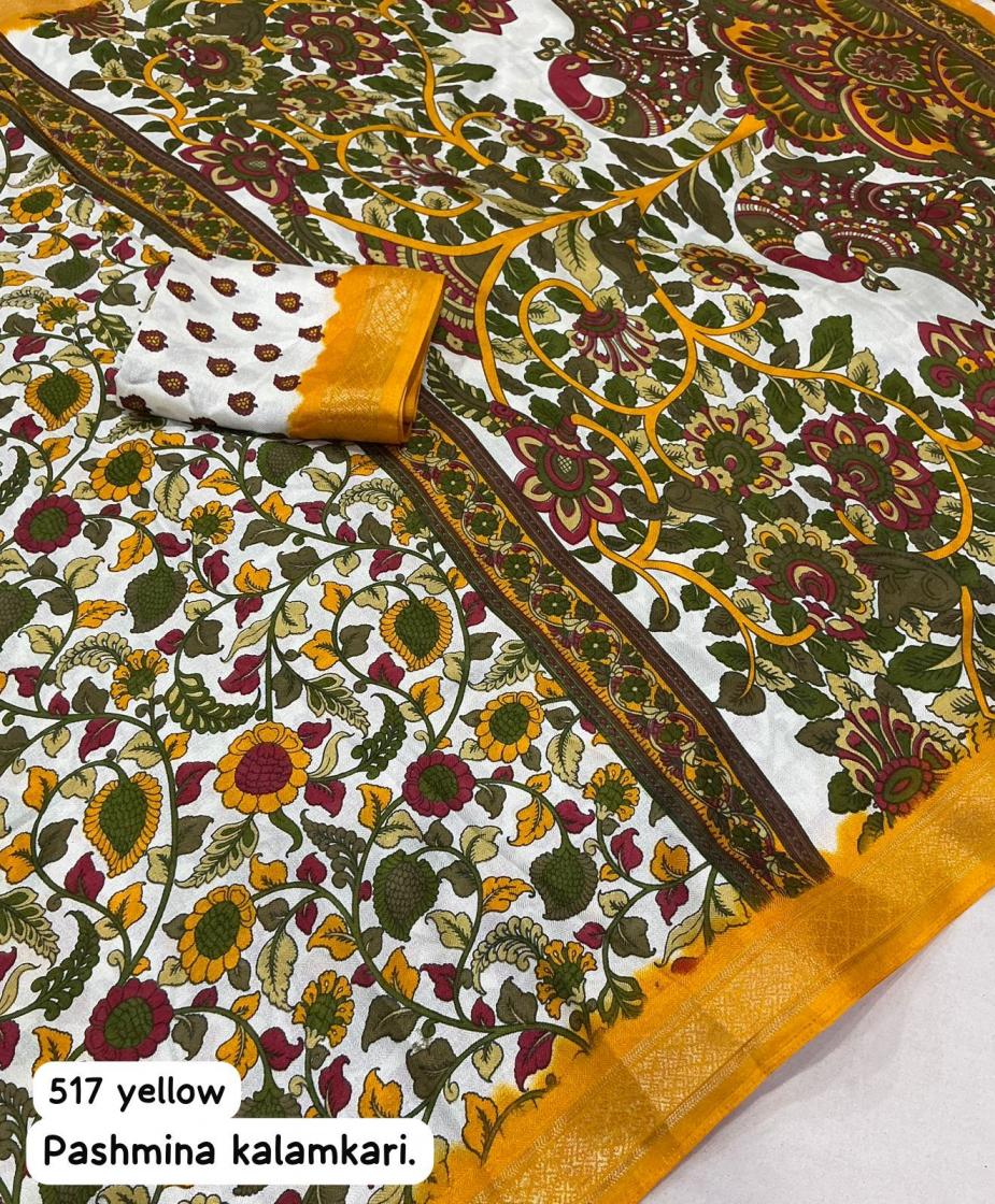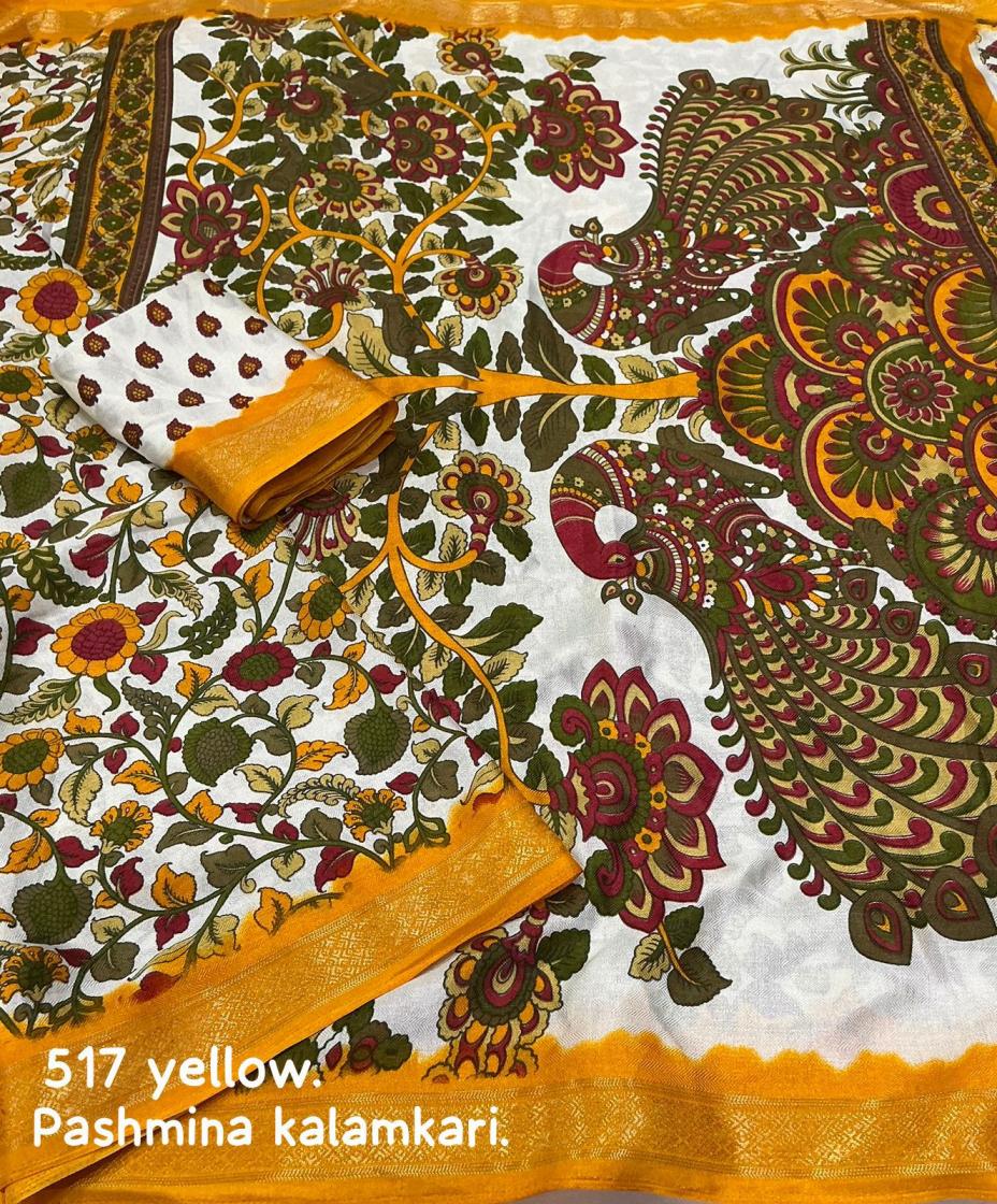 Looking for KC 517 PASHMINA KALAMKARI STYLISH COTTON CRAPE SAREES Full Catalouge at Best Price? Buy Now KC 517 PASHMINA KALAMKARI STYLISH COTTON CRAPE SAREES at Wholesale Rate of Rs 1100 with Total 2 Pcs from authroized dealer and supplier of P R Clothing Brand. Cost of Each piece is just only Rs 550 which is very low and affordable price to resale the product in your retail store. rrgandhi is Surat based Wholesale Supplier & Dealer of P R Clothing Brand. Click on Brand name to Know more about Brand's products.