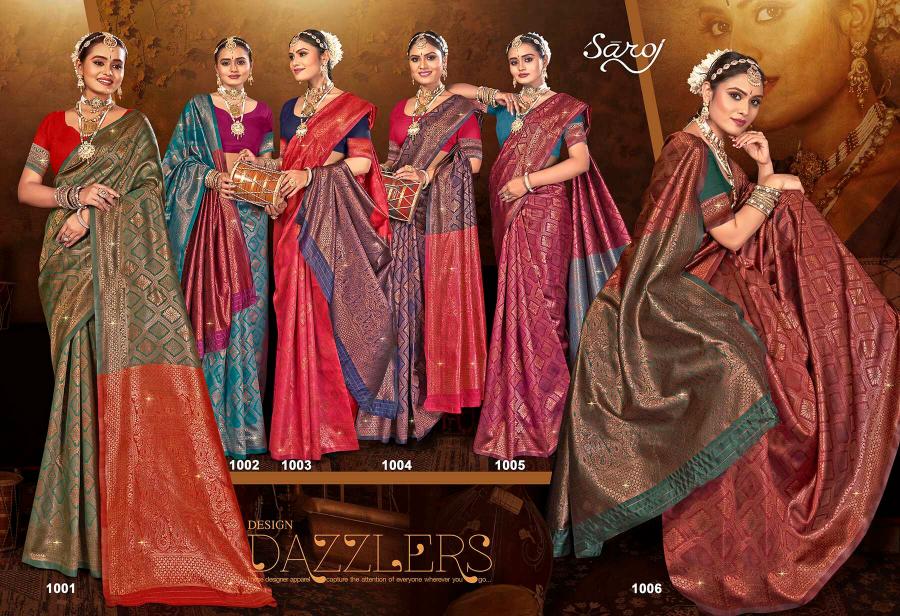 Looking for Khazana silk Saroj vol.3 Soft silk contrast rich pallu saree Full Catalouge at Best Price? Buy Now Khazana silk Saroj vol.3 Soft silk contrast rich pallu saree at Wholesale Rate of Rs 2250 with Total 6 Pcs from authroized dealer and supplier of Saroj Textiles Brand. Cost of Each piece is just only Rs 375 which is very low and affordable price to resale the product in your retail store. rrgandhi is Surat based Wholesale Supplier & Dealer of Saroj Textiles Brand. Click on Brand name to Know more about Brand's products.
