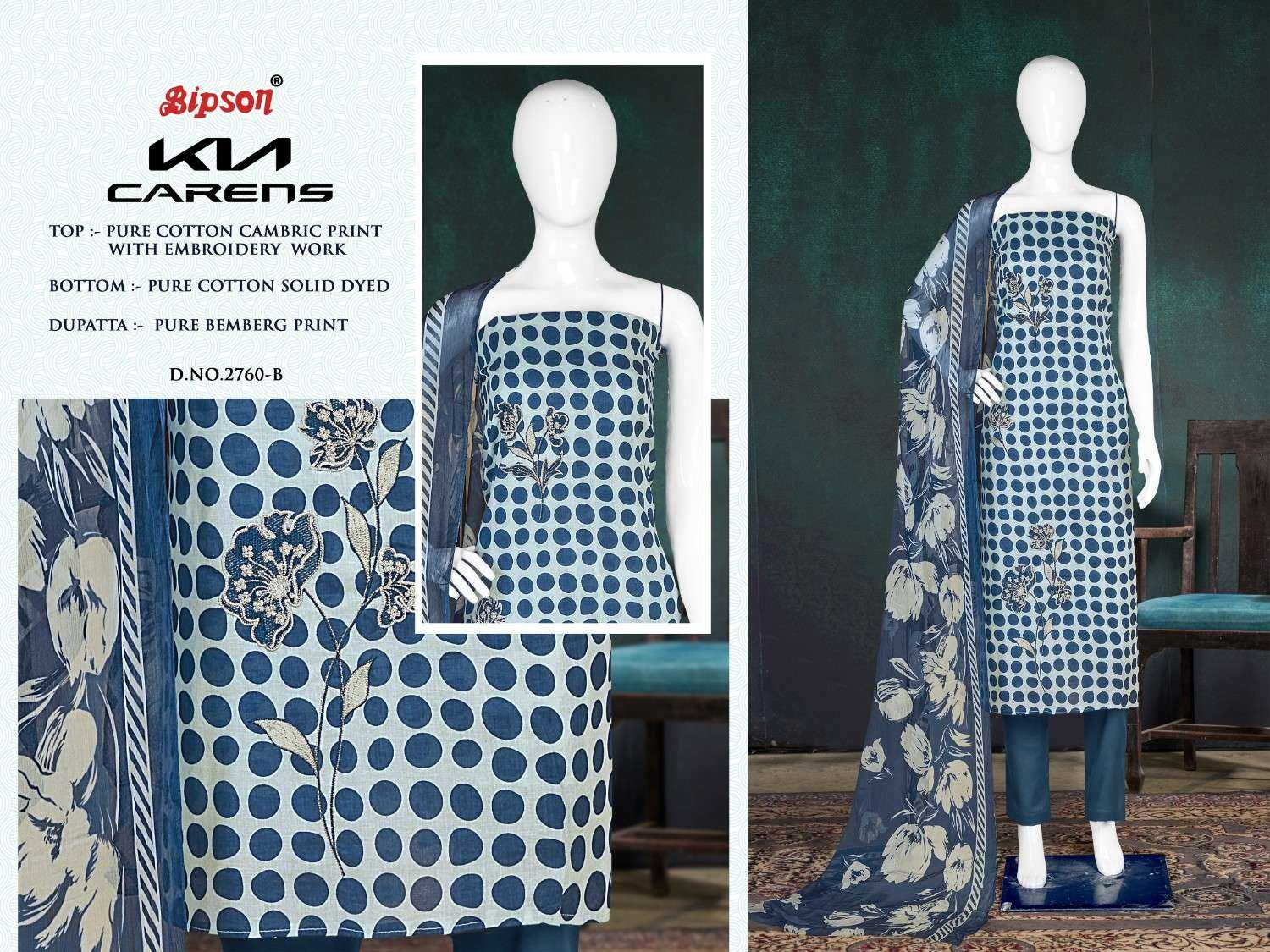 Looking for kia carens 2761 by bipson prints cotton print new trendy salwar suit material Full Catalouge at Best Price? Buy Now kia carens 2761 by bipson prints cotton print new trendy salwar suit material at Wholesale Rate of Rs 2900 with Total 4 Pcs from authroized dealer and supplier of Brand. Cost of Each piece is just only Rs 725 which is very low and affordable price to resale the product in your retail store. rrgandhi is Surat based Wholesale Supplier & Dealer of Brand. Click on Brand name to Know more about Brand's products.