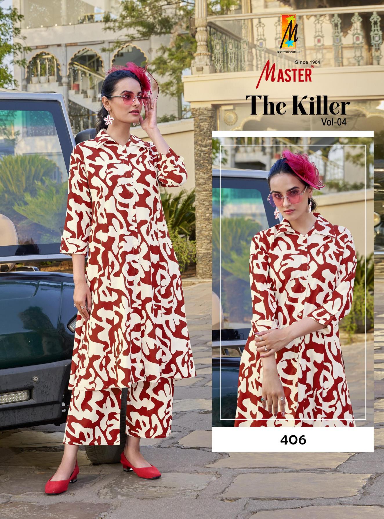 Looking for KILLER VOL 4 BY MASTER READYMADE RAYON A-LINE CO-ORD SETS Full Catalouge at Best Price? Buy Now KILLER VOL 4 BY MASTER READYMADE RAYON A-LINE CO-ORD SETS at Wholesale Rate of Rs 3680 with Total 8 Pcs from authroized dealer and supplier of Master Kurti Brand. Cost of Each piece is just only Rs 460 which is very low and affordable price to resale the product in your retail store. rrgandhi is Surat based Wholesale Supplier & Dealer of Master Kurti Brand. Click on Brand name to Know more about Brand's products.