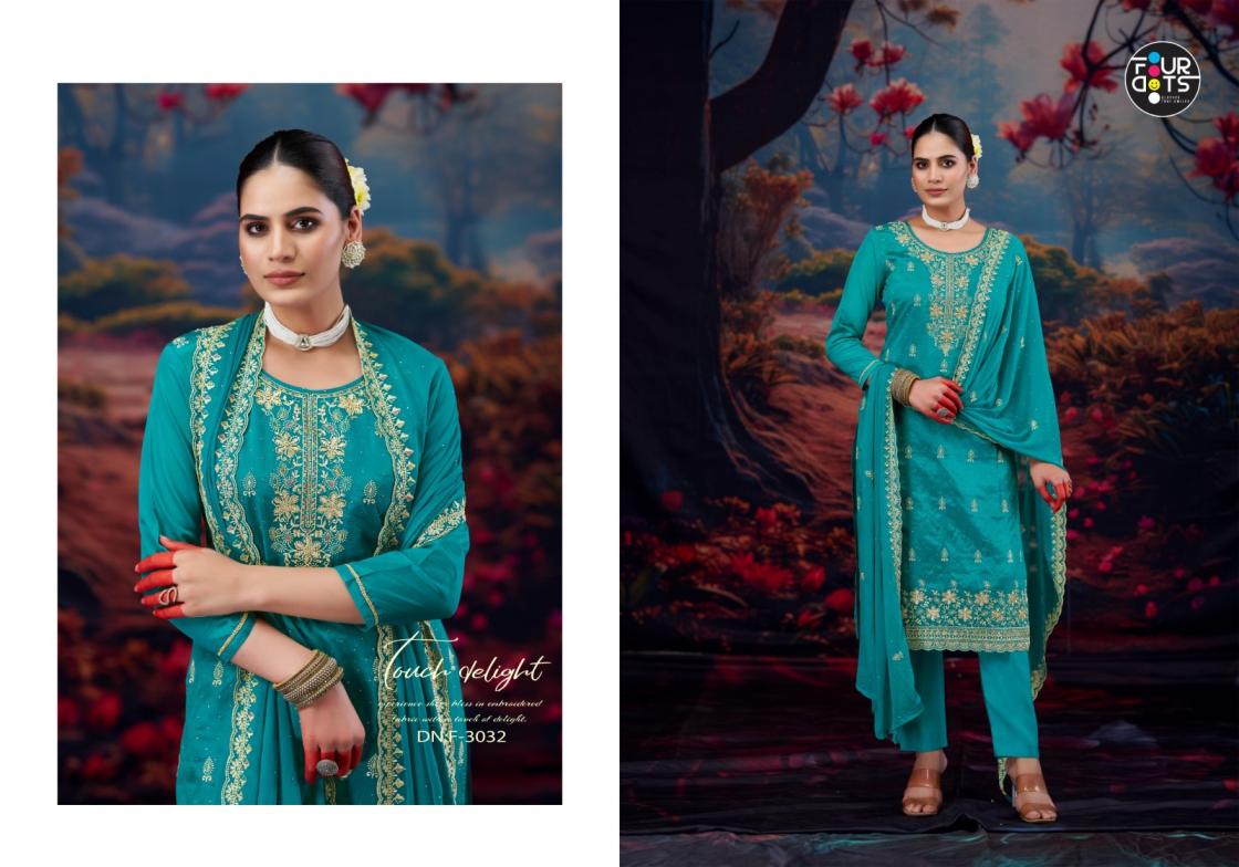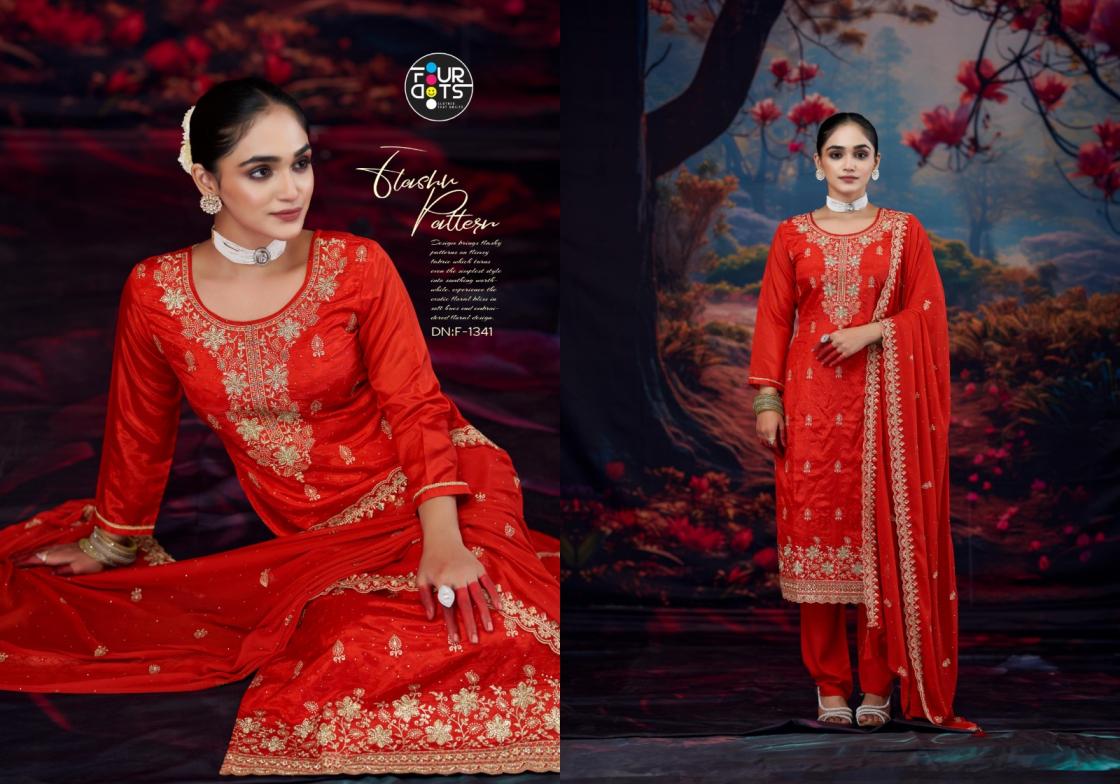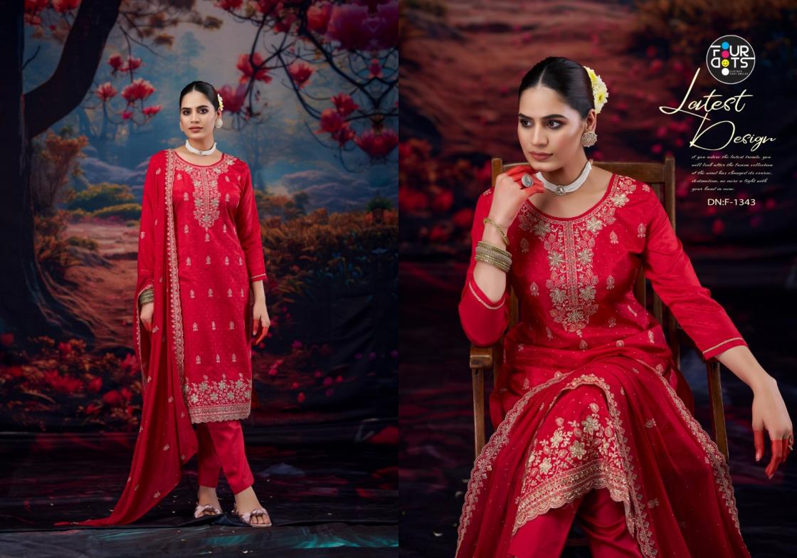 Looking for KIMAYA BY FOURSDOTS ORGANZA 3PCS FESTIVE WEAR SUITS Full Catalouge at Best Price? Buy Now KIMAYA BY FOURSDOTS ORGANZA 3PCS FESTIVE WEAR SUITS at Wholesale Rate of Rs 4596 with Total 4 Pcs from authroized dealer and supplier of Fourdots Brand. Cost of Each piece is just only Rs 1149 which is very low and affordable price to resale the product in your retail store. rrgandhi is Surat based Wholesale Supplier & Dealer of Fourdots Brand. Click on Brand name to Know more about Brand's products.
