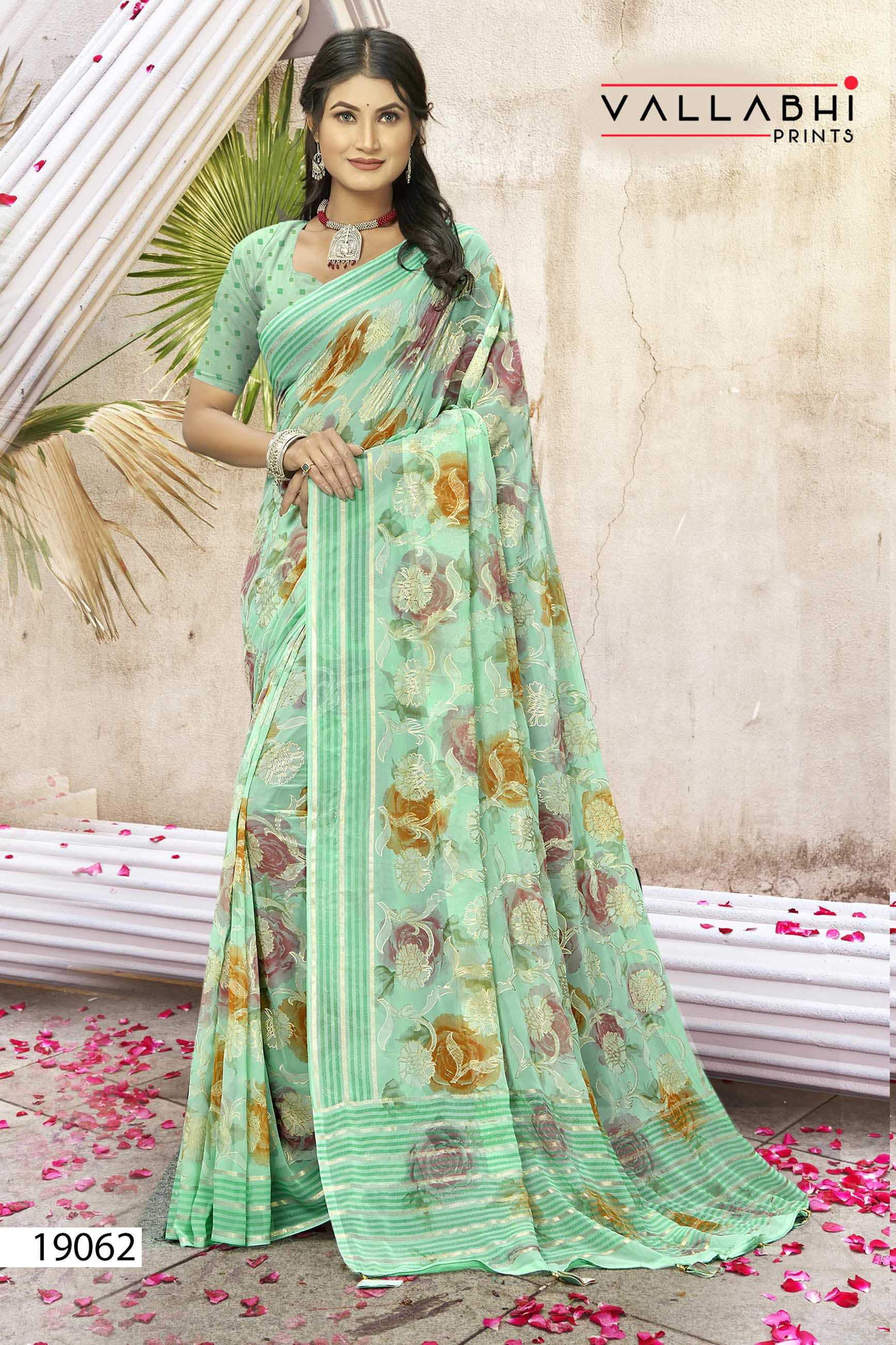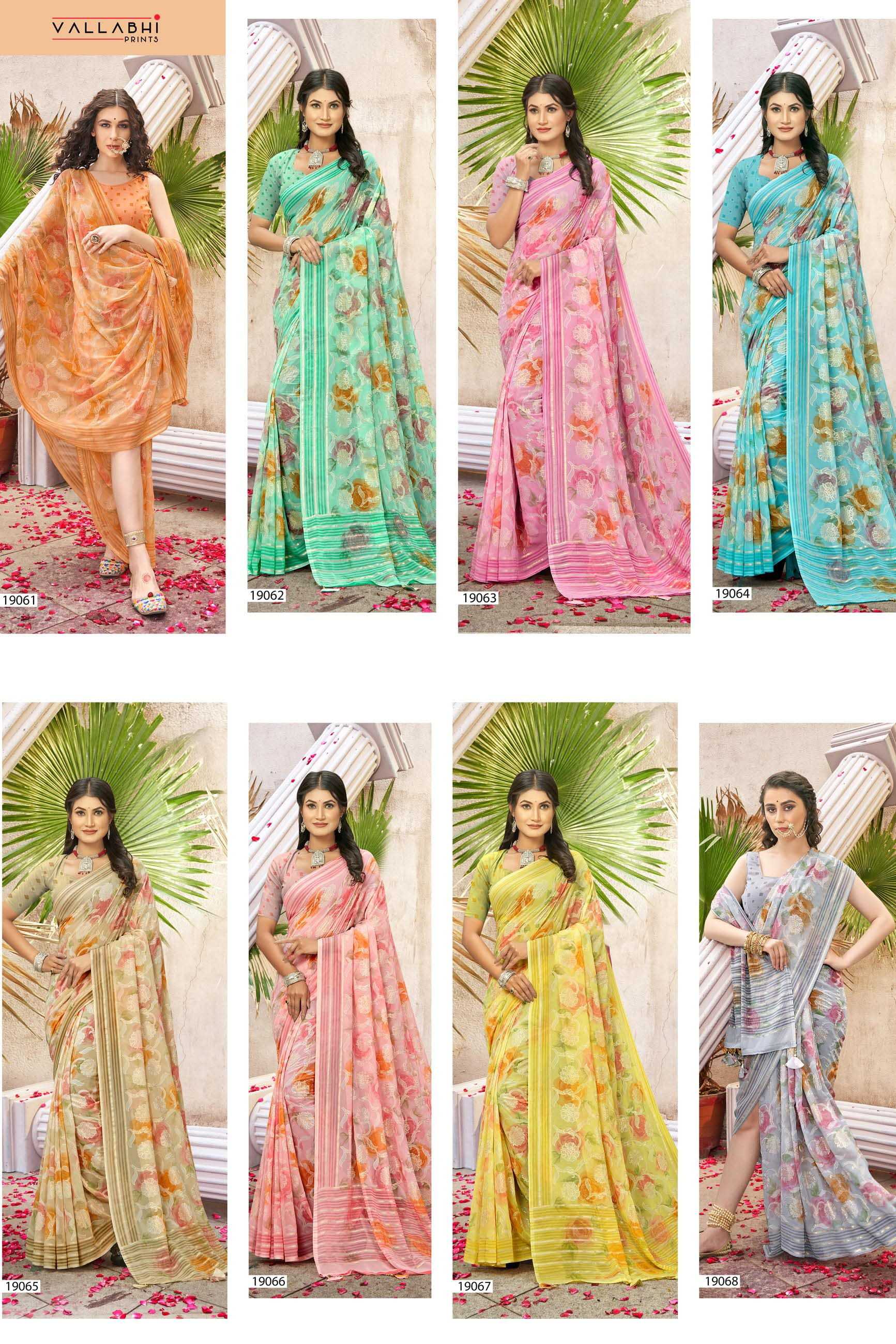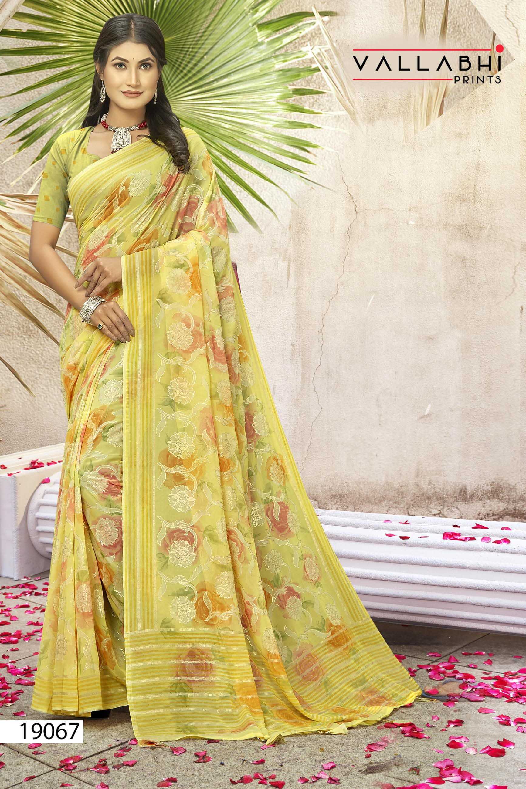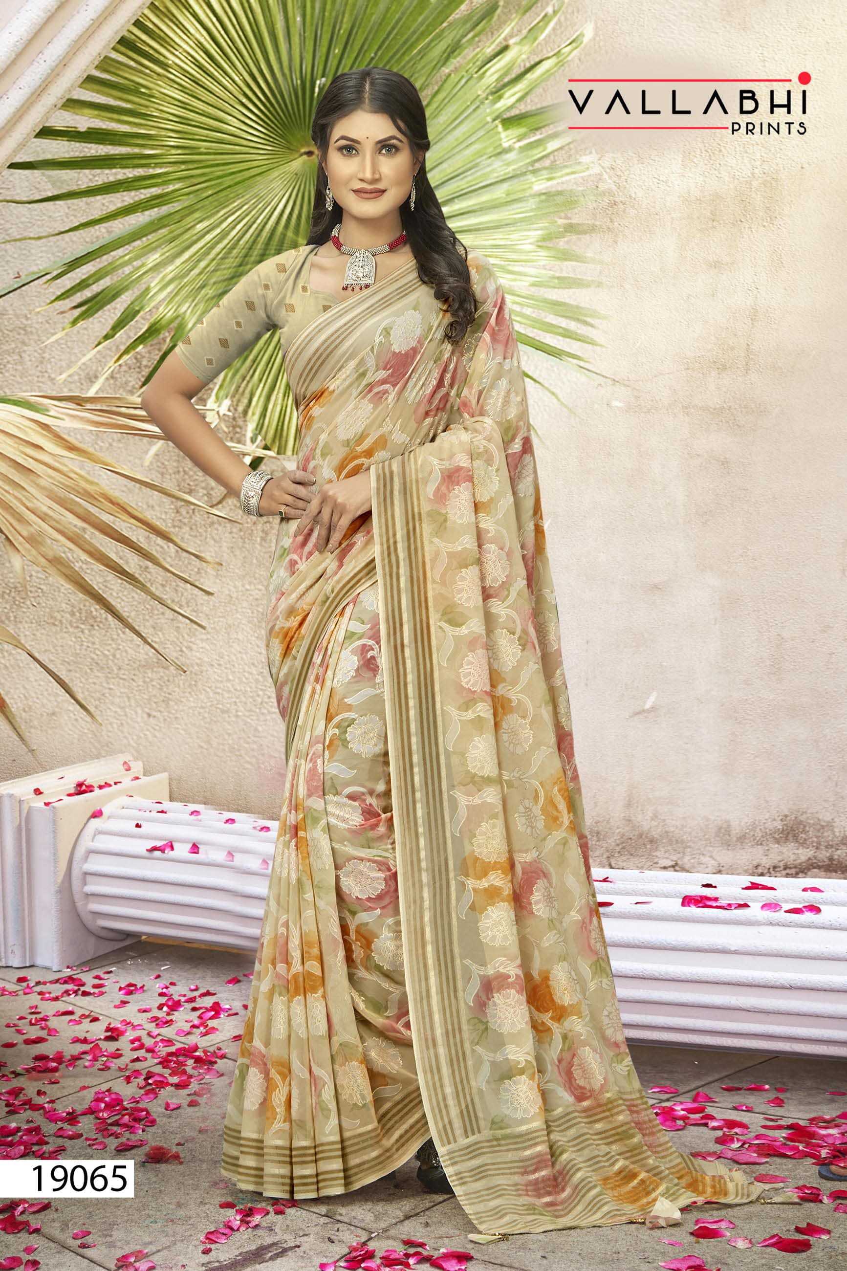 Looking for kimora by vallabhi prints georgette casual wear saree with blouse Full Catalouge at Best Price? Buy Now kimora by vallabhi prints georgette casual wear saree with blouse at Wholesale Rate of Rs 5520 with Total 8 Pcs from authroized dealer and supplier of Vallabhi Prints Brand. Cost of Each piece is just only Rs 690 which is very low and affordable price to resale the product in your retail store. rrgandhi is Surat based Wholesale Supplier & Dealer of Vallabhi Prints Brand. Click on Brand name to Know more about Brand's products.