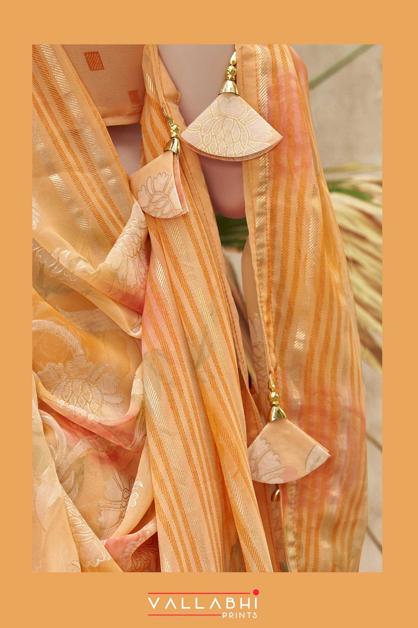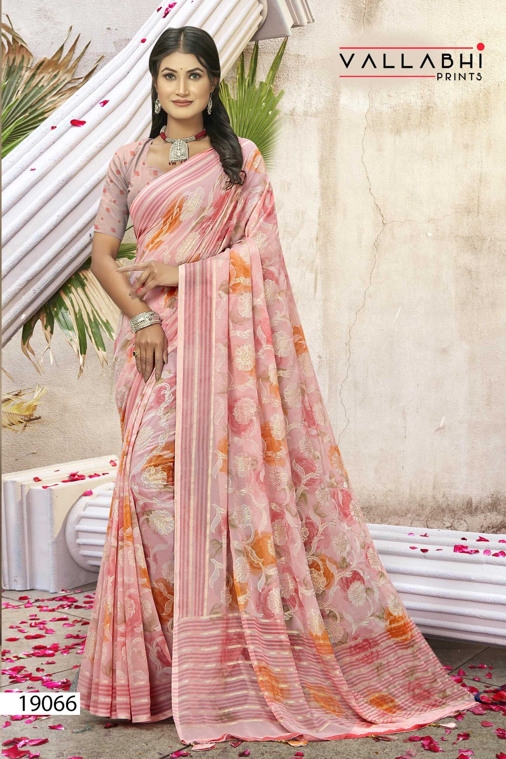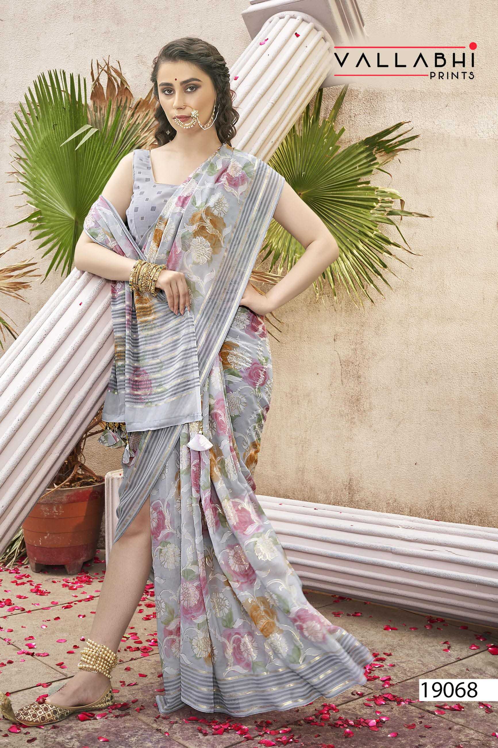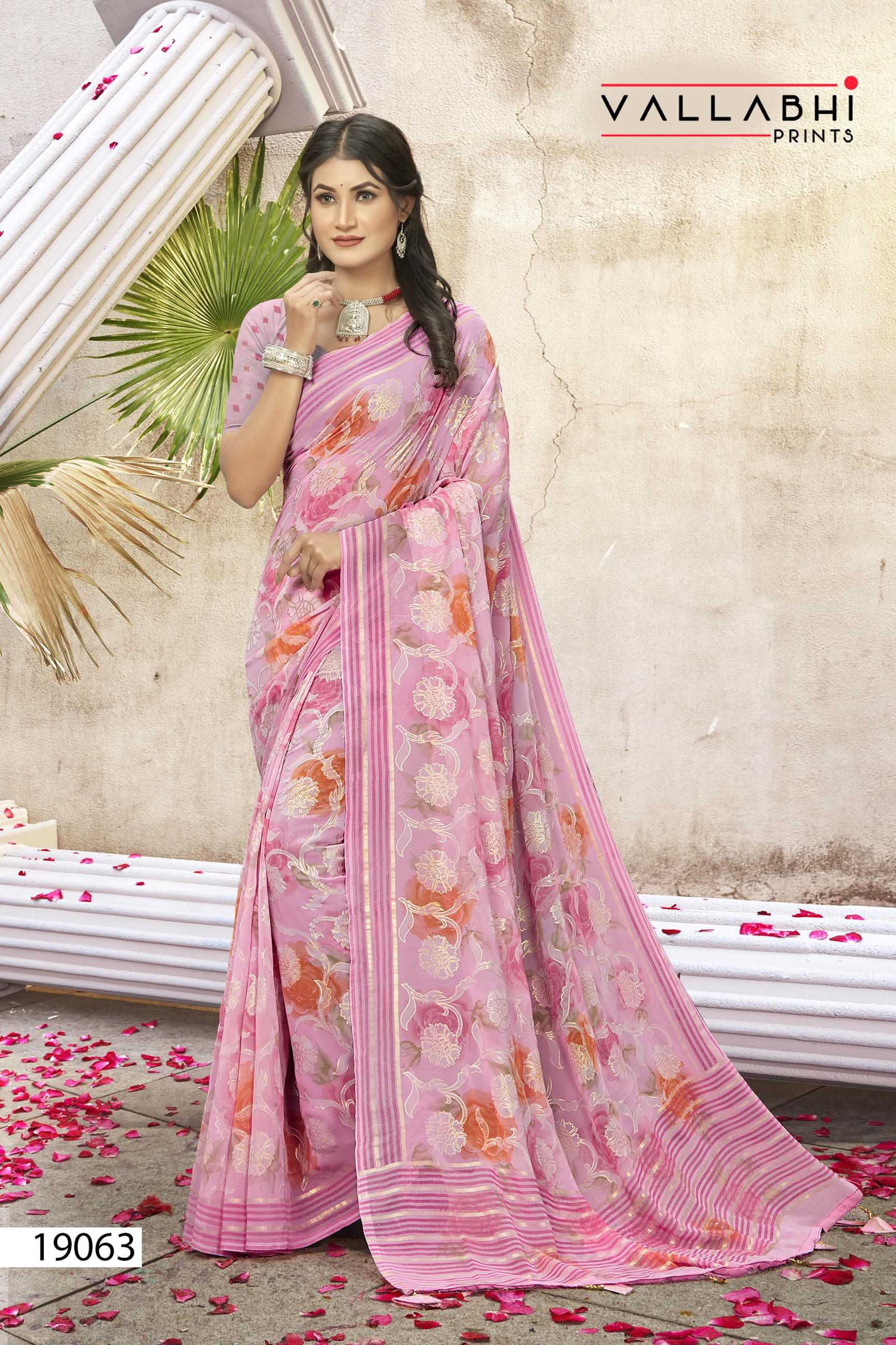 Looking for kimora by vallabhi prints georgette casual wear saree with blouse Full Catalouge at Best Price? Buy Now kimora by vallabhi prints georgette casual wear saree with blouse at Wholesale Rate of Rs 5520 with Total 8 Pcs from authroized dealer and supplier of Vallabhi Prints Brand. Cost of Each piece is just only Rs 690 which is very low and affordable price to resale the product in your retail store. rrgandhi is Surat based Wholesale Supplier & Dealer of Vallabhi Prints Brand. Click on Brand name to Know more about Brand's products.