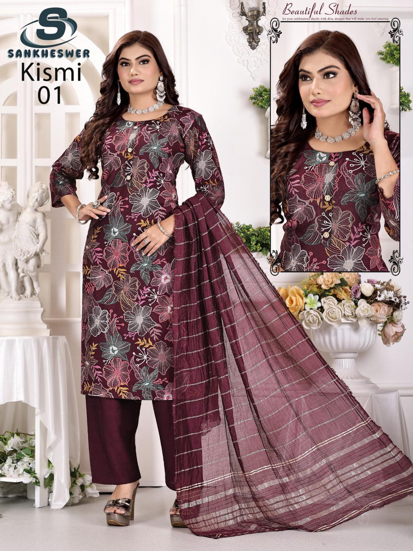 Looking for KISMI VOL 1 BY SANKHESWER FULLY STITCH VERTICAN PRINT COMBO 3PCS DRESS Full Catalouge at Best Price? Buy Now KISMI VOL 1 BY SANKHESWER FULLY STITCH VERTICAN PRINT COMBO 3PCS DRESS at Wholesale Rate of Rs 26000 with Total 50 Pcs from authroized dealer and supplier of Sankheswer Brand. Cost of Each piece is just only Rs 520 which is very low and affordable price to resale the product in your retail store. rrgandhi is Surat based Wholesale Supplier & Dealer of Sankheswer Brand. Click on Brand name to Know more about Brand's products.