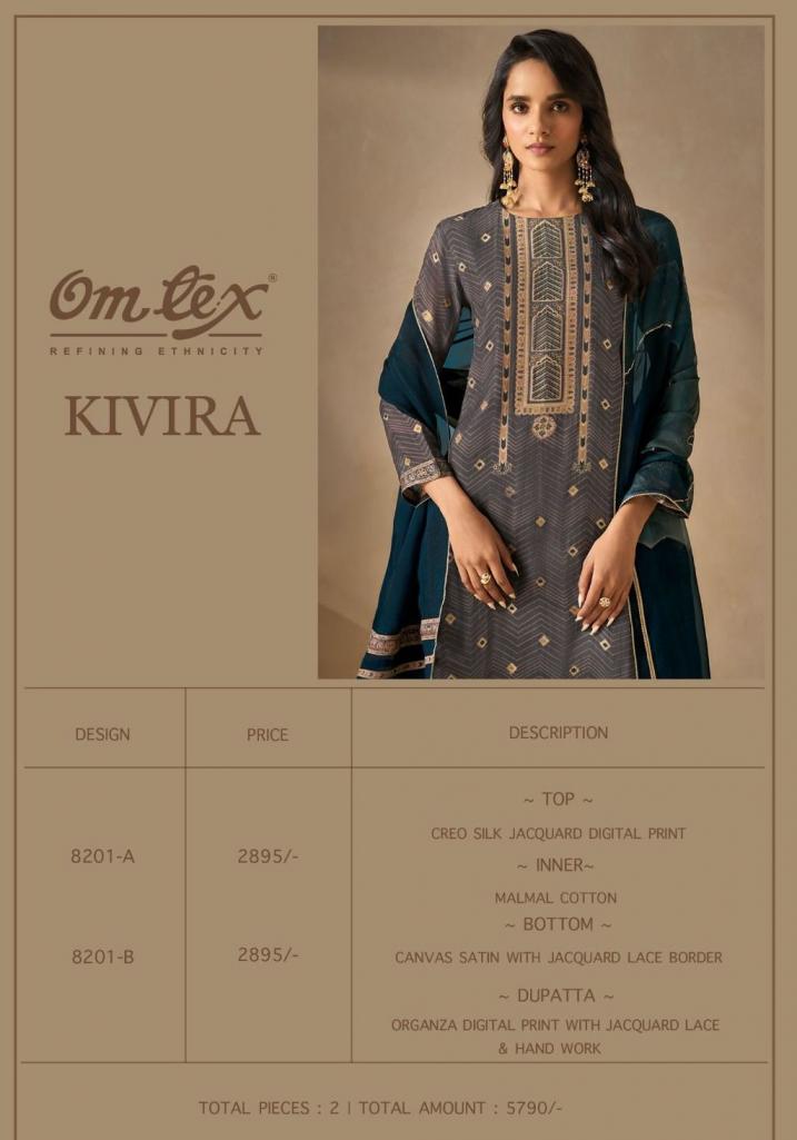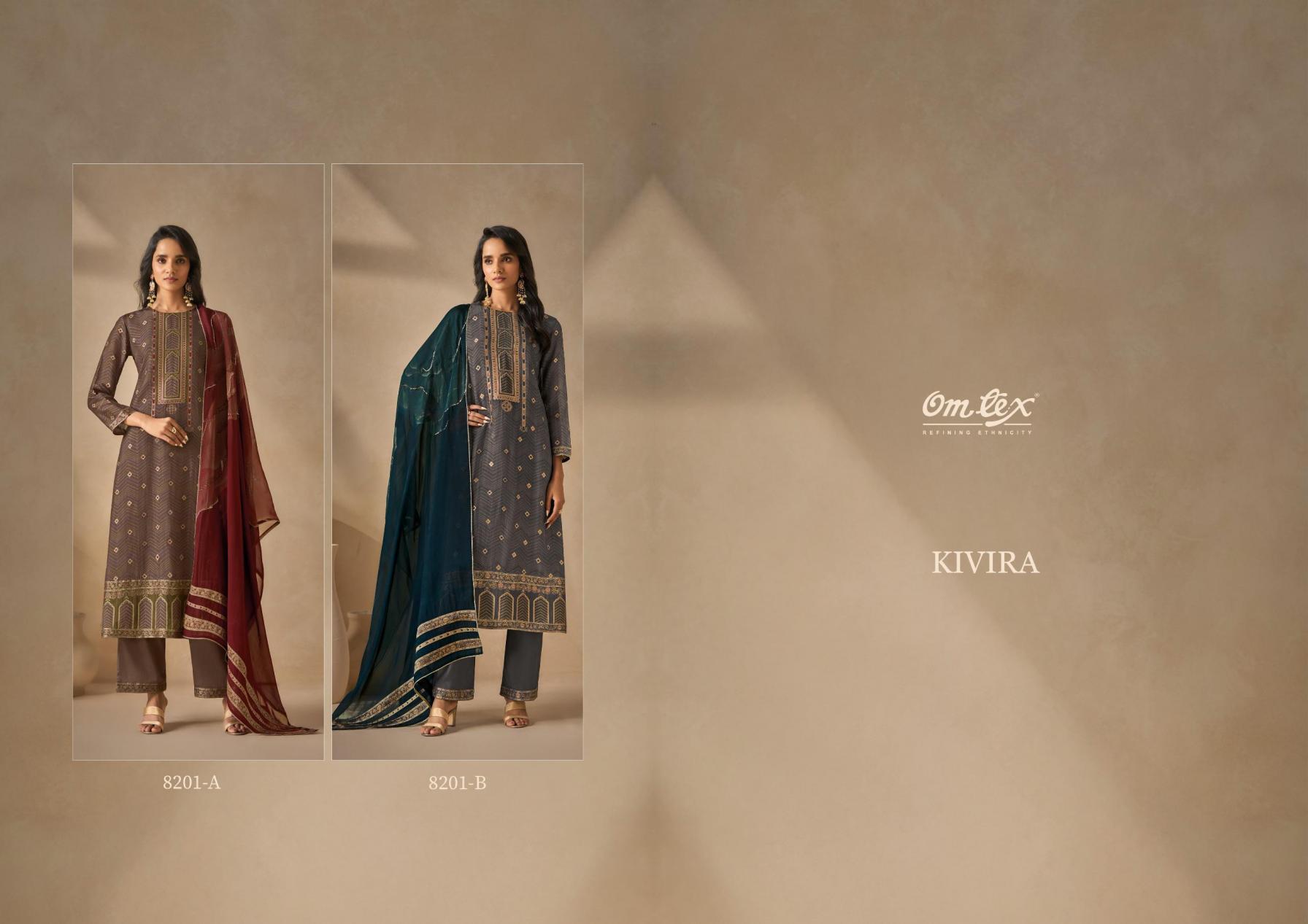 Looking for KIVIRA BY OMTEX CREO SILK JACQUARD ELEGANT STYLE SUITS Full Catalouge at Best Price? Buy Now KIVIRA BY OMTEX CREO SILK JACQUARD ELEGANT STYLE SUITS at Wholesale Rate of Rs 5790 with Total 2 Pcs from authroized dealer and supplier of Om Tex Brand. Cost of Each piece is just only Rs 2895 which is very low and affordable price to resale the product in your retail store. rrgandhi is Surat based Wholesale Supplier & Dealer of Om Tex Brand. Click on Brand name to Know more about Brand's products.