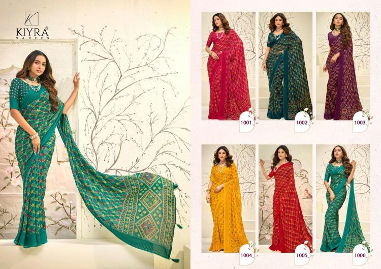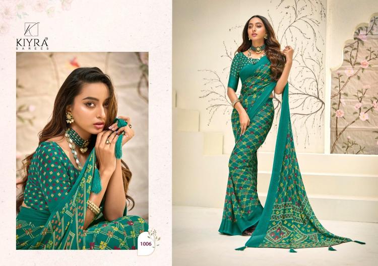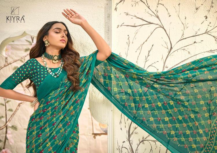 Looking for kiyra ishaa vol 1 1001-1006 beautiful prints dull moss saree wholesaler Full Catalouge at Best Price? Buy Now kiyra ishaa vol 1 1001-1006 beautiful prints dull moss saree wholesaler at Wholesale Rate of Rs 3750 with Total 6 Pcs from authroized dealer and supplier of Kiyra Sarees Brand. Cost of Each piece is just only Rs 625 which is very low and affordable price to resale the product in your retail store. rrgandhi is Surat based Wholesale Supplier & Dealer of Kiyra Sarees Brand. Click on Brand name to Know more about Brand's products.