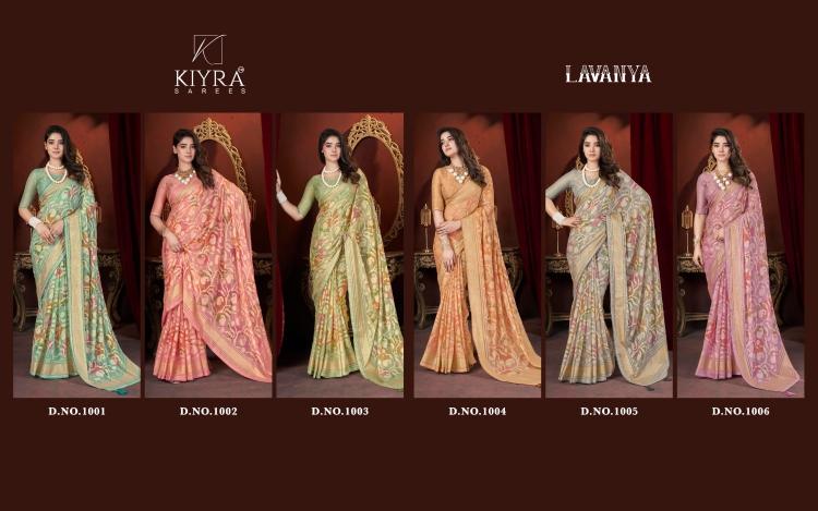 Looking for kiyra lavanya chiffon brasso unique colours sarees Full Catalouge at Best Price? Buy Now kiyra lavanya chiffon brasso unique colours sarees at Wholesale Rate of Rs 2265 with Total 3 Pcs from authroized dealer and supplier of Kiyra Sarees Brand. Cost of Each piece is just only Rs 755 which is very low and affordable price to resale the product in your retail store. rrgandhi is Surat based Wholesale Supplier & Dealer of Kiyra Sarees Brand. Click on Brand name to Know more about Brand's products.