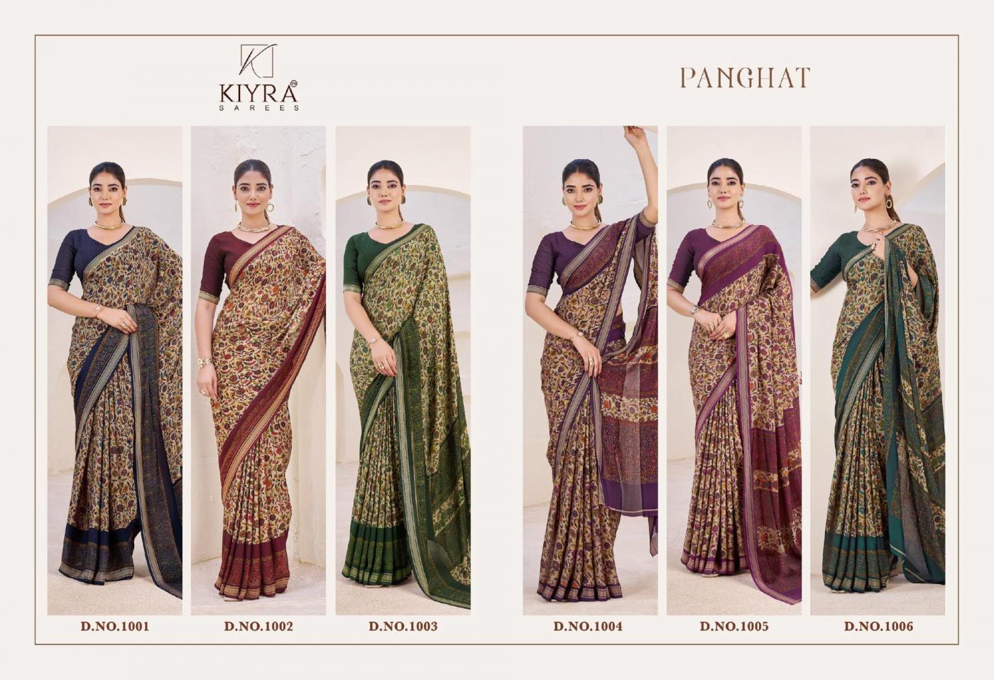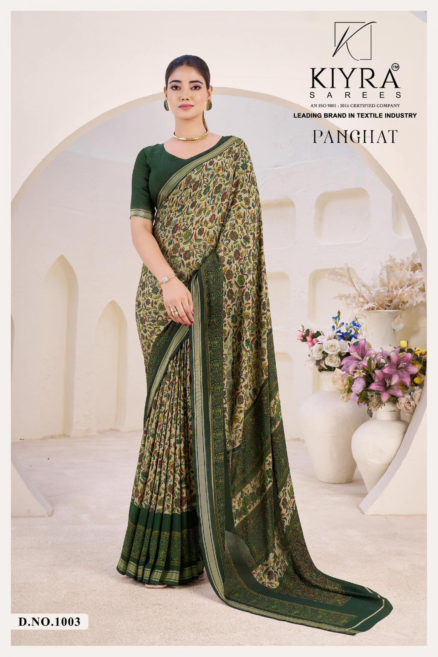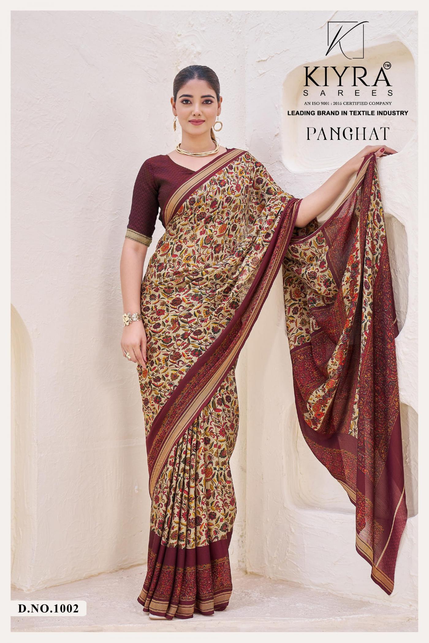 Looking for KIYRA PANGHAT VOL 1 VENILLA SILK HIT DESIGN SAREES Full Catalouge at Best Price? Buy Now KIYRA PANGHAT VOL 1 VENILLA SILK HIT DESIGN SAREES at Wholesale Rate of Rs 4470 with Total 6 Pcs from authroized dealer and supplier of Kiyra Sarees Brand. Cost of Each piece is just only Rs 745 which is very low and affordable price to resale the product in your retail store. rrgandhi is Surat based Wholesale Supplier & Dealer of Kiyra Sarees Brand. Click on Brand name to Know more about Brand's products.