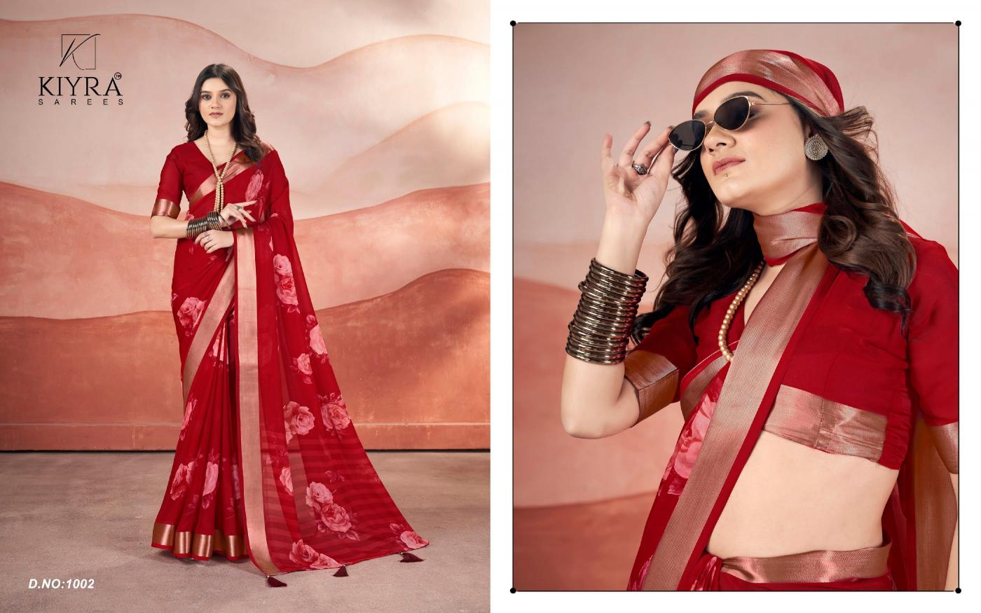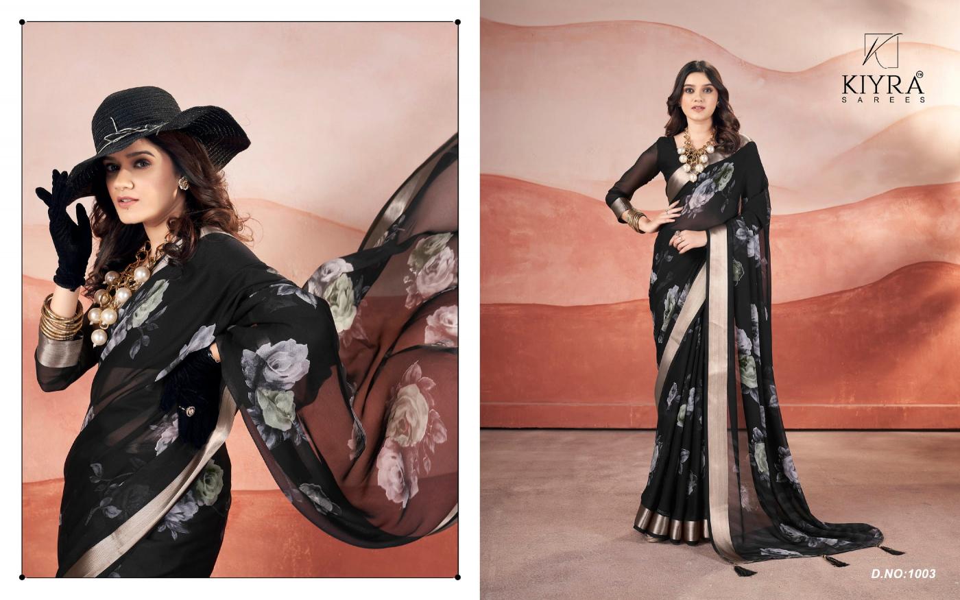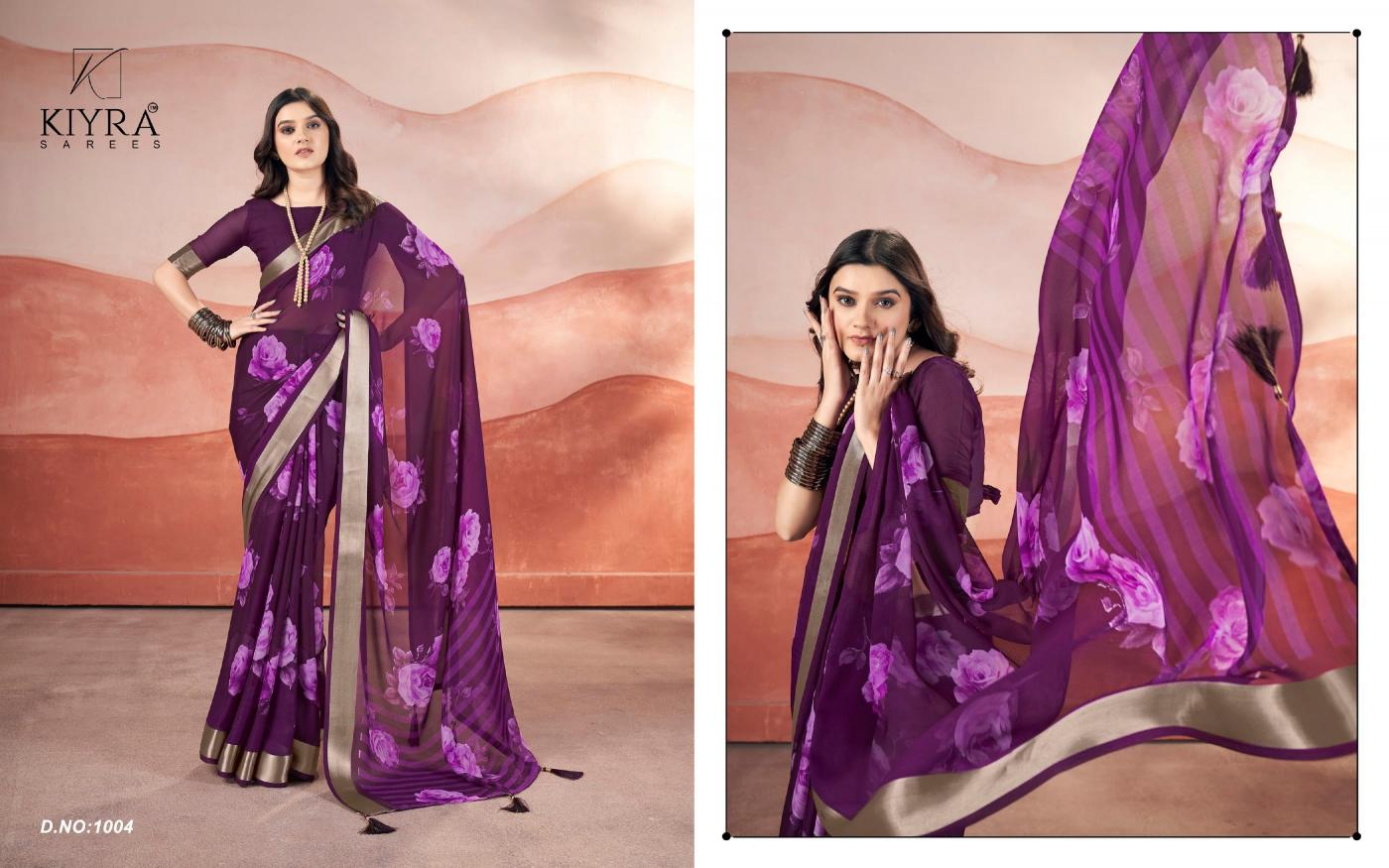 Looking for kiyra presents aarika vol 1 dull moss fancy saree collection Full Catalouge at Best Price? Buy Now kiyra presents aarika vol 1 dull moss fancy saree collection at Wholesale Rate of Rs 3570 with Total 6 Pcs from authroized dealer and supplier of Kiyra Sarees Brand. Cost of Each piece is just only Rs 595 which is very low and affordable price to resale the product in your retail store. rrgandhi is Surat based Wholesale Supplier & Dealer of Kiyra Sarees Brand. Click on Brand name to Know more about Brand's products.