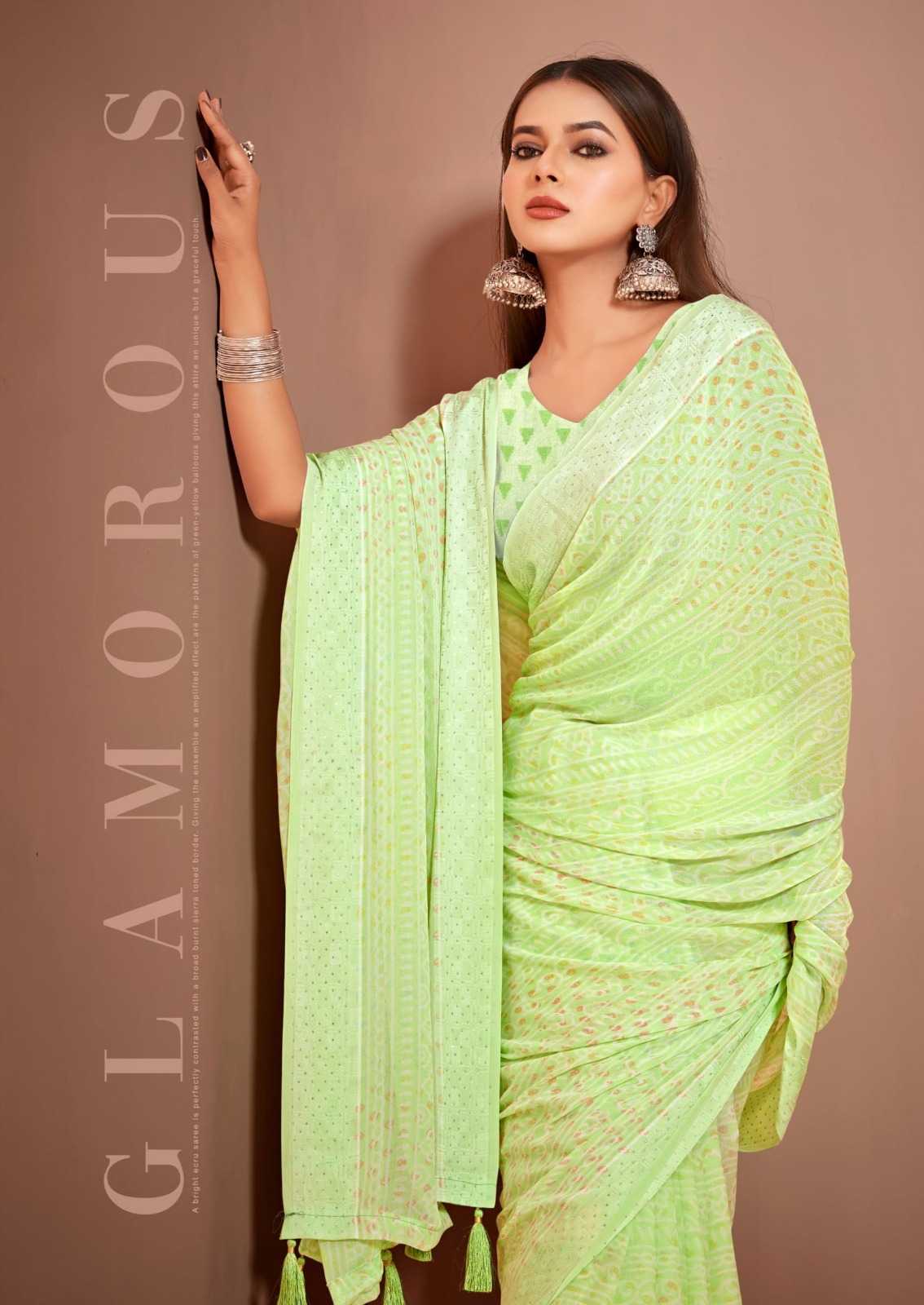 Looking for kiyra saree jenny beautiful dull moss fancy saree with blouse Full Catalouge at Best Price? Buy Now kiyra saree jenny beautiful dull moss fancy saree with blouse at Wholesale Rate of Rs 4590 with Total 6 Pcs from authroized dealer and supplier of Brand. Cost of Each piece is just only Rs 765 which is very low and affordable price to resale the product in your retail store. rrgandhi is Surat based Wholesale Supplier & Dealer of Brand. Click on Brand name to Know more about Brand's products.
