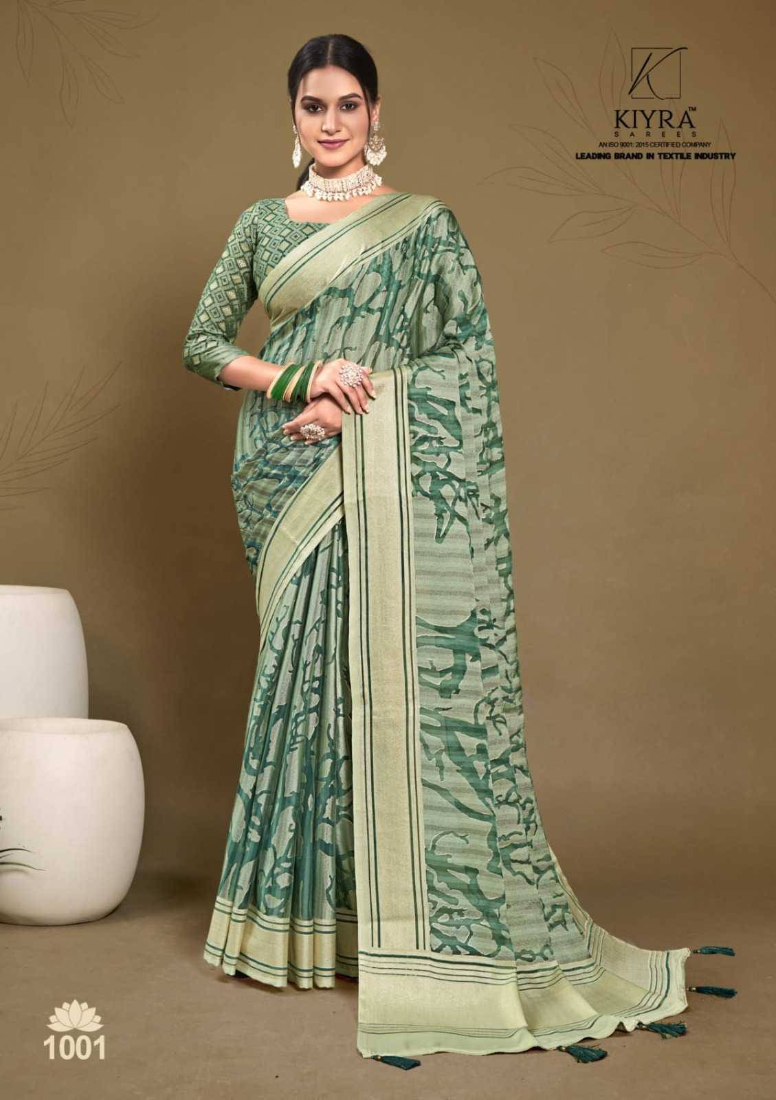 Looking for kiyra sarees aarzoo foil printed colourfull saree with blouse Full Catalouge at Best Price? Buy Now kiyra sarees aarzoo foil printed colourfull saree with blouse at Wholesale Rate of Rs 4650 with Total 6 Pcs from authroized dealer and supplier of Brand. Cost of Each piece is just only Rs 775 which is very low and affordable price to resale the product in your retail store. rrgandhi is Surat based Wholesale Supplier & Dealer of Brand. Click on Brand name to Know more about Brand's products.