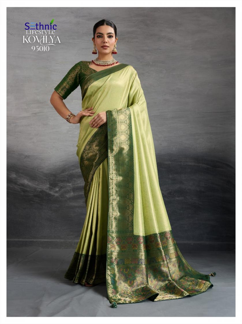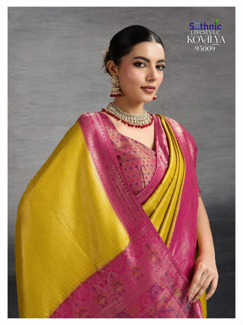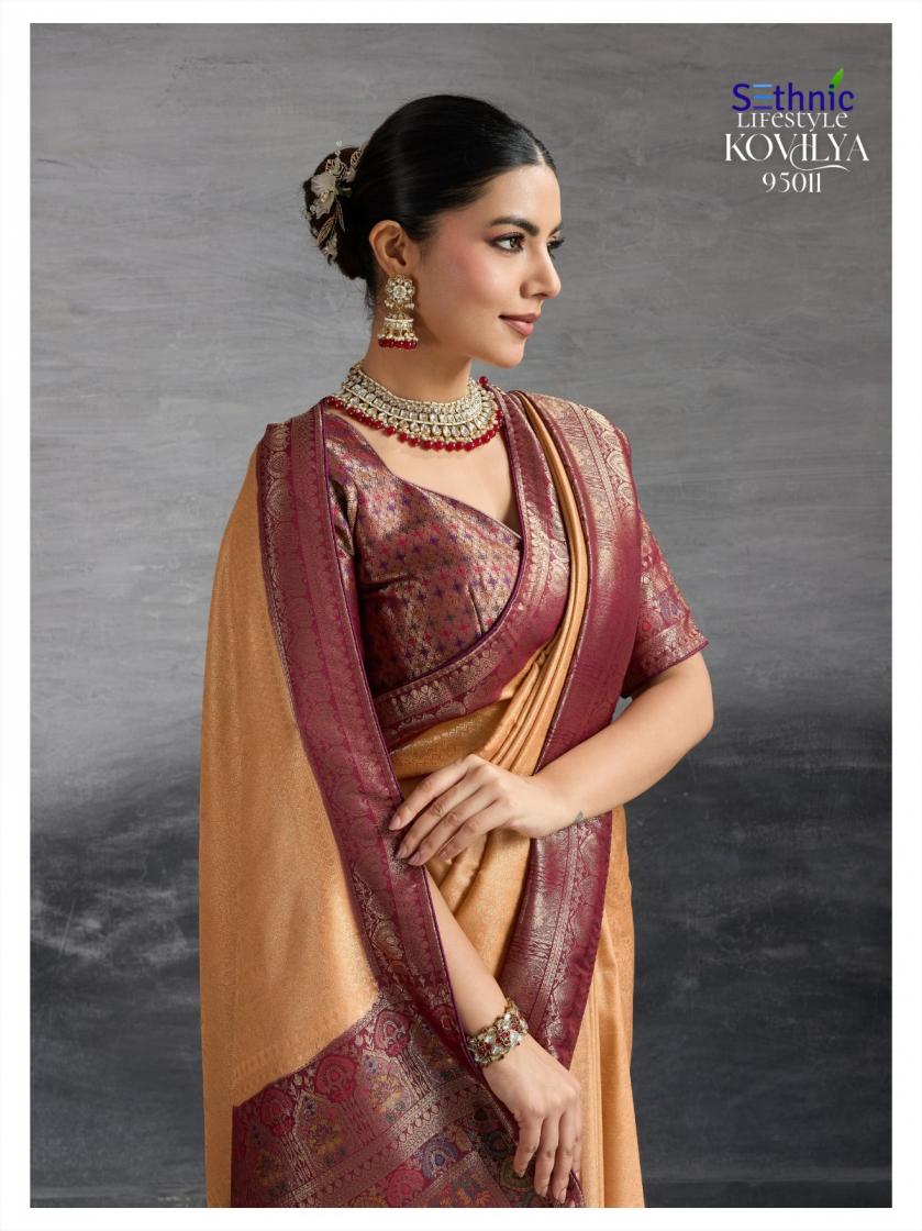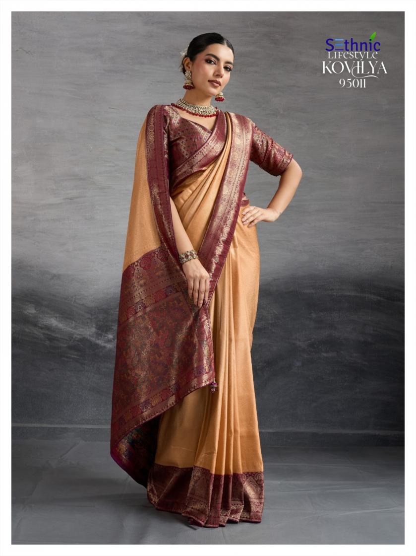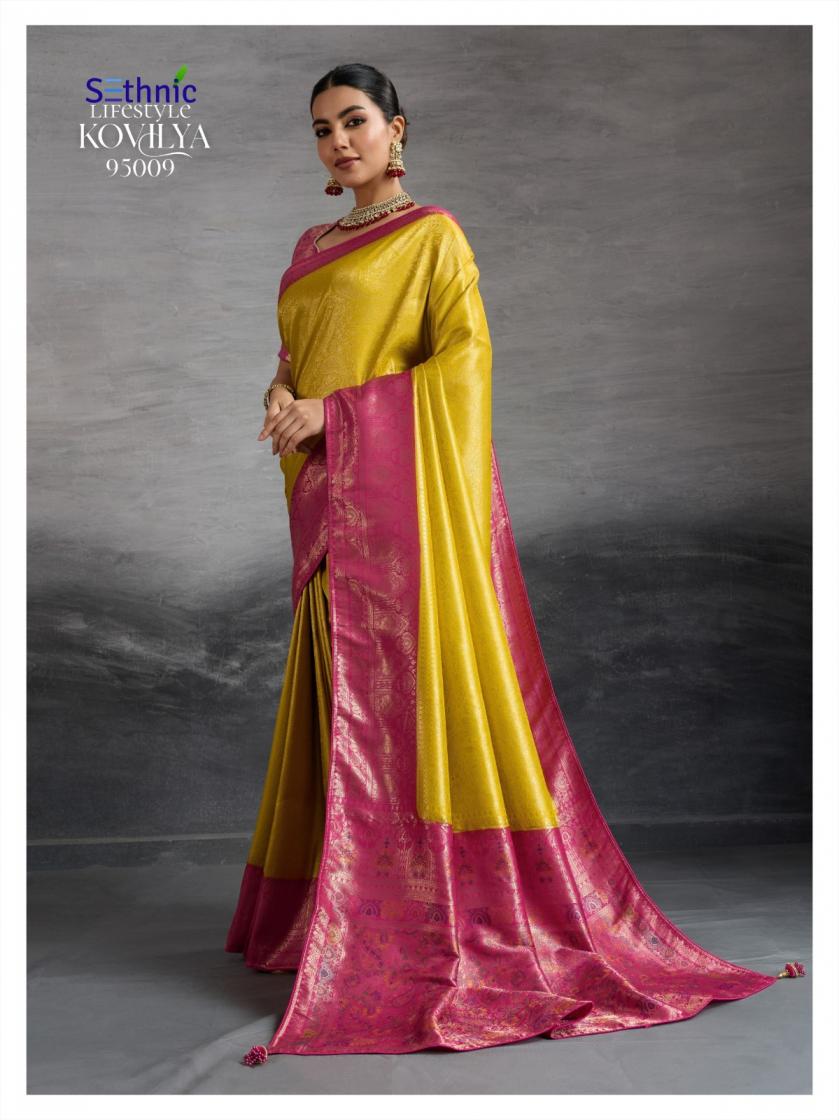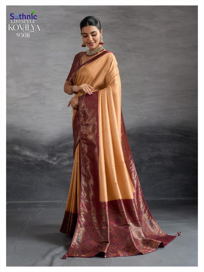 Looking for KOVILYA VOL 3 BY SETHNIC LIFESTYLE UNIQUE KANJIVARAM SILK SAREE ONLINE Full Catalouge at Best Price? Buy Now KOVILYA VOL 3 BY SETHNIC LIFESTYLE UNIQUE KANJIVARAM SILK SAREE ONLINE at Wholesale Rate of Rs 6380 with Total 4 Pcs from authroized dealer and supplier of Sethnic Lifestyle Brand. Cost of Each piece is just only Rs 1595 which is very low and affordable price to resale the product in your retail store. rrgandhi is Surat based Wholesale Supplier & Dealer of Sethnic Lifestyle Brand. Click on Brand name to Know more about Brand's products.