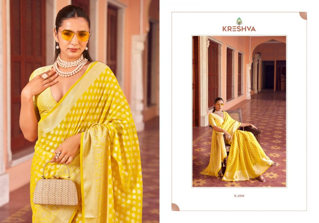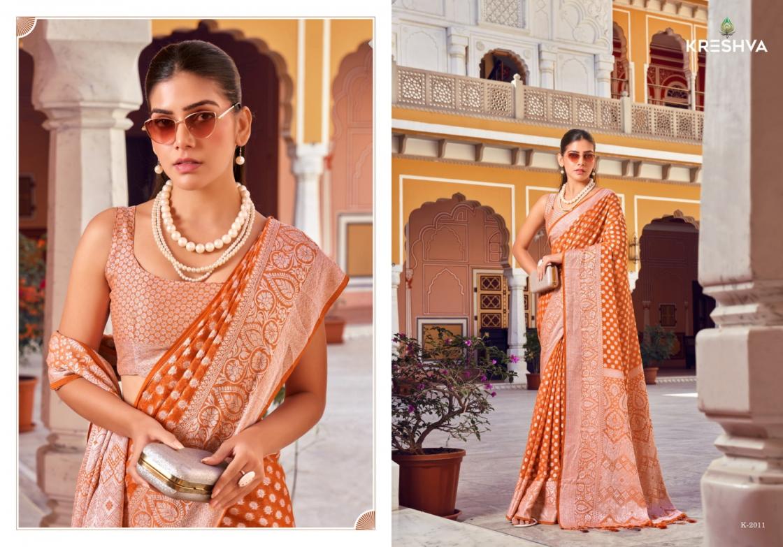 Looking for KRESHVA VARIMA PRETTY LOOK GEORGETTE SAREES EXPORTS Full Catalouge at Best Price? Buy Now KRESHVA VARIMA PRETTY LOOK GEORGETTE SAREES EXPORTS at Wholesale Rate of Rs 7770 with Total 6 Pcs from authroized dealer and supplier of Kreshva Brand. Cost of Each piece is just only Rs 1295 which is very low and affordable price to resale the product in your retail store. rrgandhi is Surat based Wholesale Supplier & Dealer of Kreshva Brand. Click on Brand name to Know more about Brand's products.