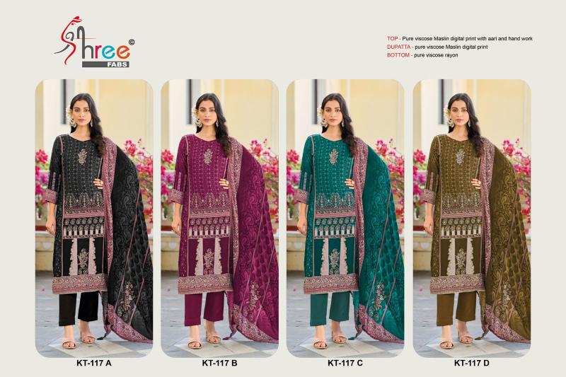 Looking for kt 117 by shree fabs pure muslin unique pakistani print suits Full Catalouge at Best Price? Buy Now kt 117 by shree fabs pure muslin unique pakistani print suits at Wholesale Rate of Rs 5196 with Total 4 Pcs from authroized dealer and supplier of Shree Fabs Brand. Cost of Each piece is just only Rs 1299 which is very low and affordable price to resale the product in your retail store. rrgandhi is Surat based Wholesale Supplier & Dealer of Shree Fabs Brand. Click on Brand name to Know more about Brand's products.