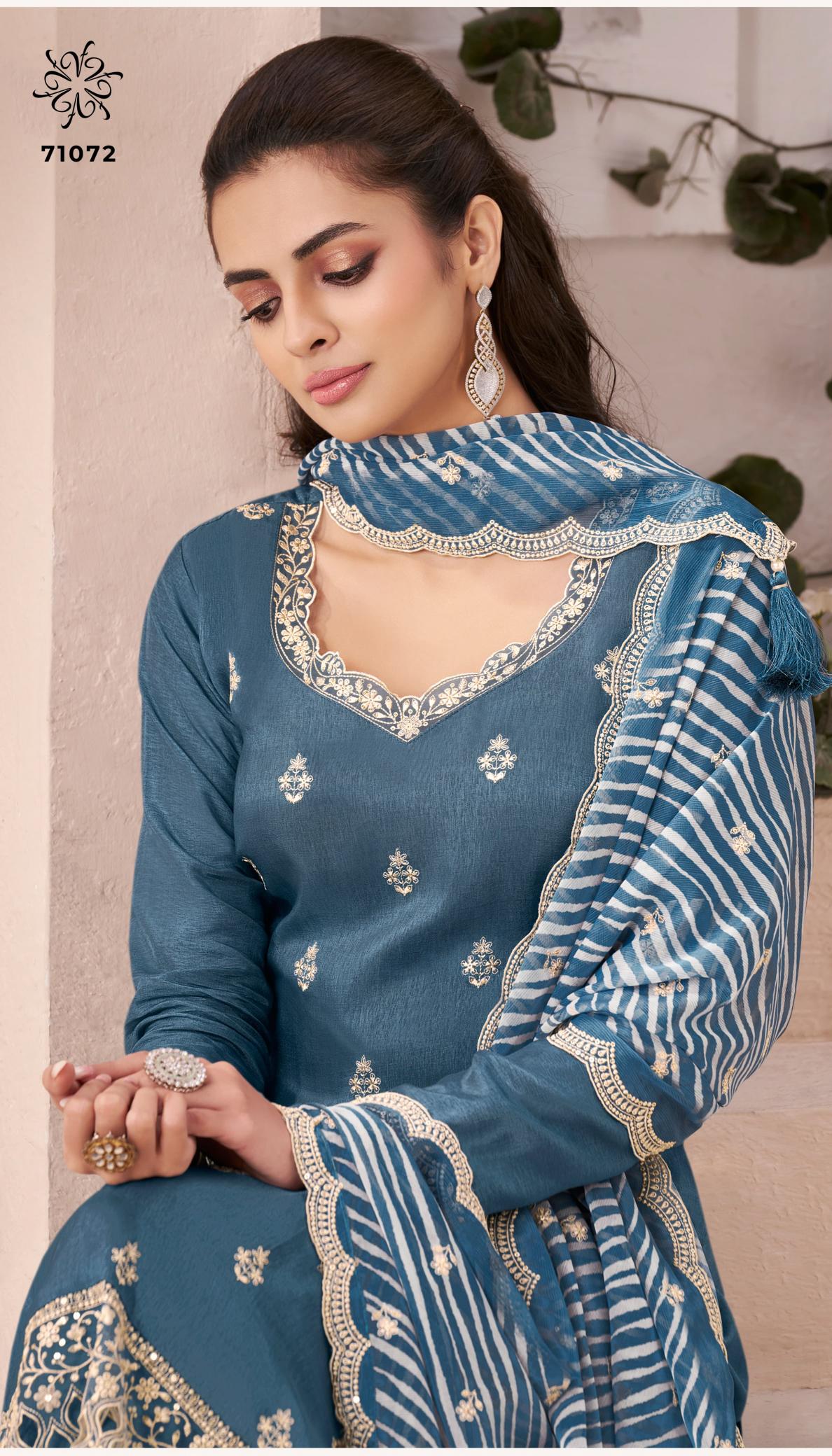 Looking for KULEESH-SOHINI-2 BY VINAY EMBROIDERY MONGA SILK FESTIVE WEAR SALWAR SUIT Full Catalouge at Best Price? Buy Now KULEESH-SOHINI-2 BY VINAY EMBROIDERY MONGA SILK FESTIVE WEAR SALWAR SUIT at Wholesale Rate of Rs 5960 with Total 4 Pcs from authroized dealer and supplier of Vinay Fashion Brand. Cost of Each piece is just only Rs 1490 which is very low and affordable price to resale the product in your retail store. rrgandhi is Surat based Wholesale Supplier & Dealer of Vinay Fashion Brand. Click on Brand name to Know more about Brand's products.
