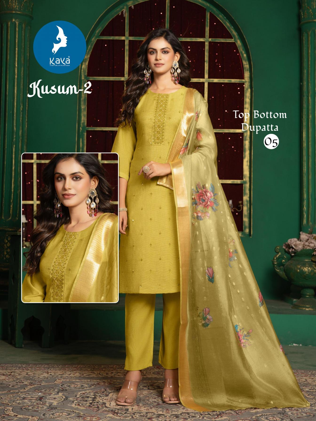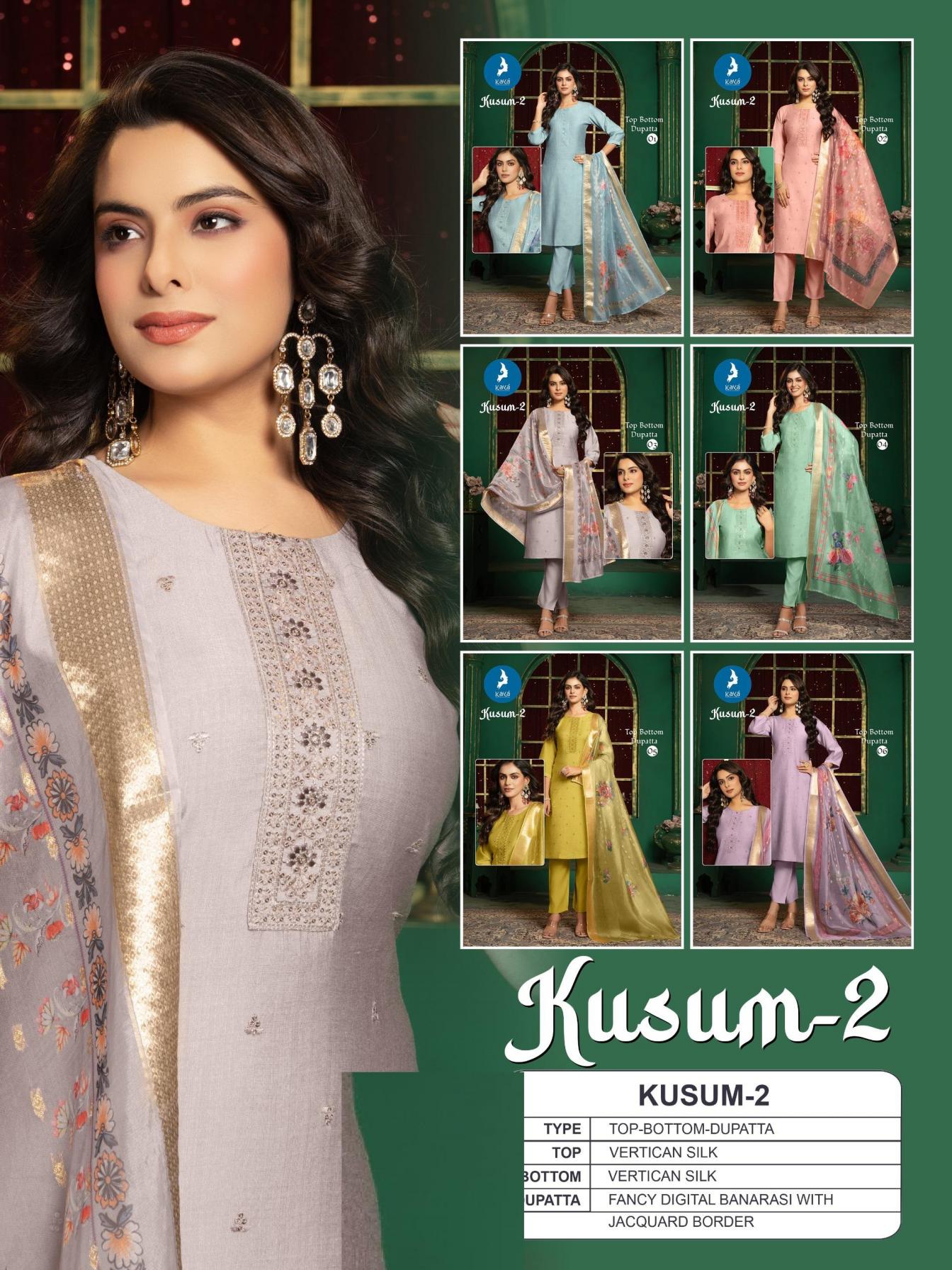 Looking for KUSUM VOL 2 BY KAYA FANCY VERTICAL SILK FULLY STITCH 3PCS DRESS Full Catalouge at Best Price? Buy Now KUSUM VOL 2 BY KAYA FANCY VERTICAL SILK FULLY STITCH 3PCS DRESS at Wholesale Rate of Rs 5040 with Total 6 Pcs from authroized dealer and supplier of Kaya Brand. Cost of Each piece is just only Rs 840 which is very low and affordable price to resale the product in your retail store. rrgandhi is Surat based Wholesale Supplier & Dealer of Kaya Brand. Click on Brand name to Know more about Brand's products.