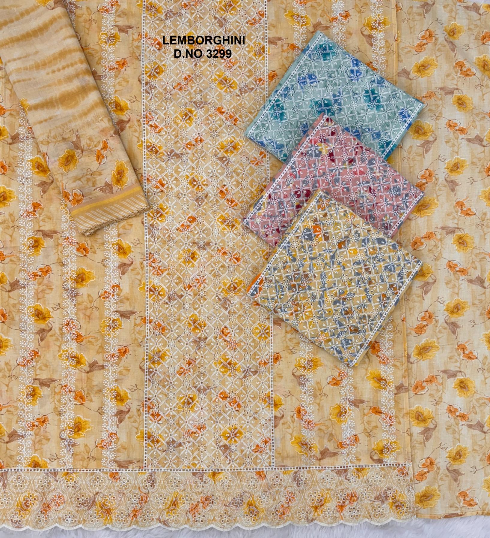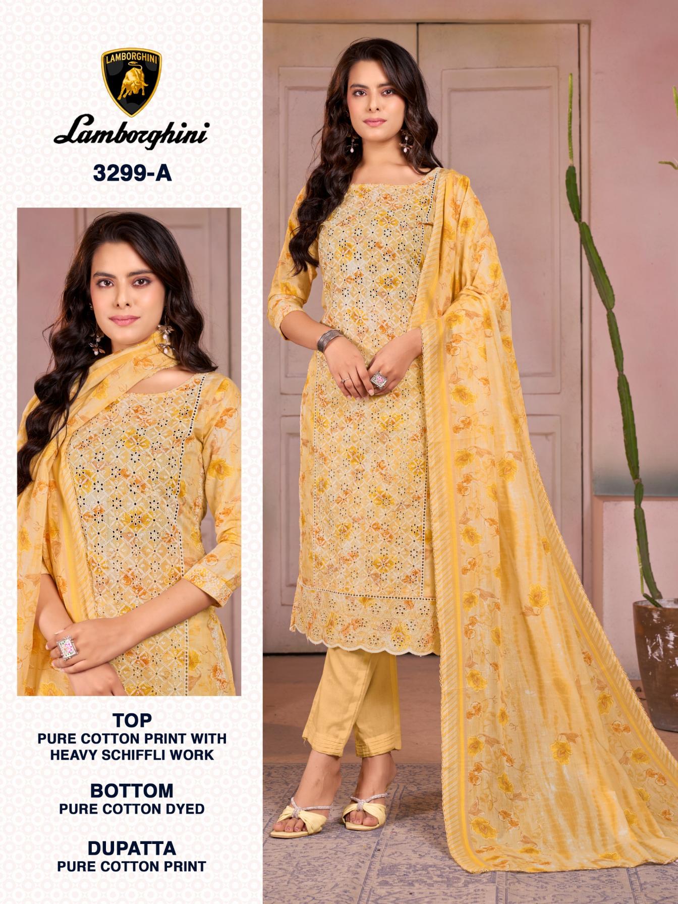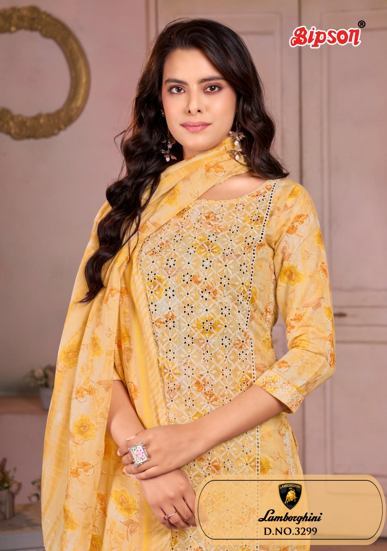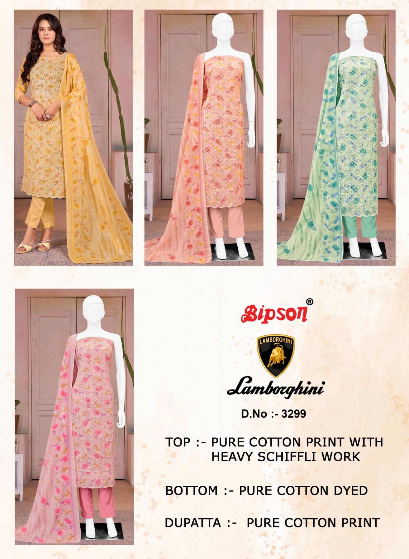 Looking for LAMBORGHINI 3299 BY BIPSON PINTS COTTON SCHIFFLI WORK 3 PIECE SUITS Full Catalouge at Best Price? Buy Now LAMBORGHINI 3299 BY BIPSON PINTS COTTON SCHIFFLI WORK 3 PIECE SUITS at Wholesale Rate of Rs 2444 with Total 4 Pcs from authroized dealer and supplier of Bipson Fashion Brand. Cost of Each piece is just only Rs 611 which is very low and affordable price to resale the product in your retail store. rrgandhi is Surat based Wholesale Supplier & Dealer of Bipson Fashion Brand. Click on Brand name to Know more about Brand's products.